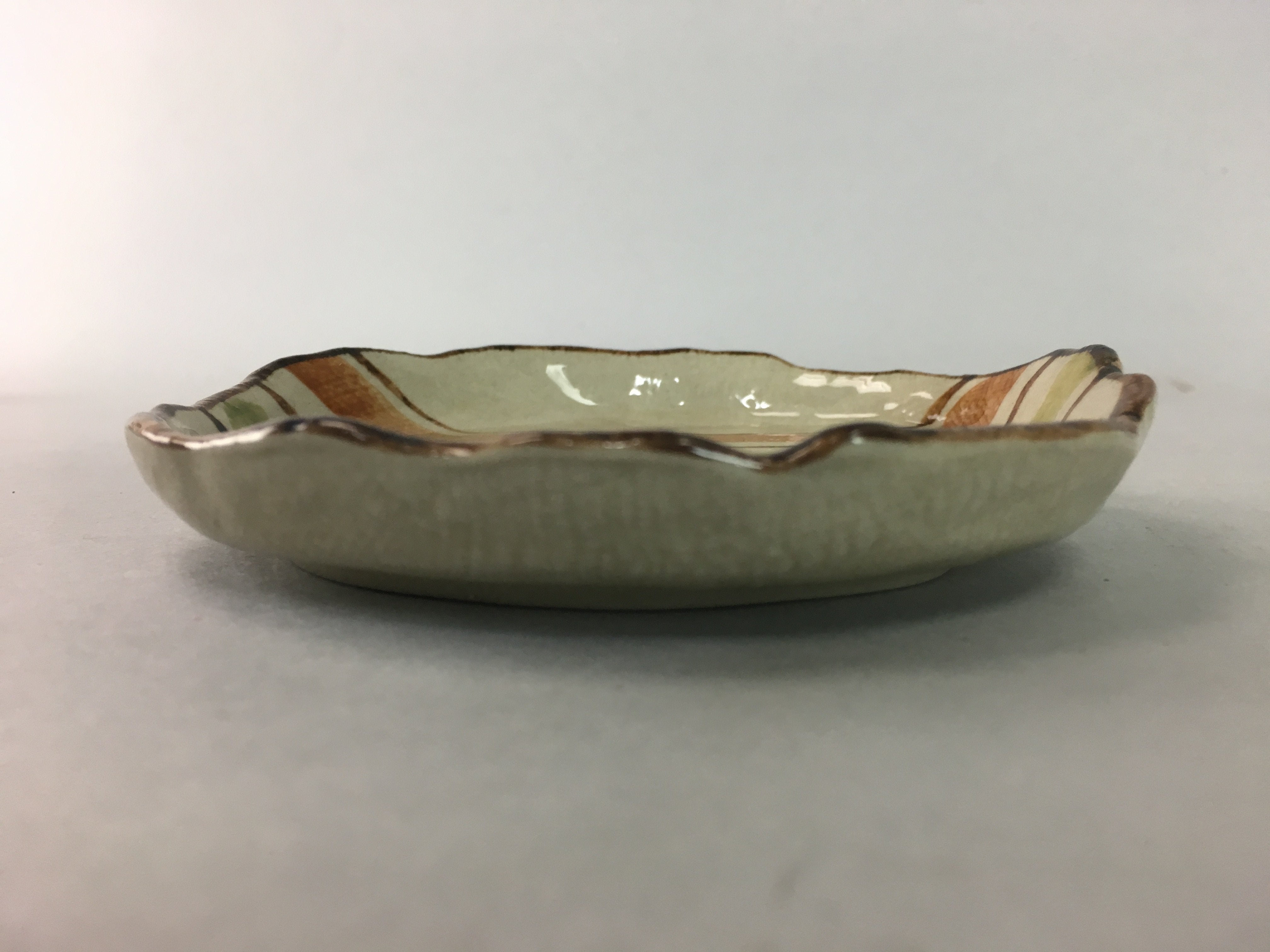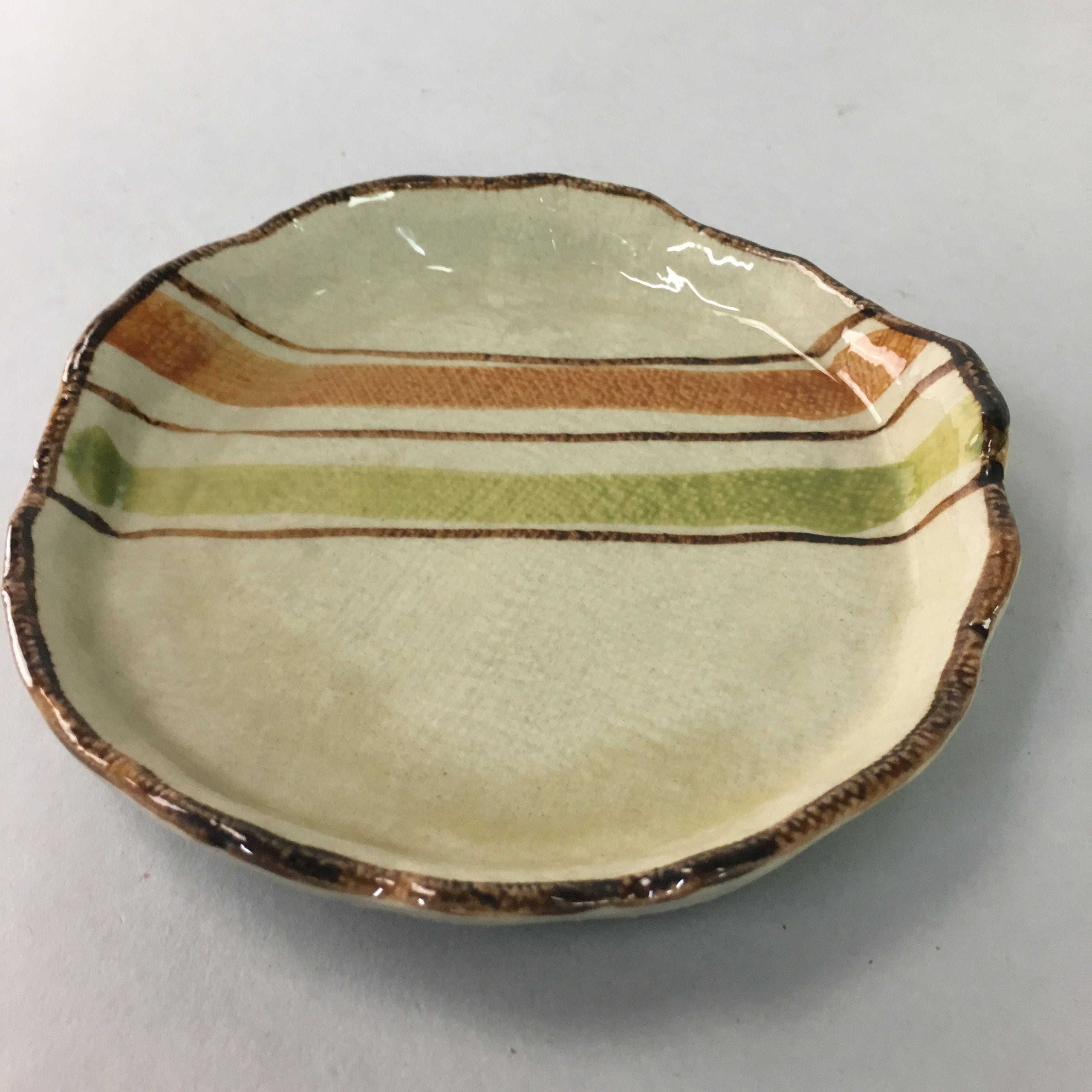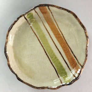 Japanese Ceramic Small Plate Kozara Vtg Round Pottery Orange Green Brown PT876
