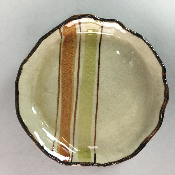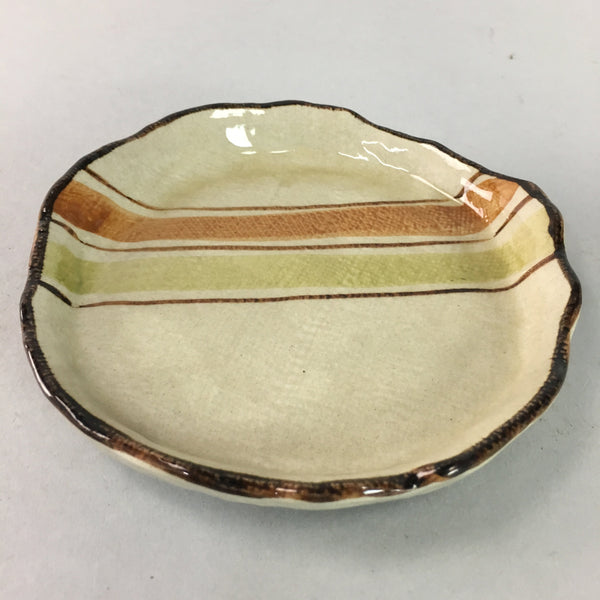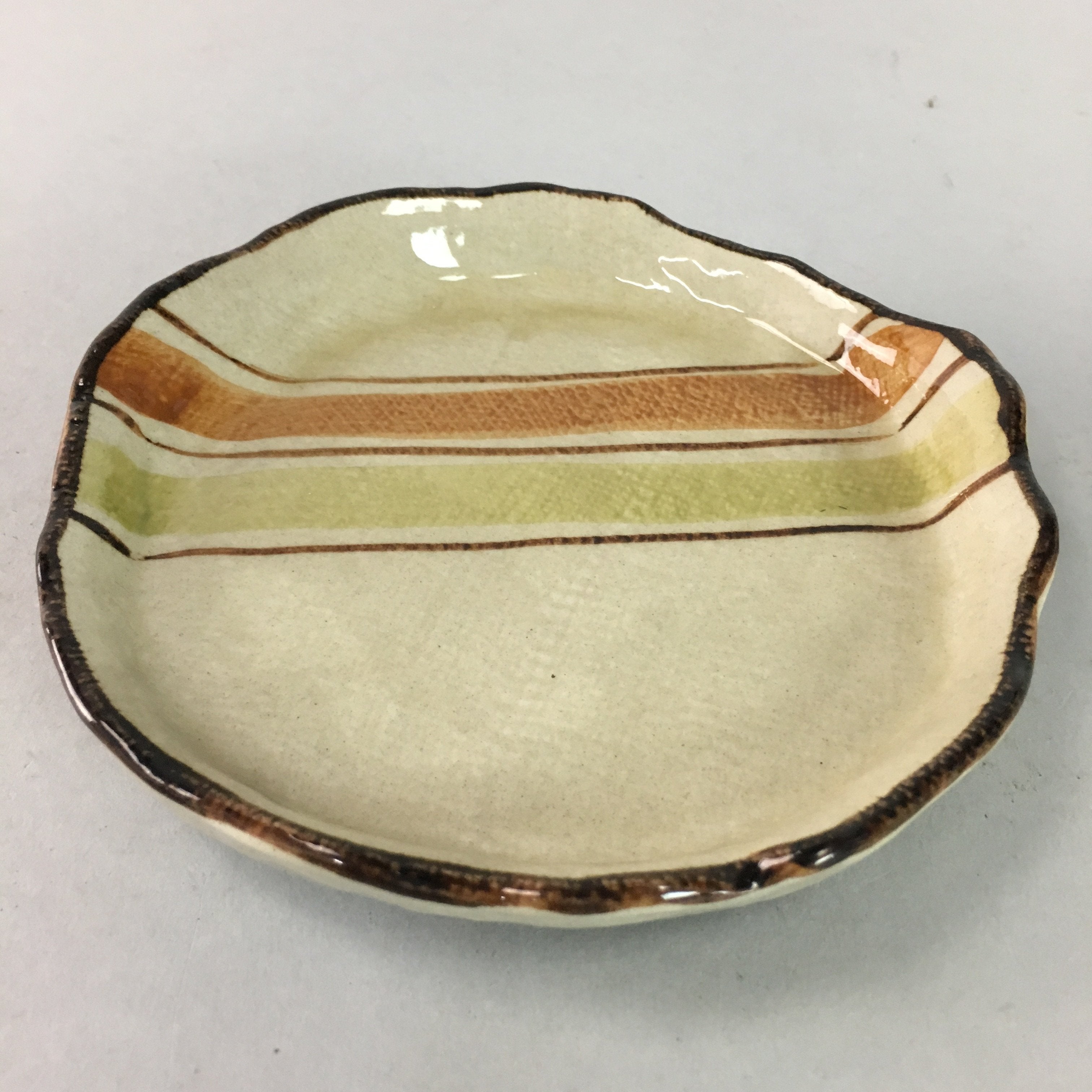 Japanese Ceramic Small Plate Kozara Vtg Round Pottery Orange Green Brown PT878