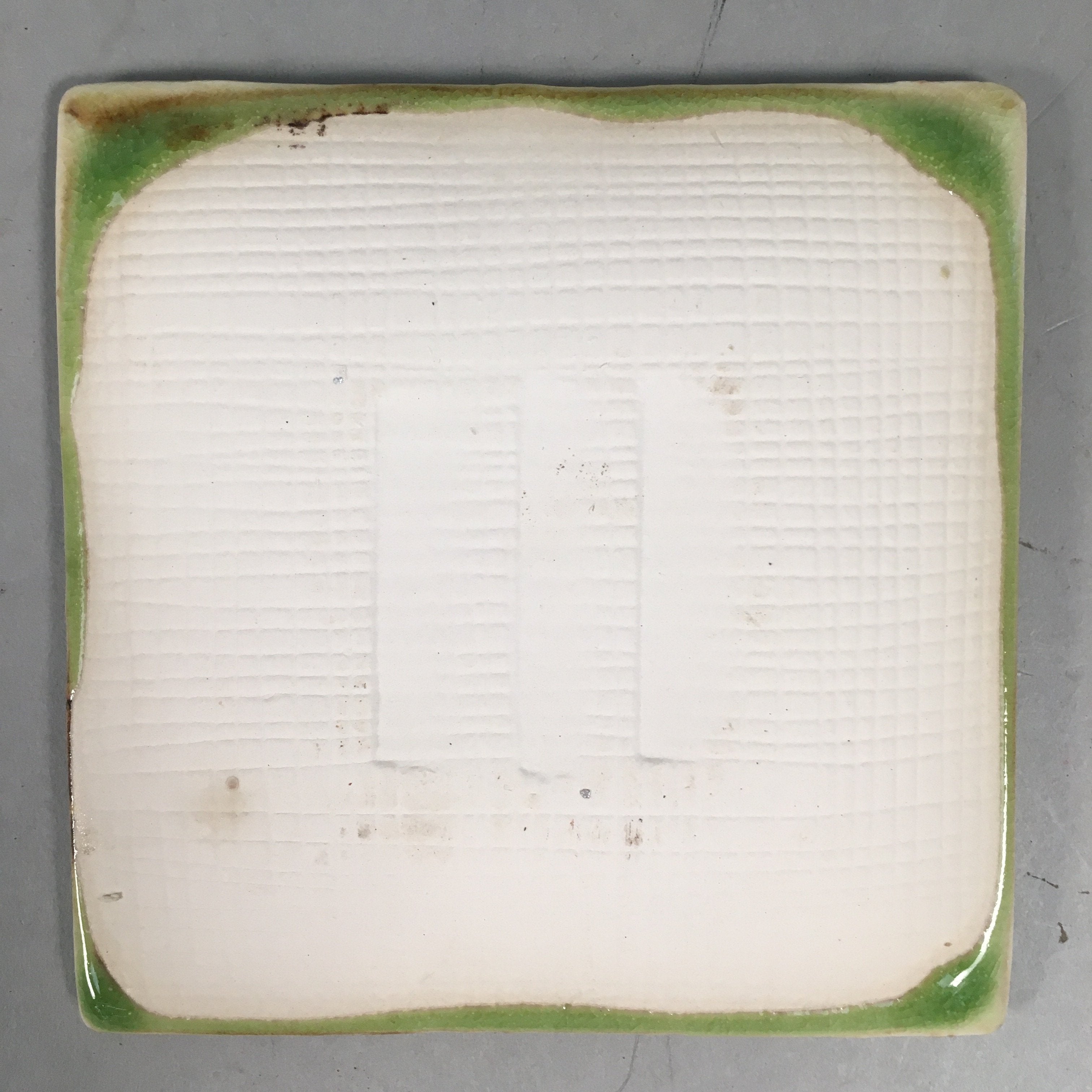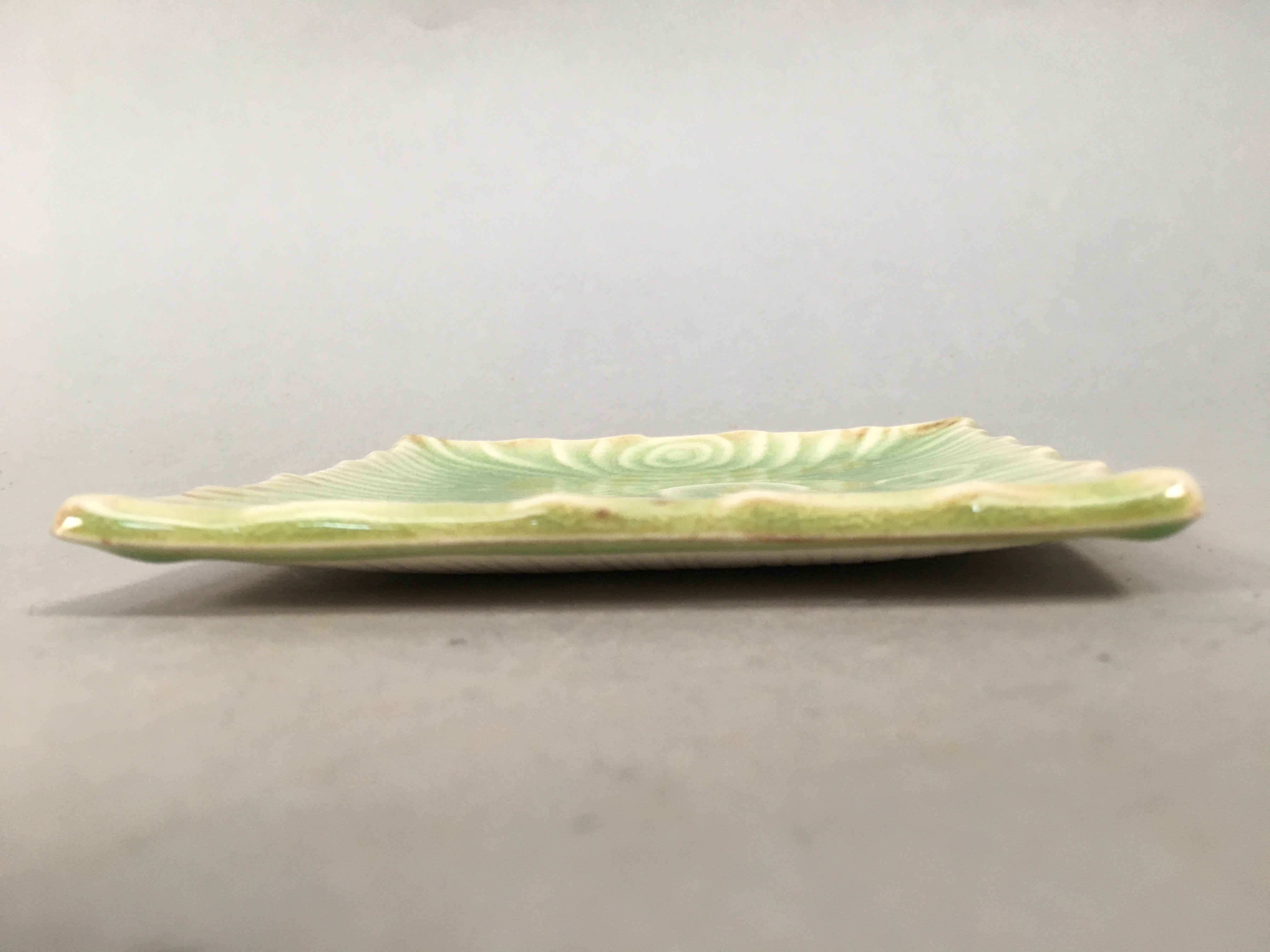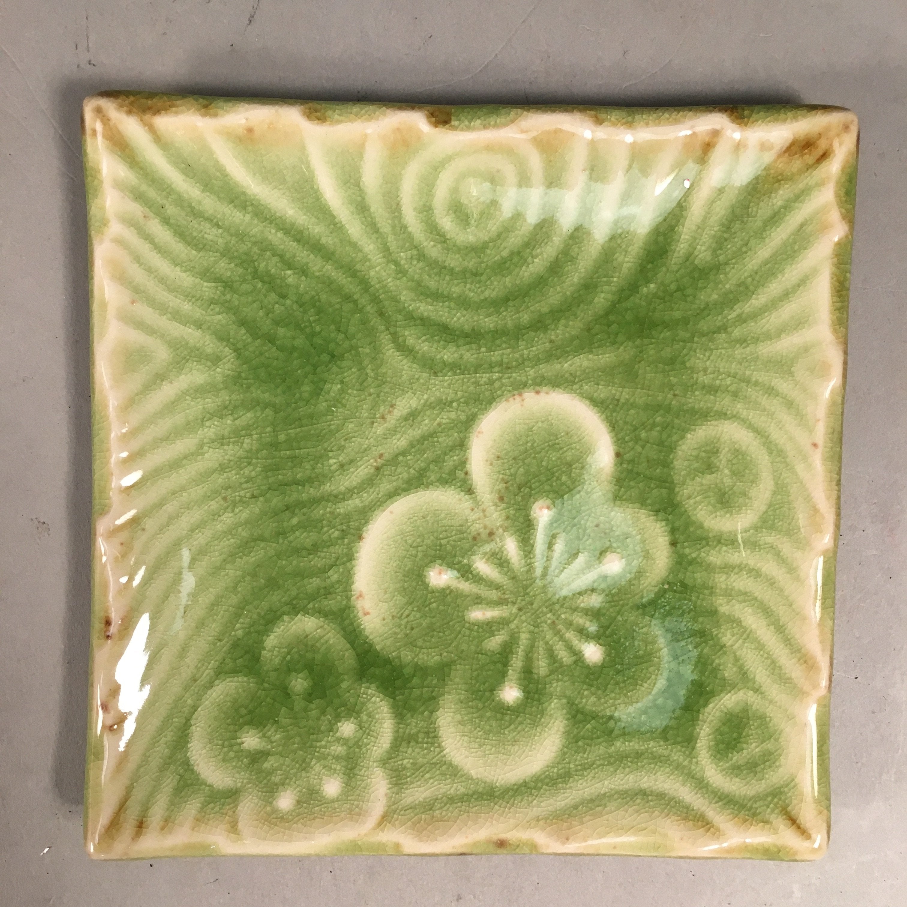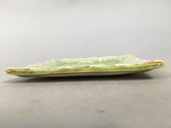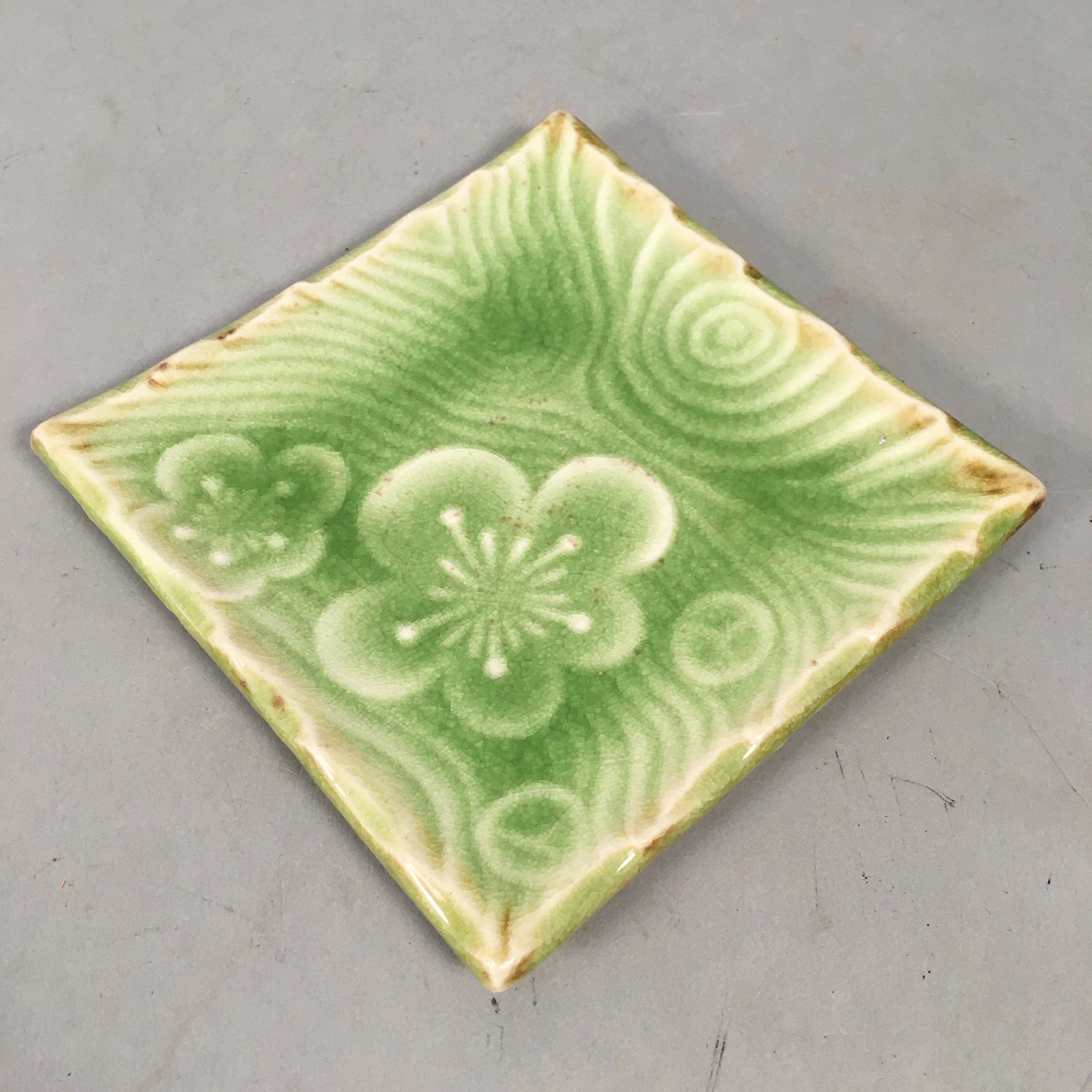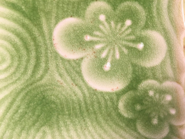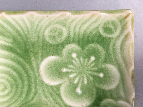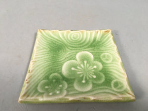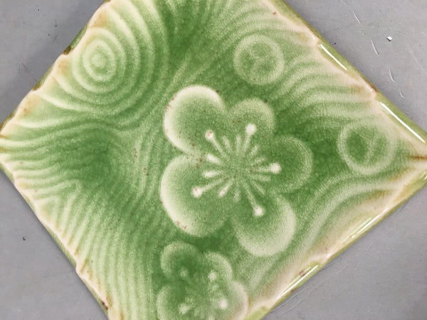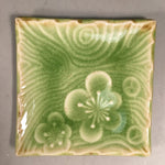Japanese Ceramic Small Plate Kozara Vtg Square Green Plum Blossom Pottery PP442