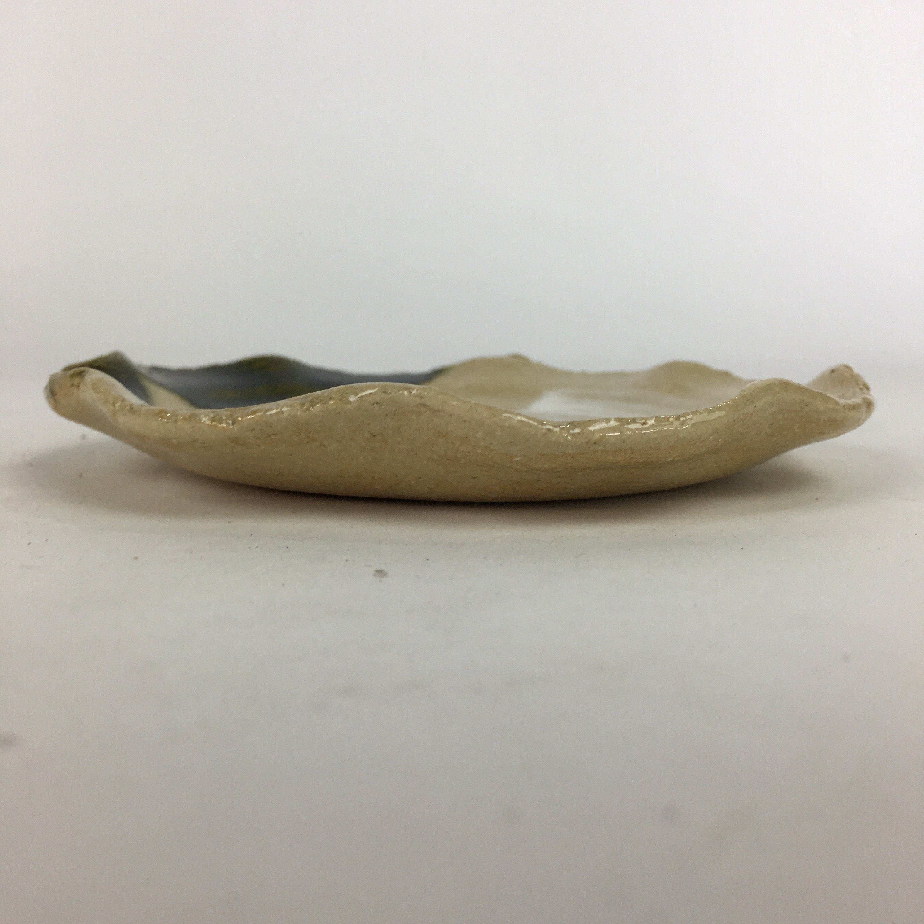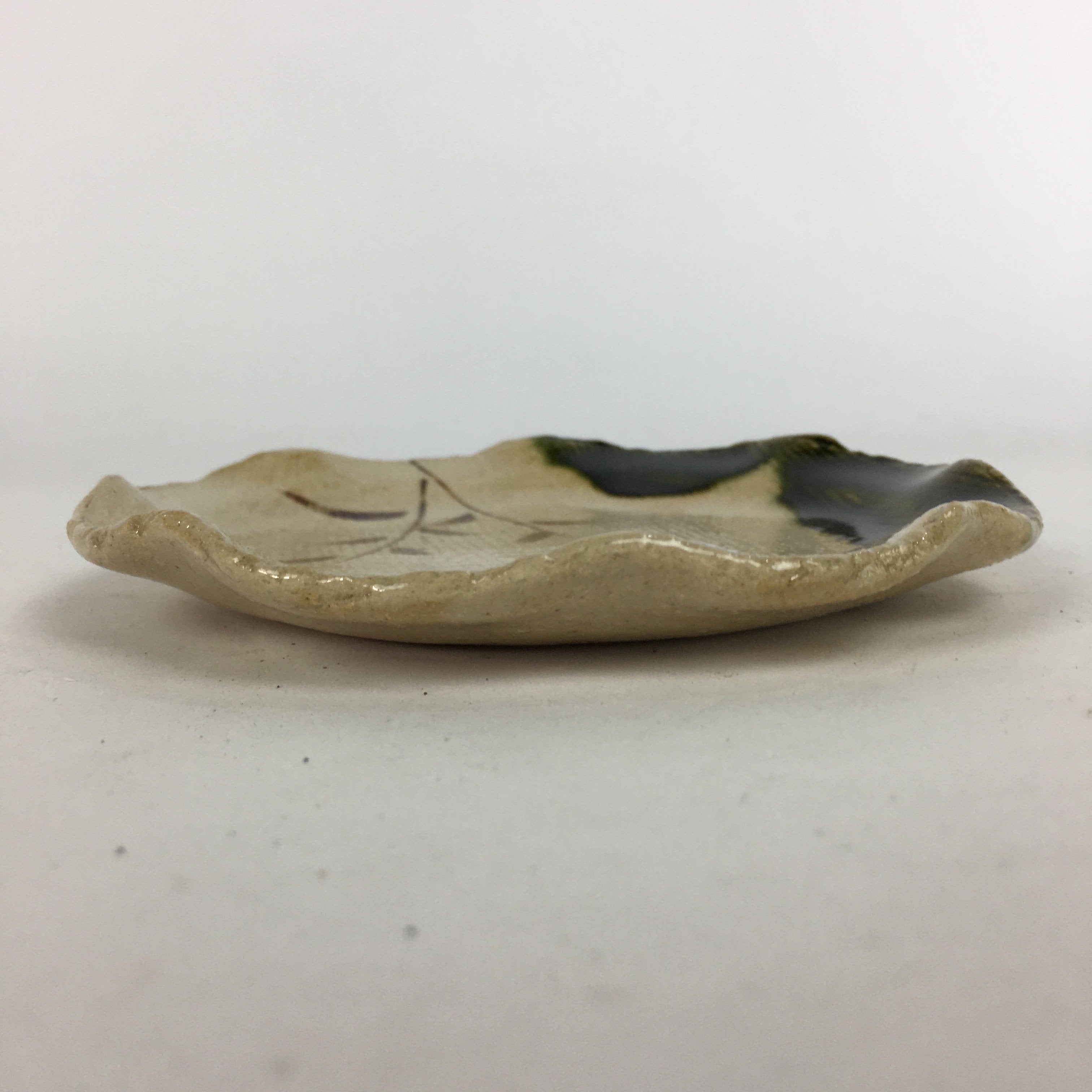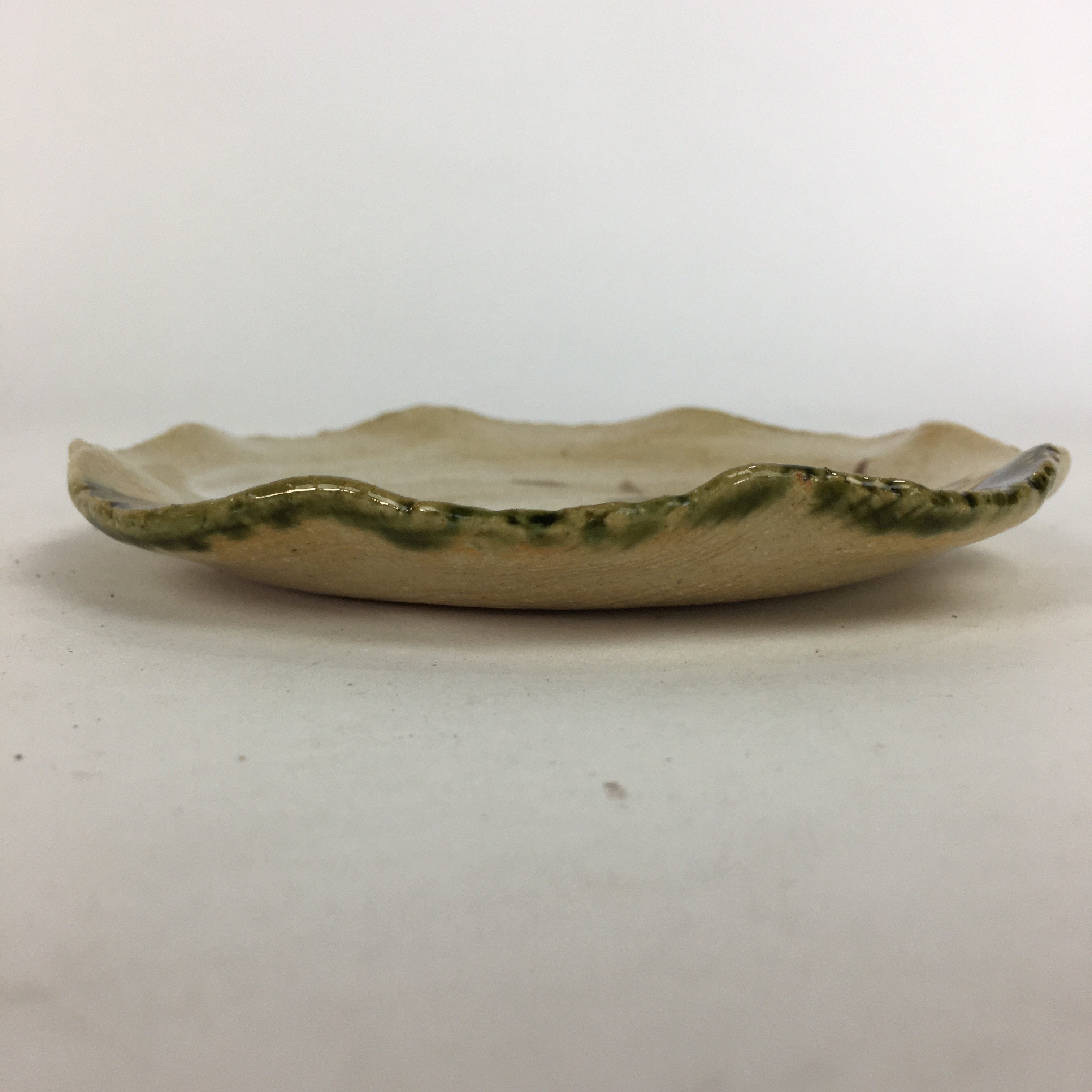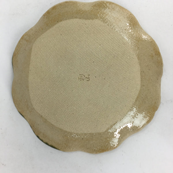 Japanese Ceramic Small Plate Oribe ware Kozara Vtg Round Pottery Bamboo PP625