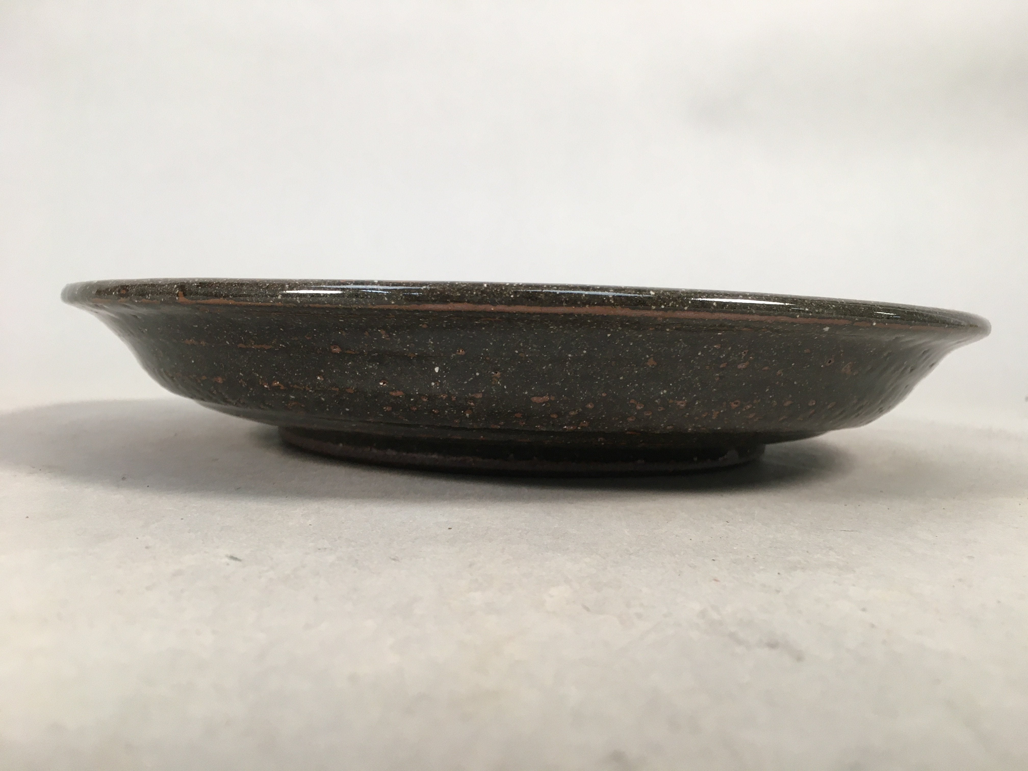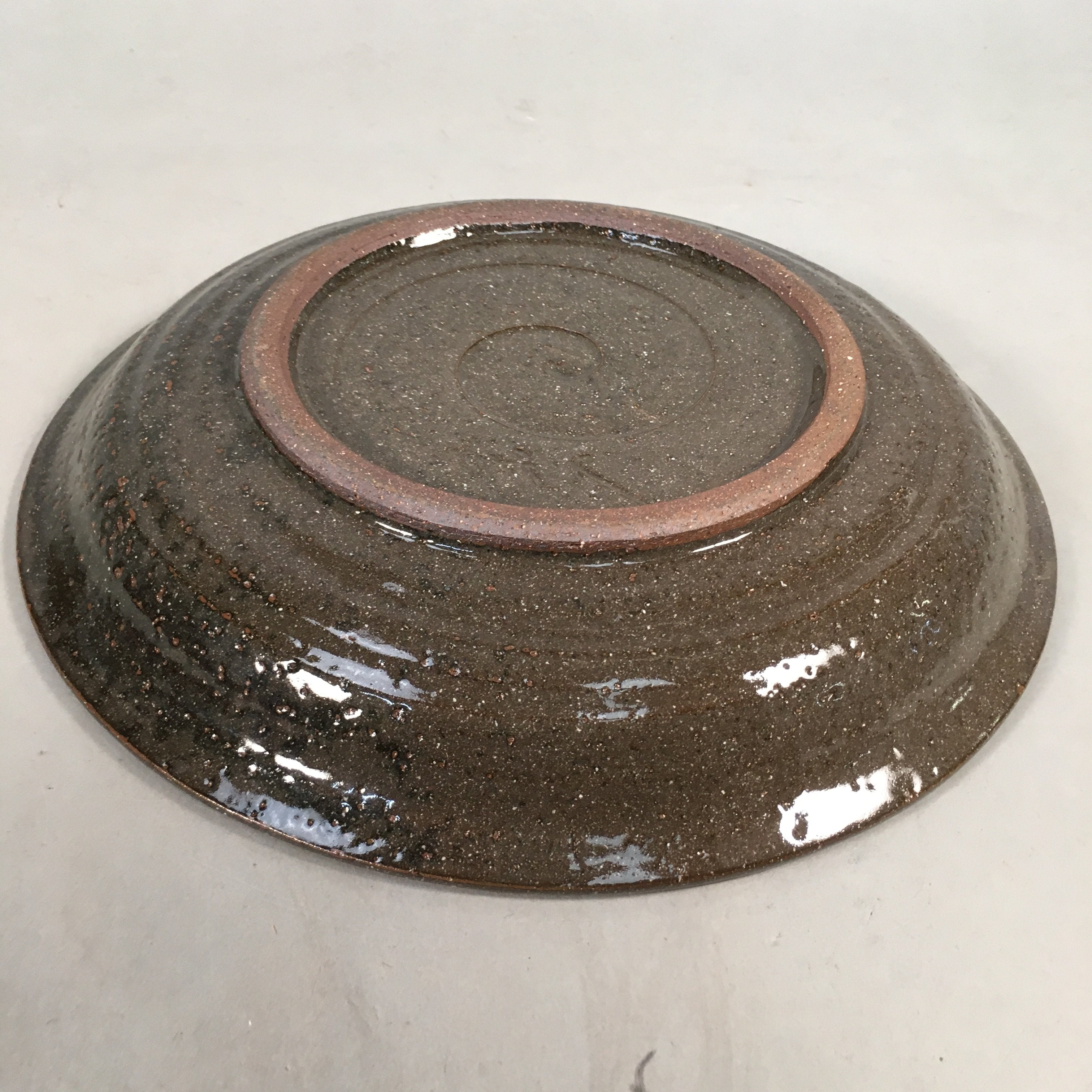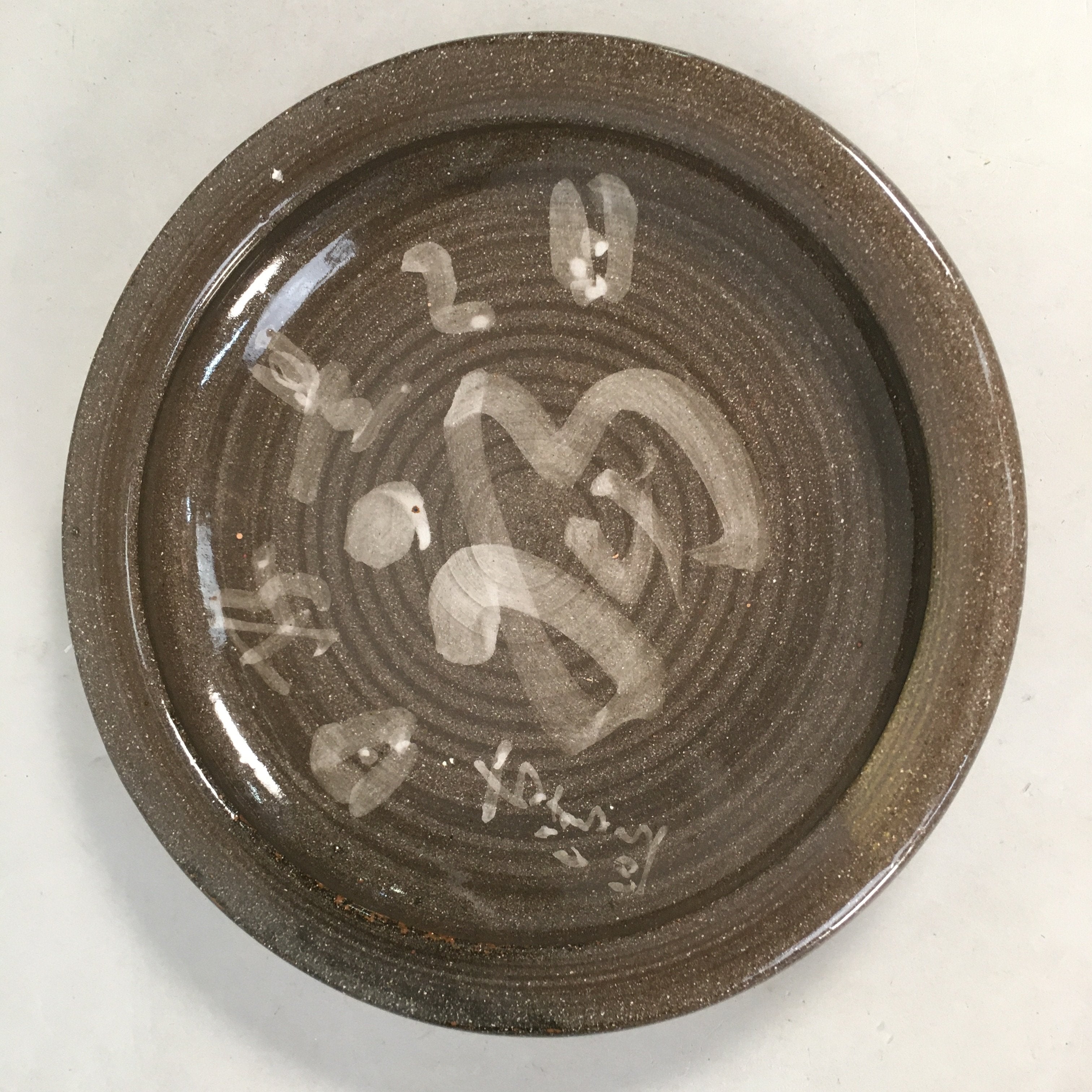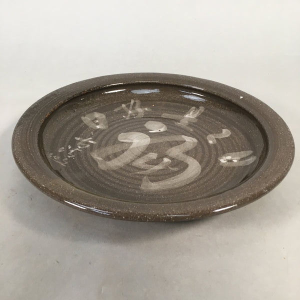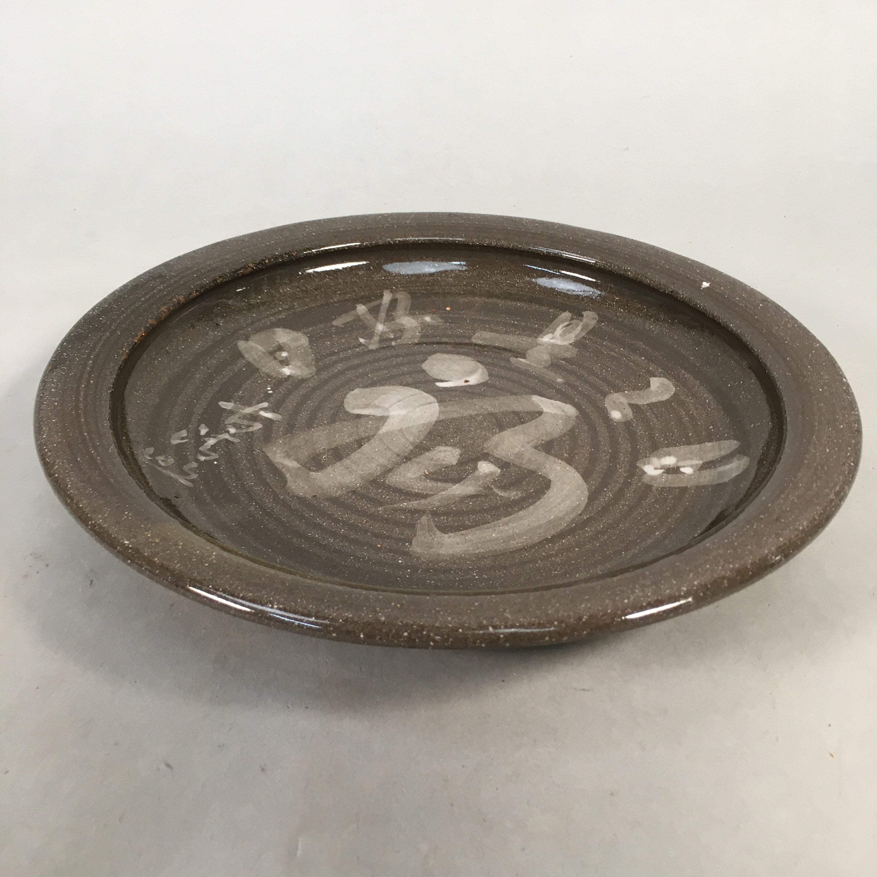 Japanese Ceramic Snack Bowl Kashiki Vtg Pottery Round Gray Kanji Fortune PP386