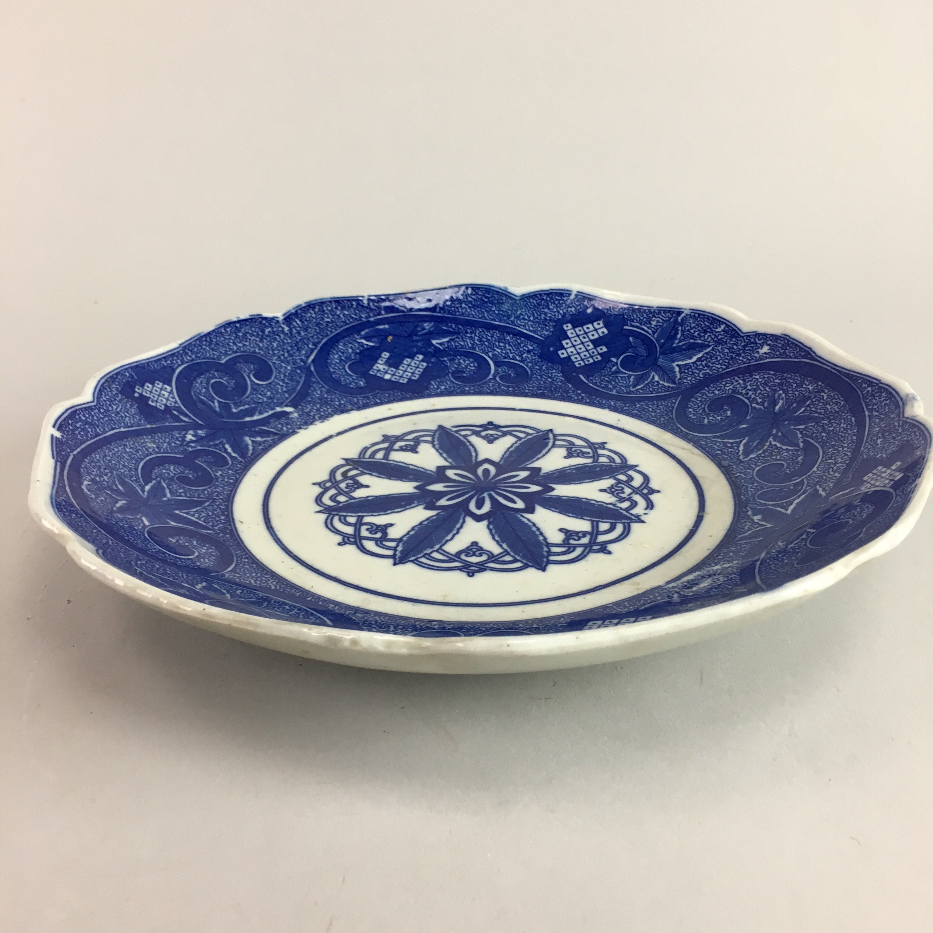 Japanese Sometsuke Porcelain Plate Vtg Floral Flower Vine Leaf Blue White PT488