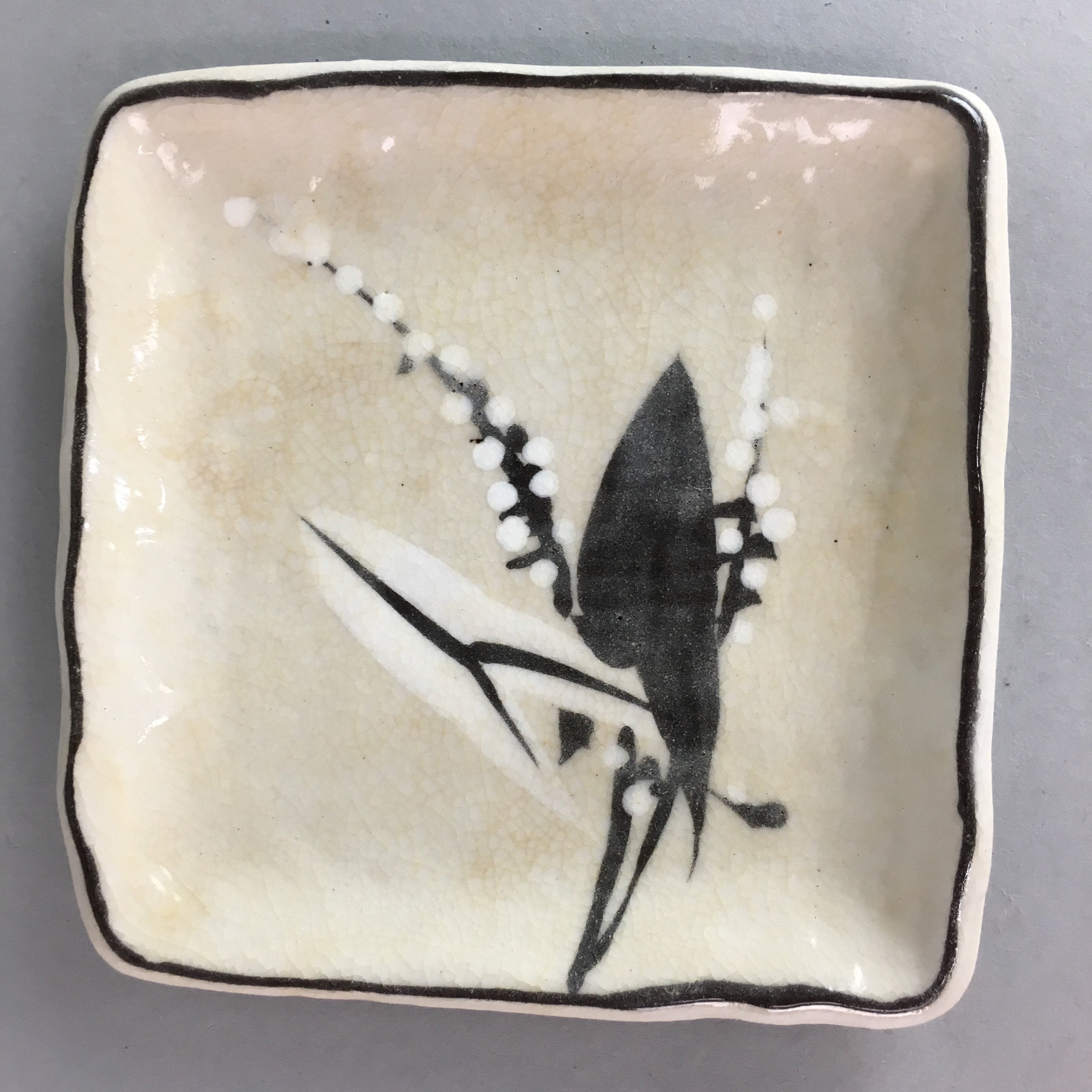 Japanese Ceramic Square Plate Kozara Vtg Pottery Lily of valley Crackle PT638