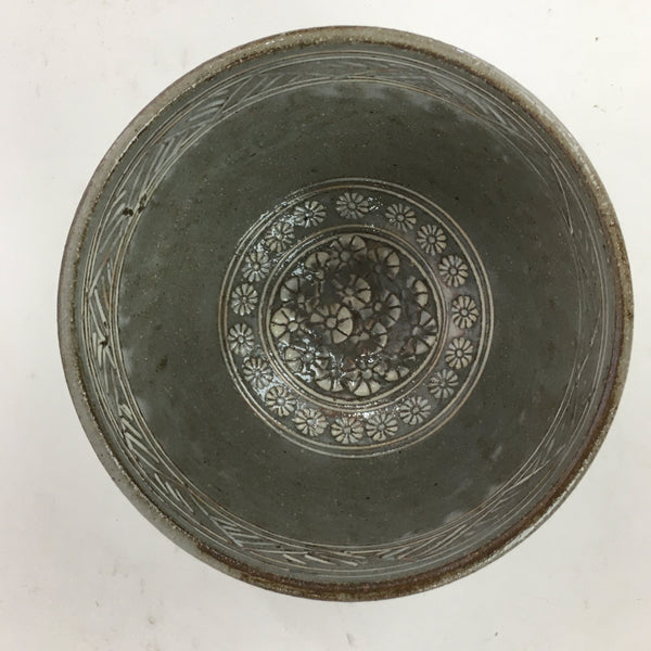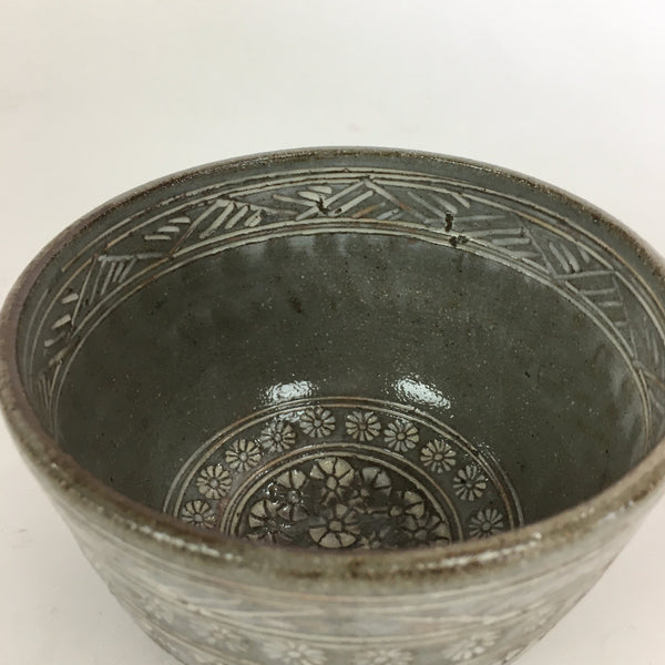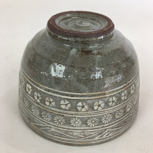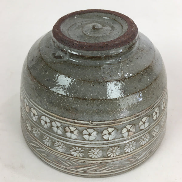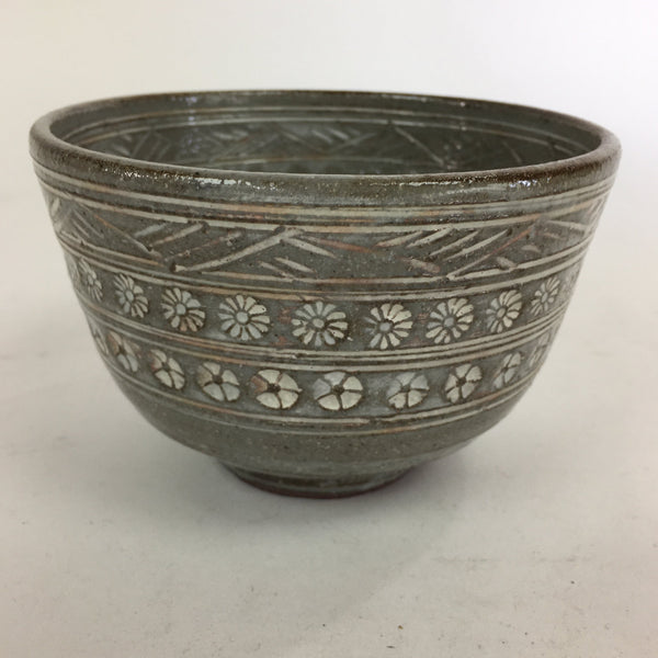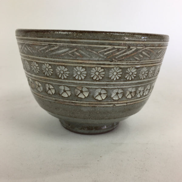 Japanese Ceramic Tea Bowl Vtg Ceremony Chawan Flower Pattern Pottery GTB762