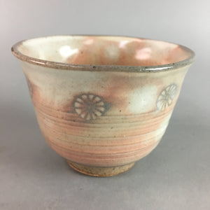 Japanese Ceramic Teacup Vtg Kohiki Pottery White Clay Pink Yunomi Sencha PT614