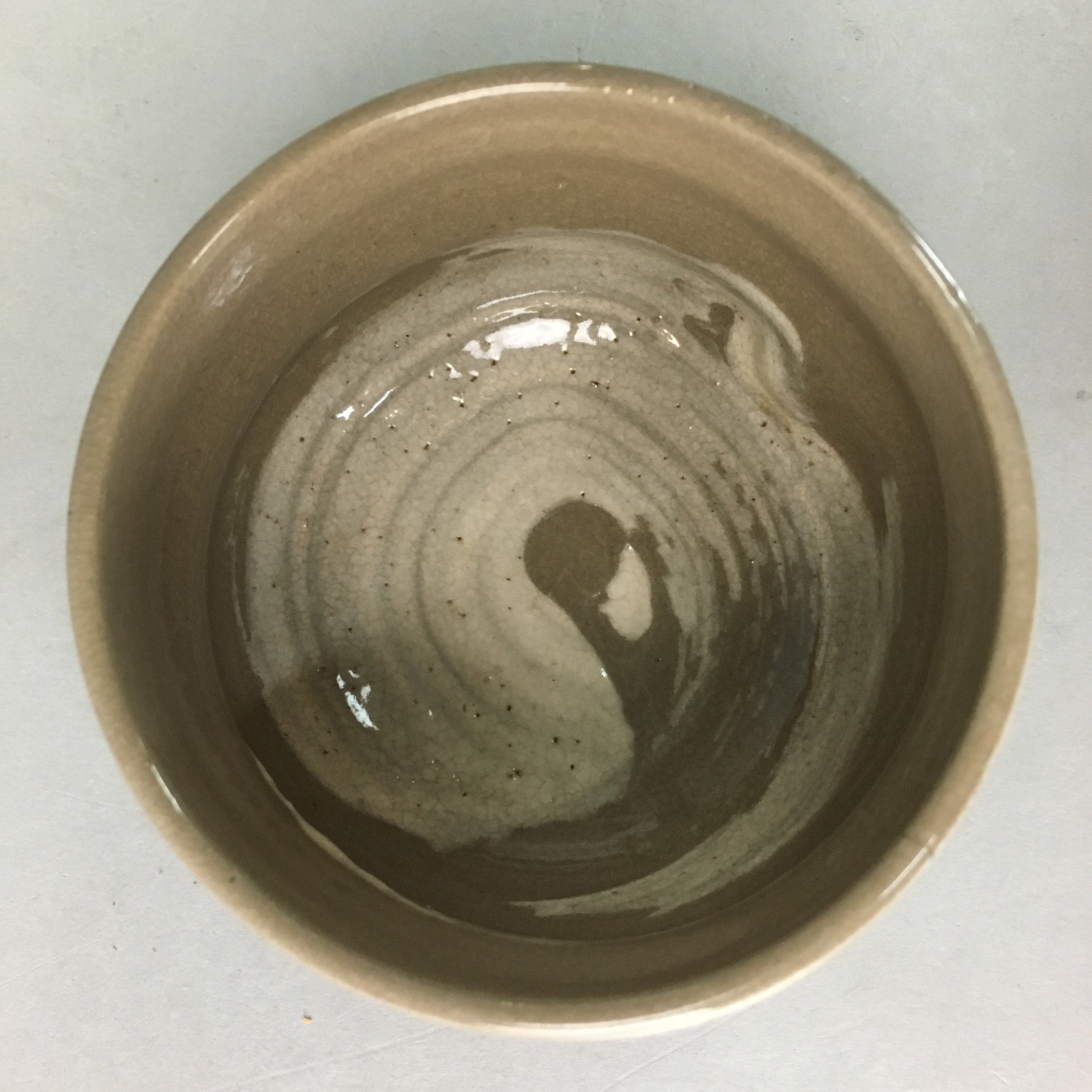 Japanese Ceramic Teacup Vtg Pottery Yunomi Gray White Brush Mark Sencha TC58