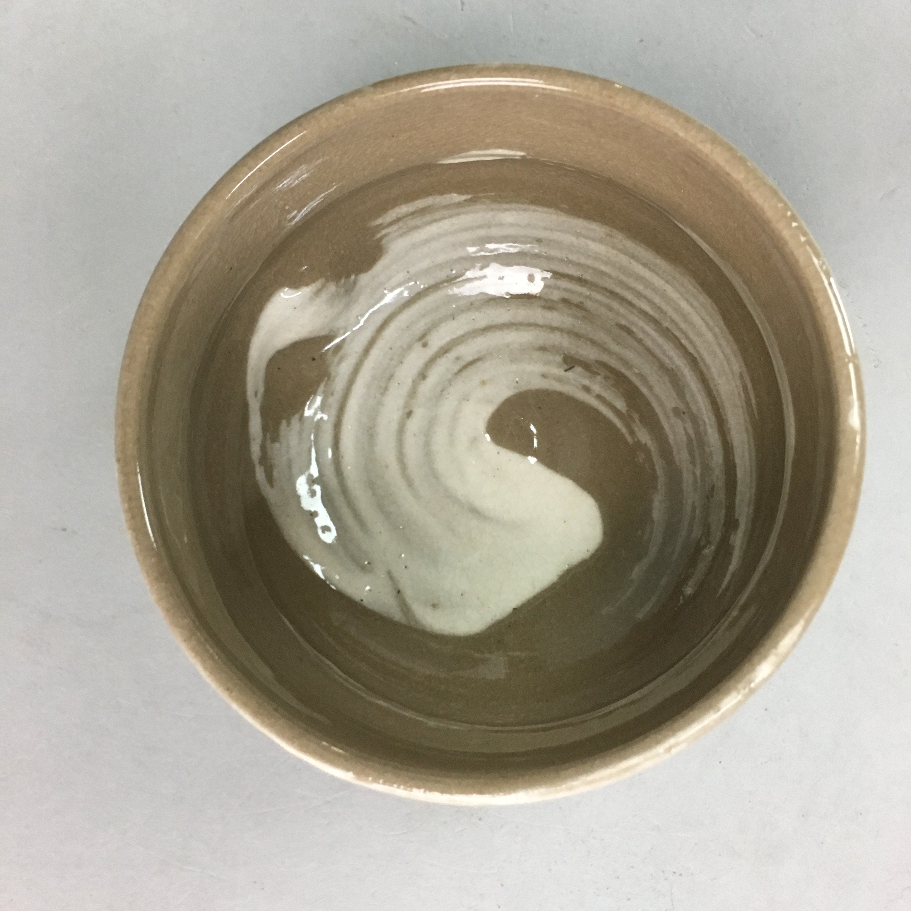 Japanese Ceramic Teacup Vtg Pottery Yunomi Gray White Brush Mark Sencha TC63