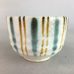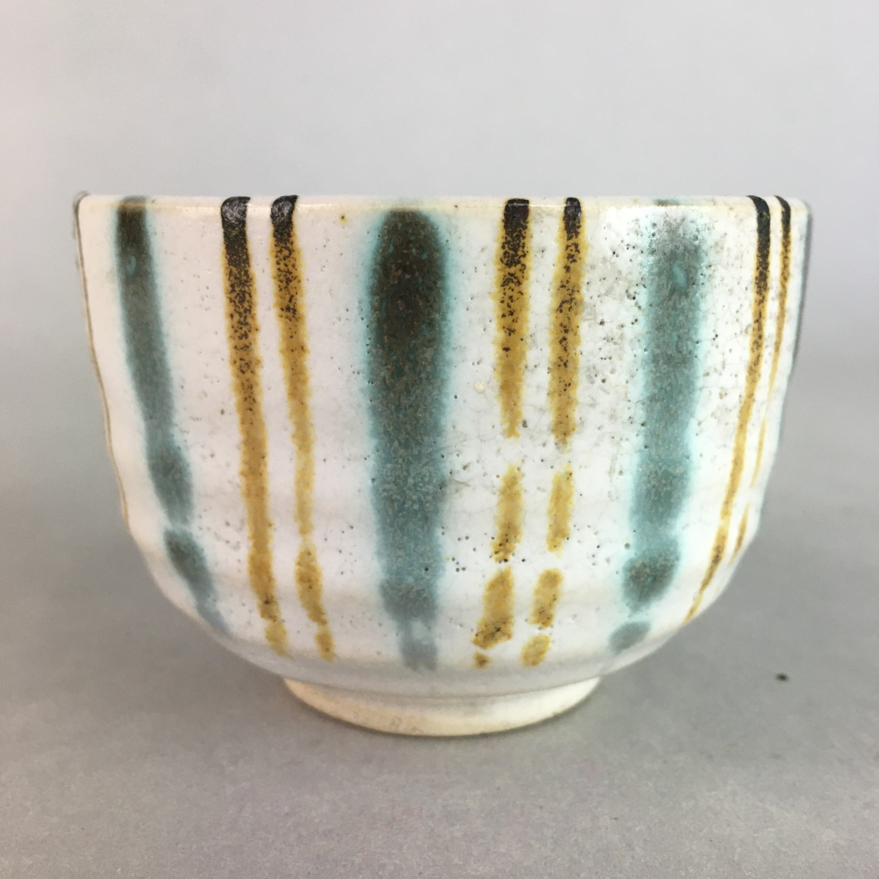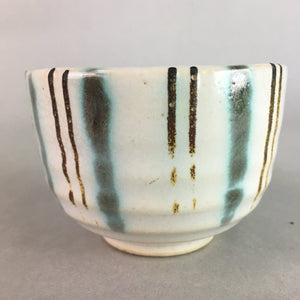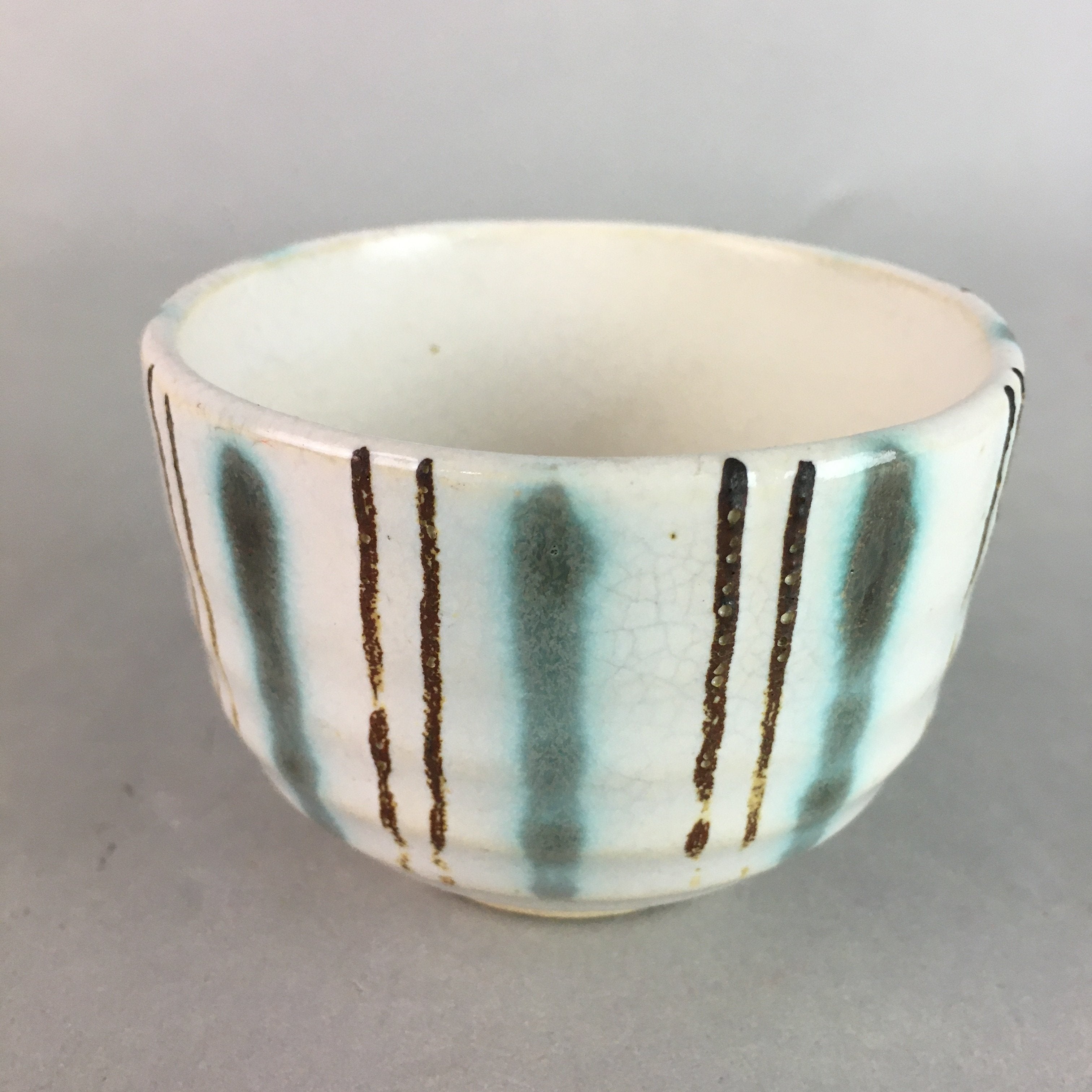 Japanese Ceramic Teacup Yunomi Vtg Pottery Green Brown White Sencha TC114