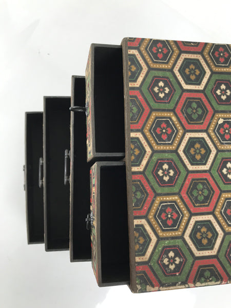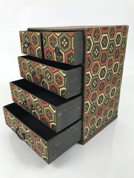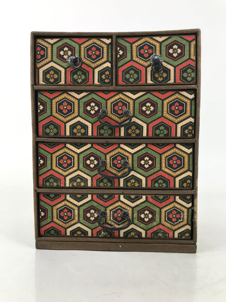 Japanese Chiyogami Paper Tansu Chest Vtg Haribako 5 Drawer Kikkou Hanabishi T403