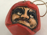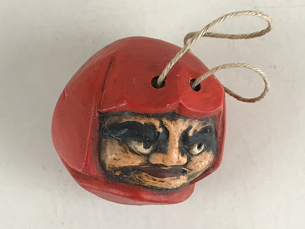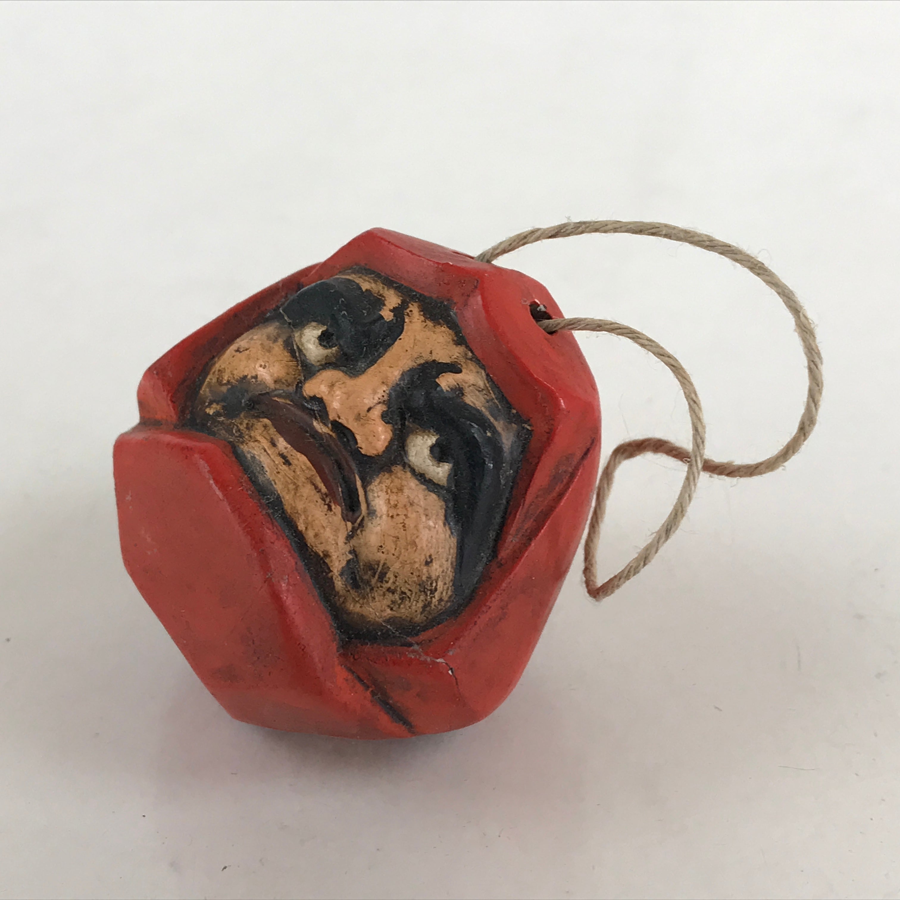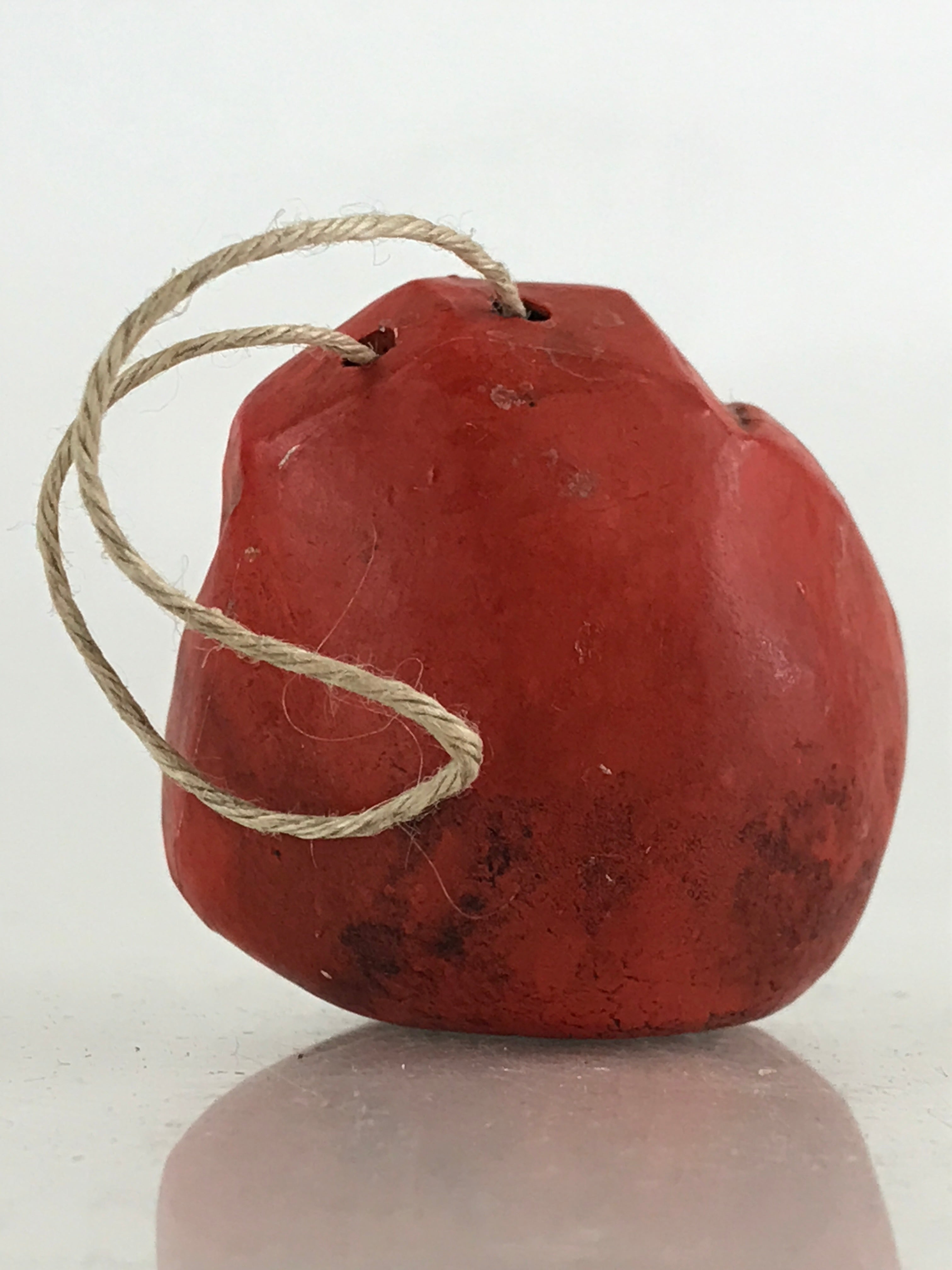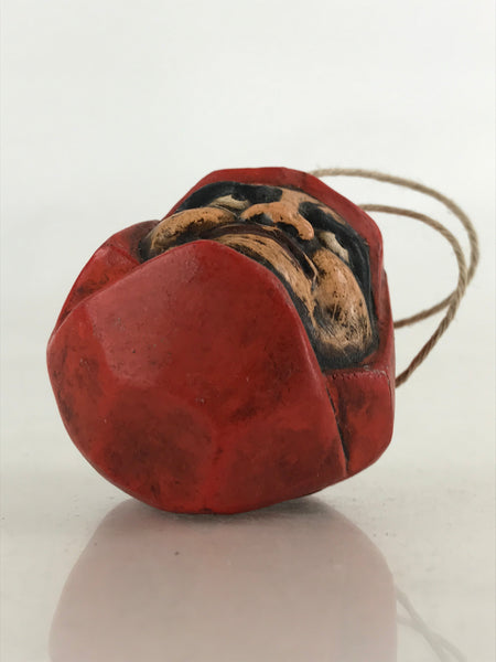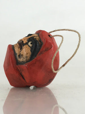 This is a vintage Japanese clay bell, Dorei or Tsuchi-Suzu. This bell is a shaped Daruma (Bodhidharma). Dorei bells have a long history and have been used in festivals and ceremonies since the Jomon period (about 13000 to 2300 years ago) when they were said to have the power to ward off evil spirits.