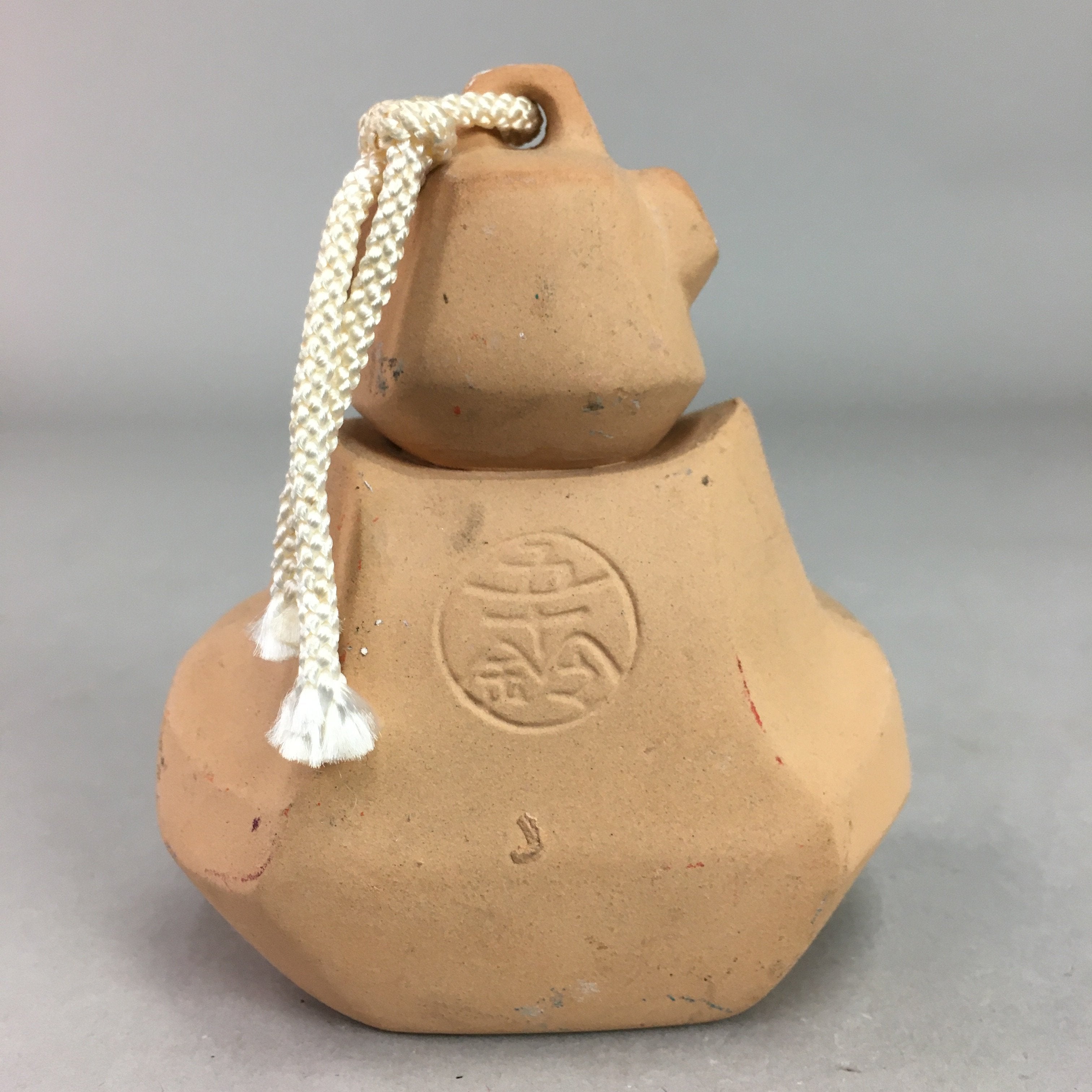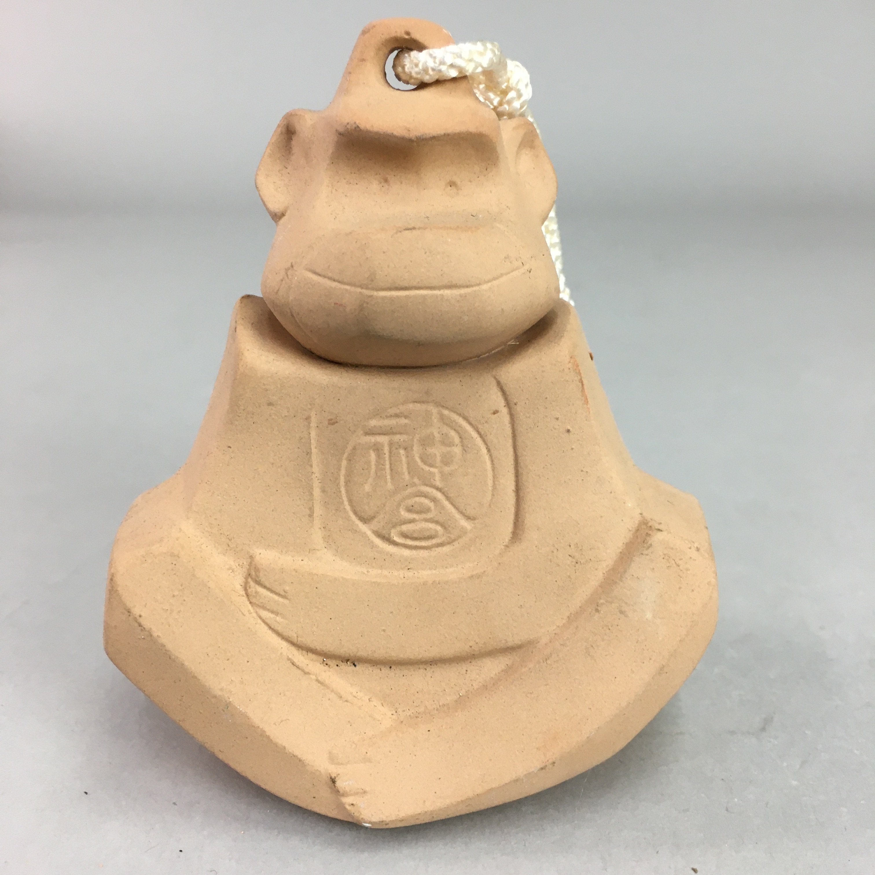 Japanese Clay Bell Vtg Dorei Ceramic Doll Brown Zodiac Monkey Shinto DR272