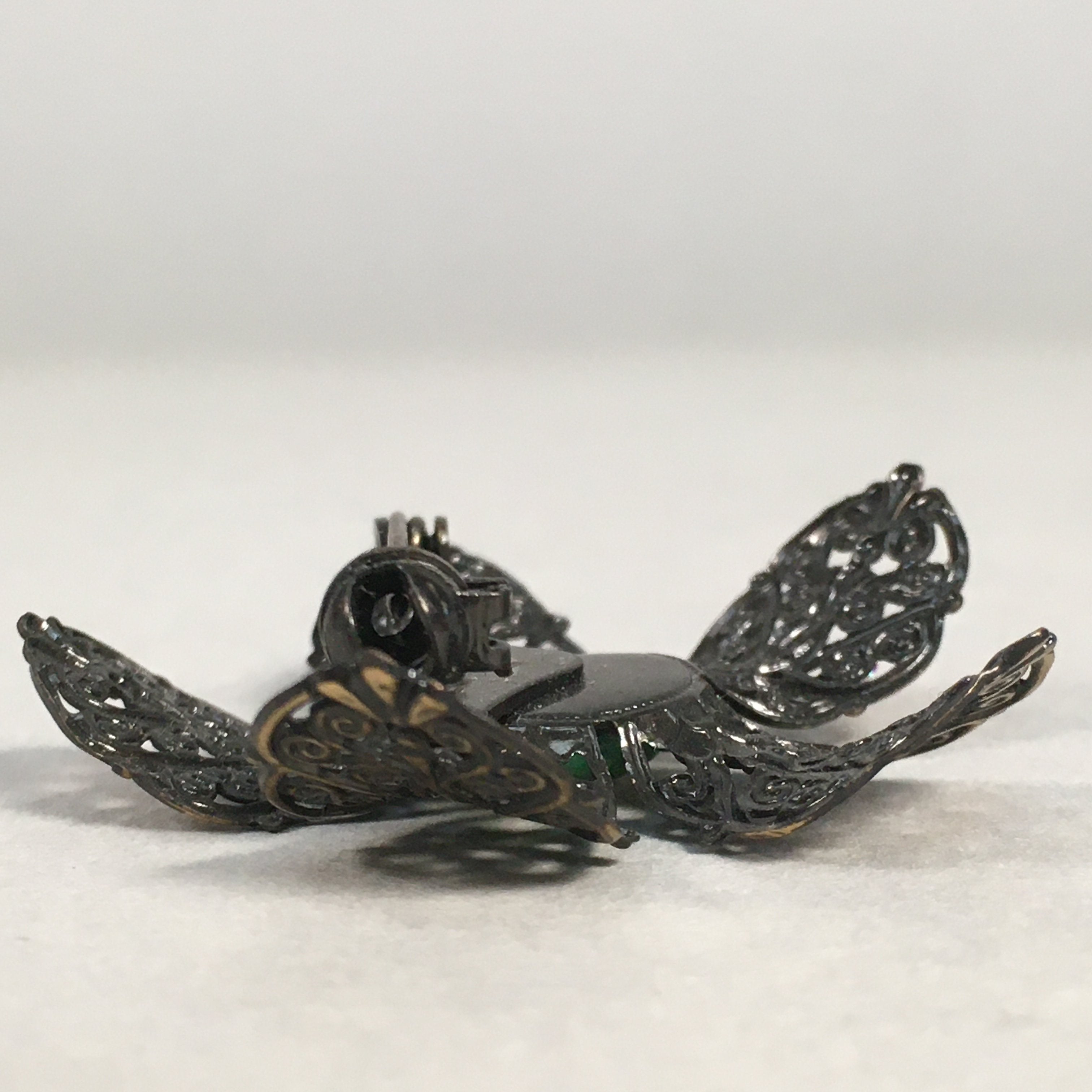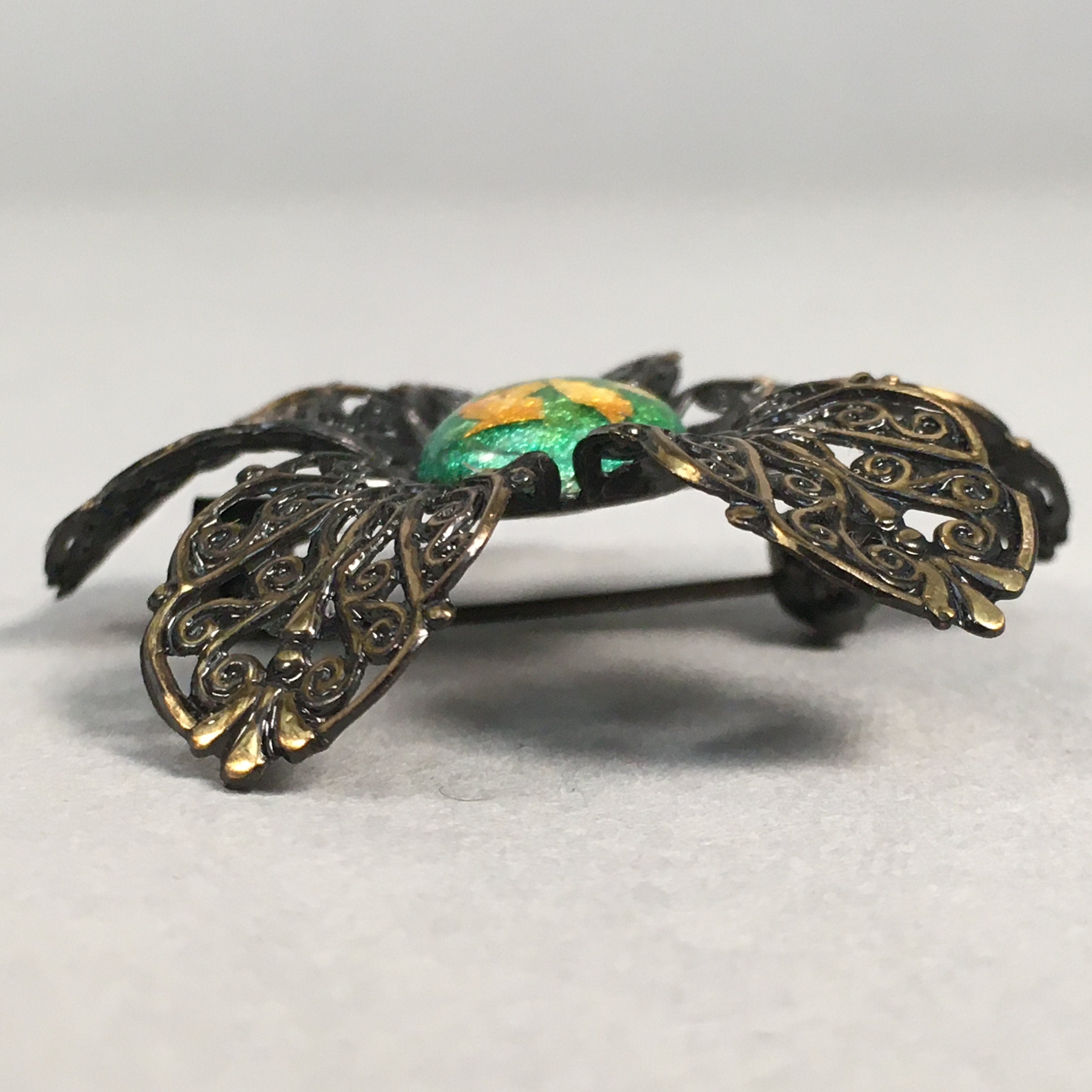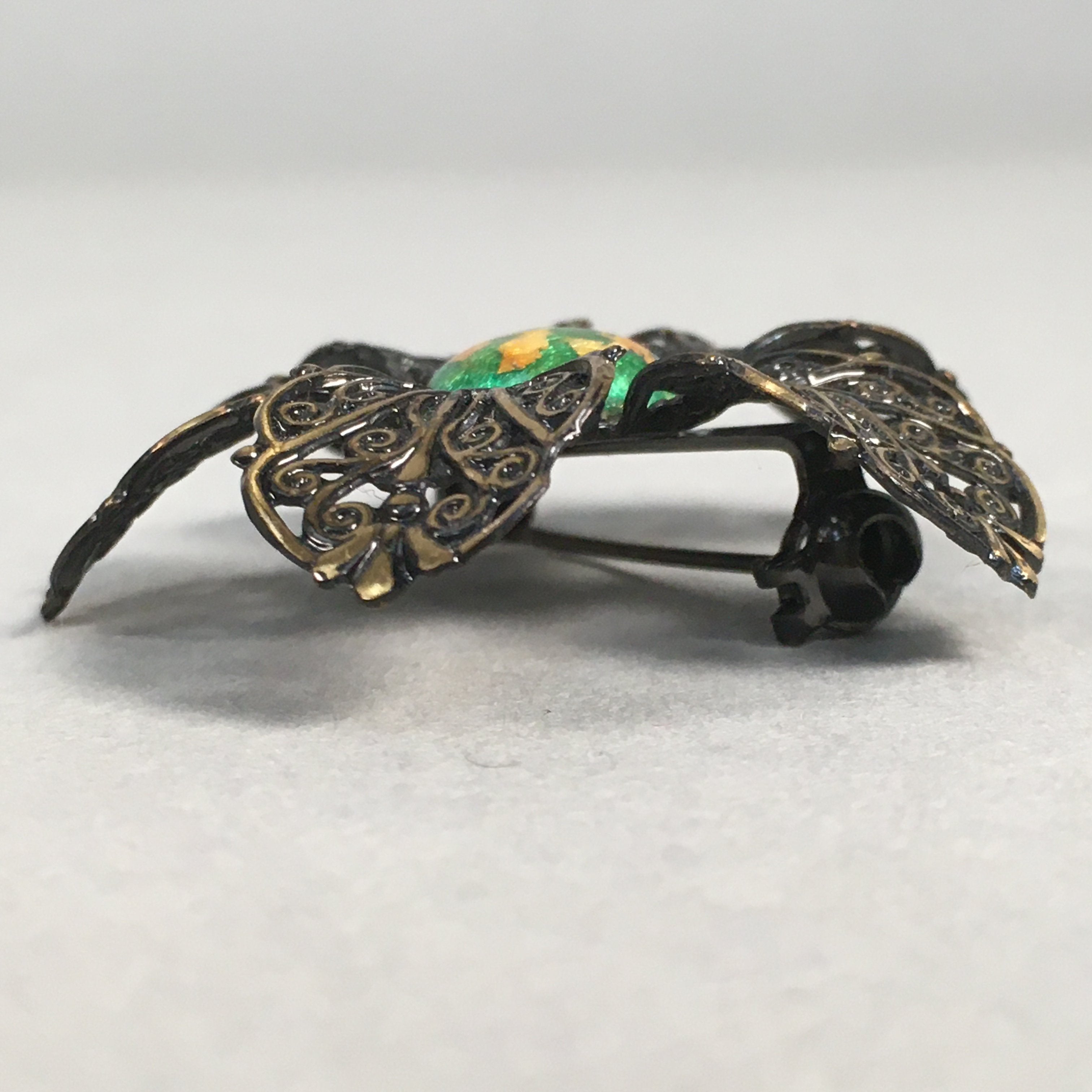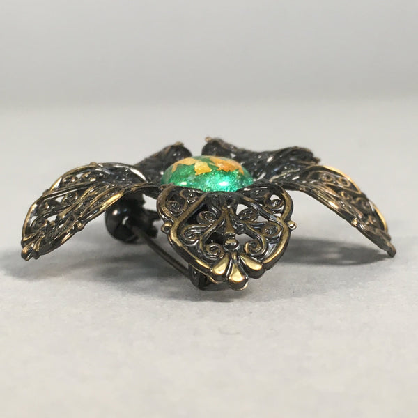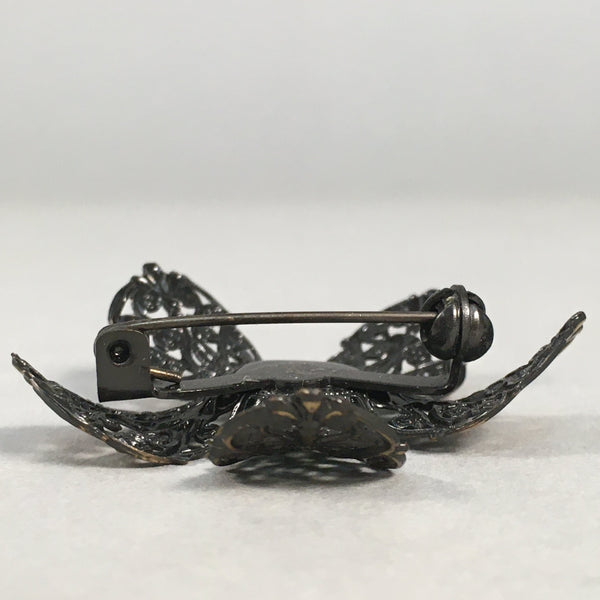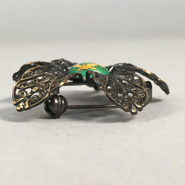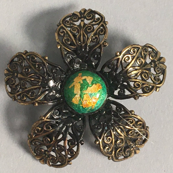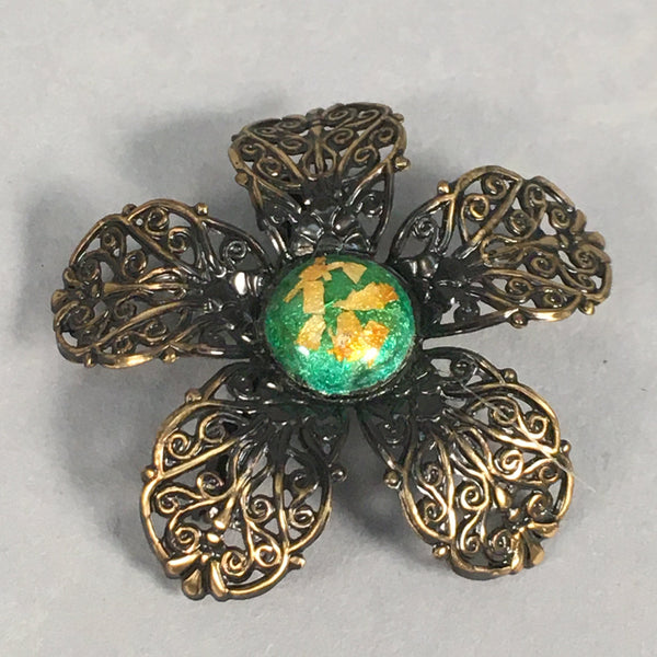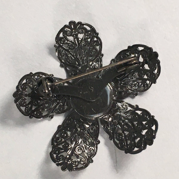 Japanese Cloisonne Brooch Vtg Metal Glass Pin Badge Flower JK92