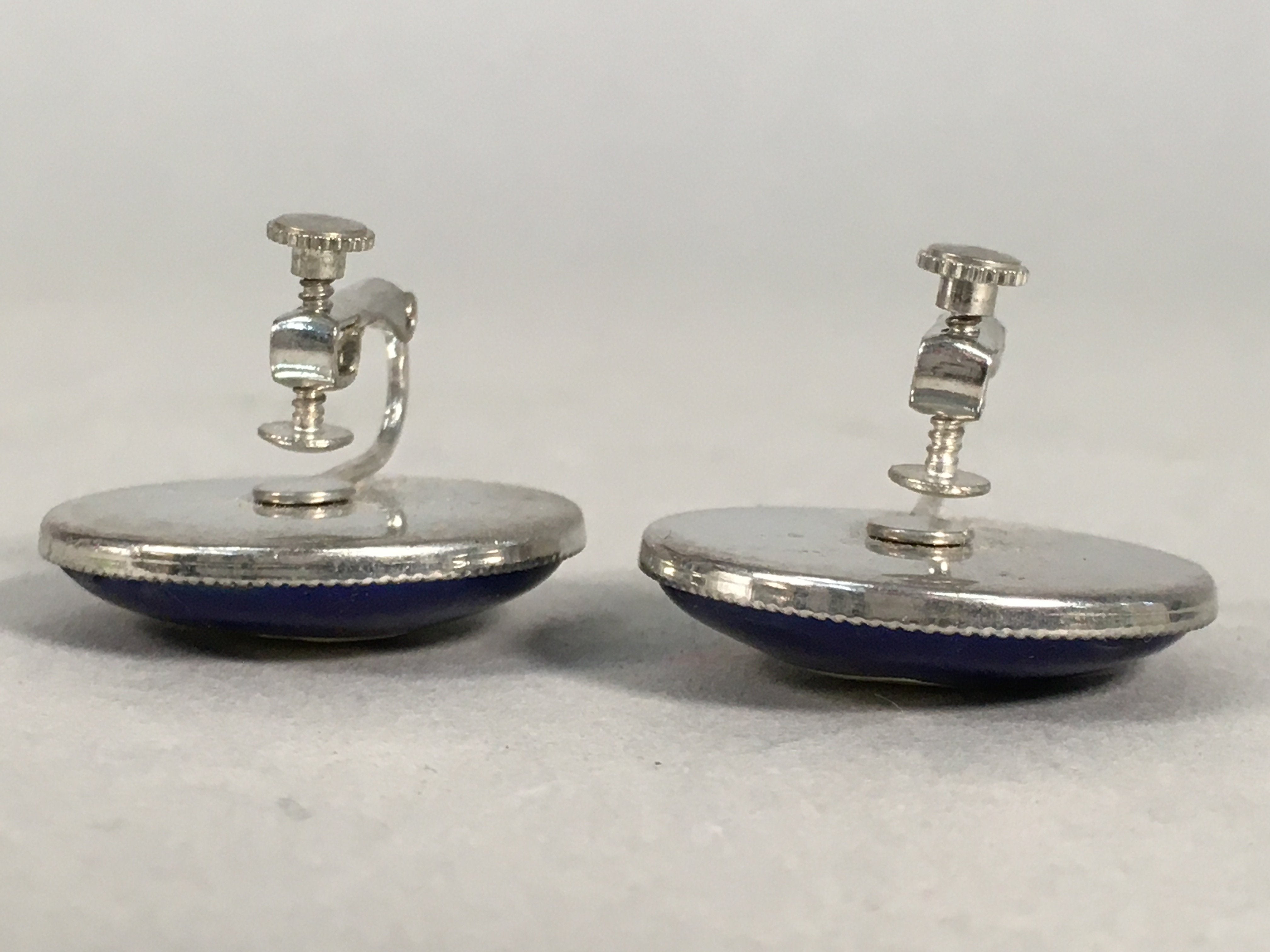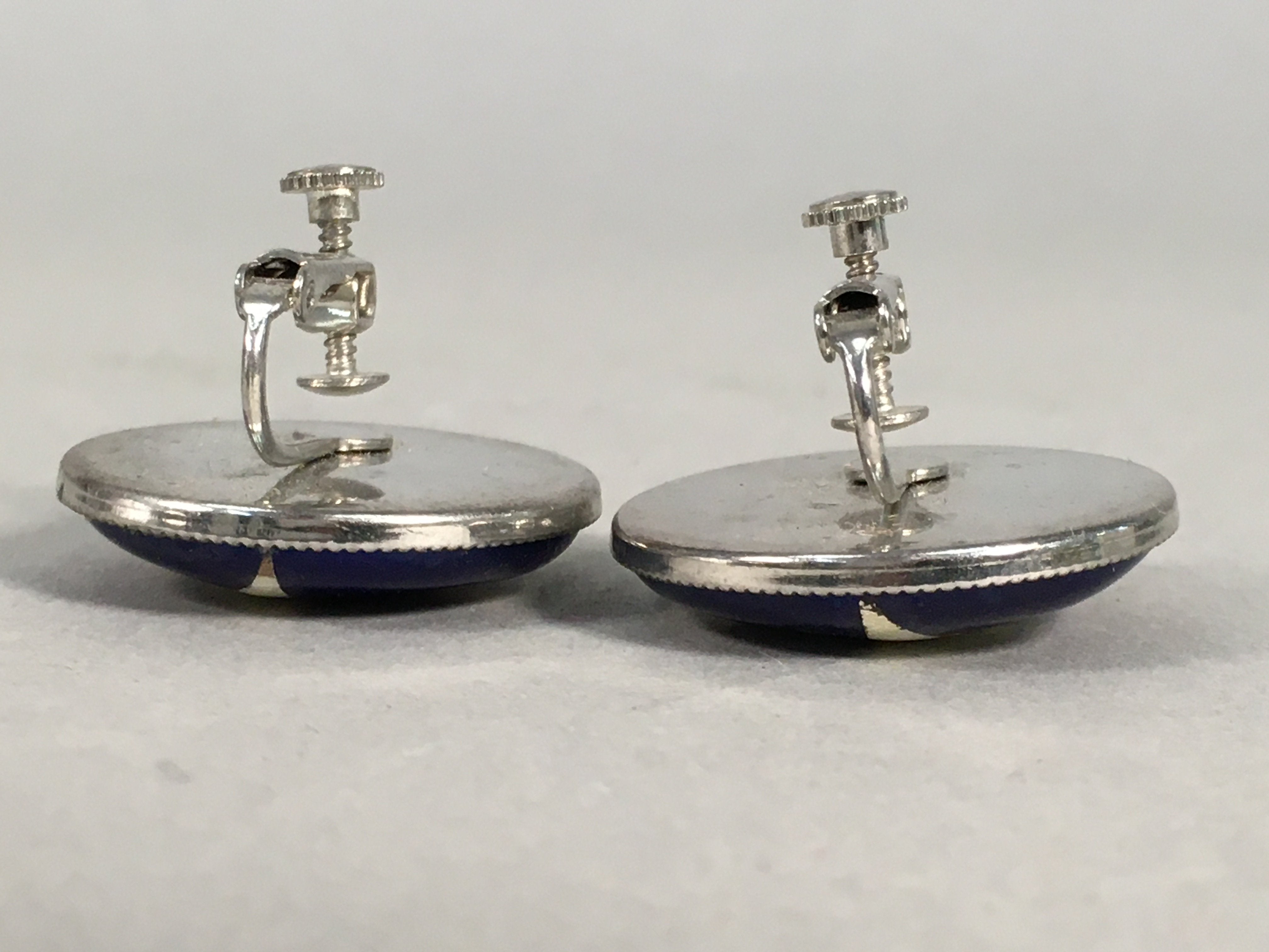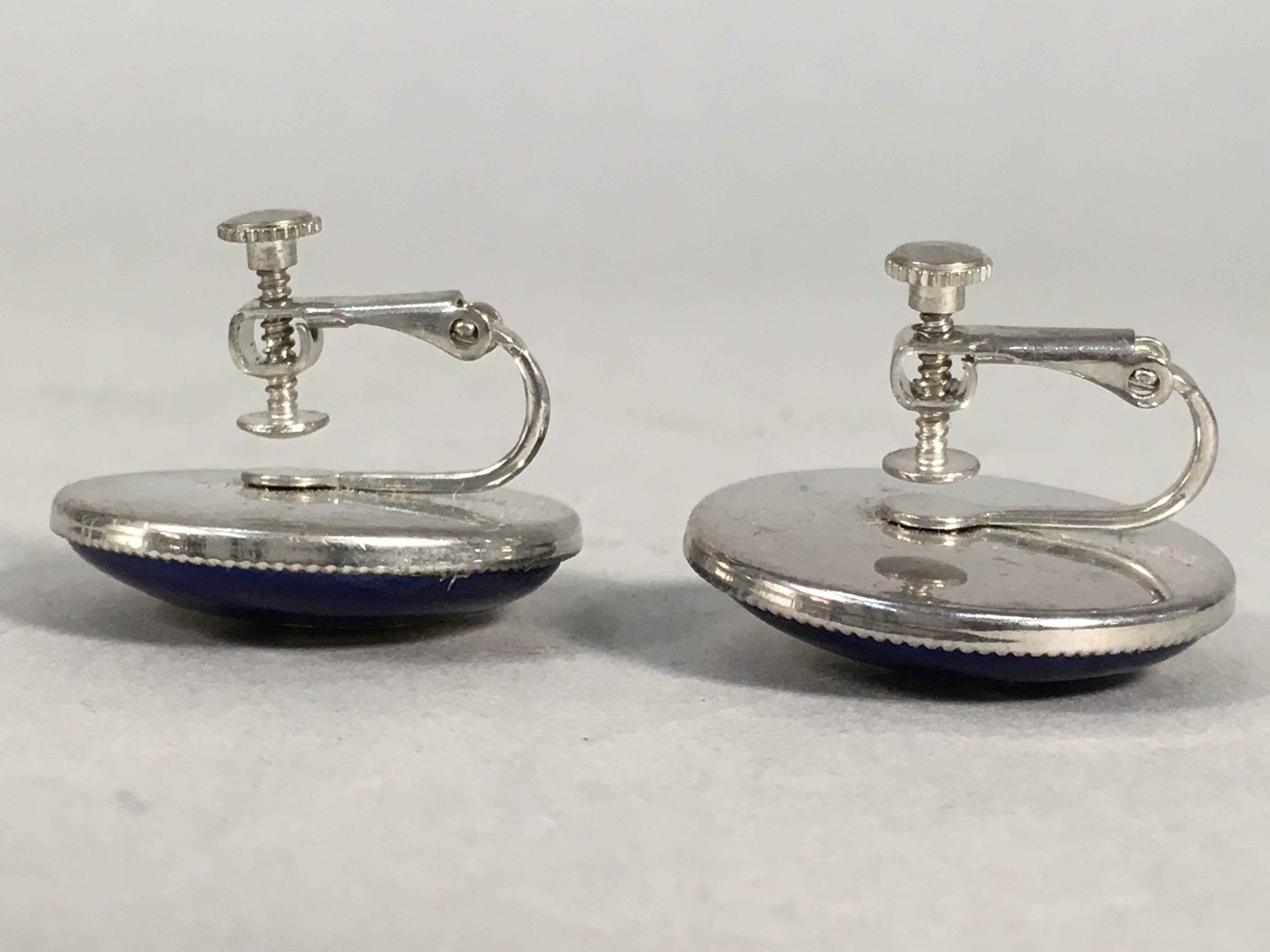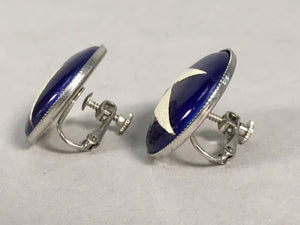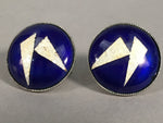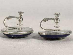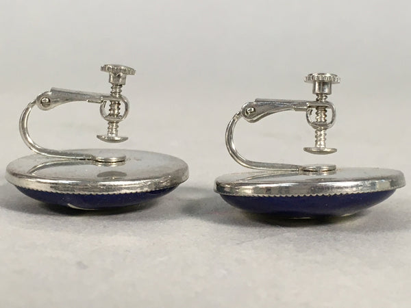 Japanese Cloisonne Earrings Vtg Metal Glass Shippo Round Gold Blue JK76
