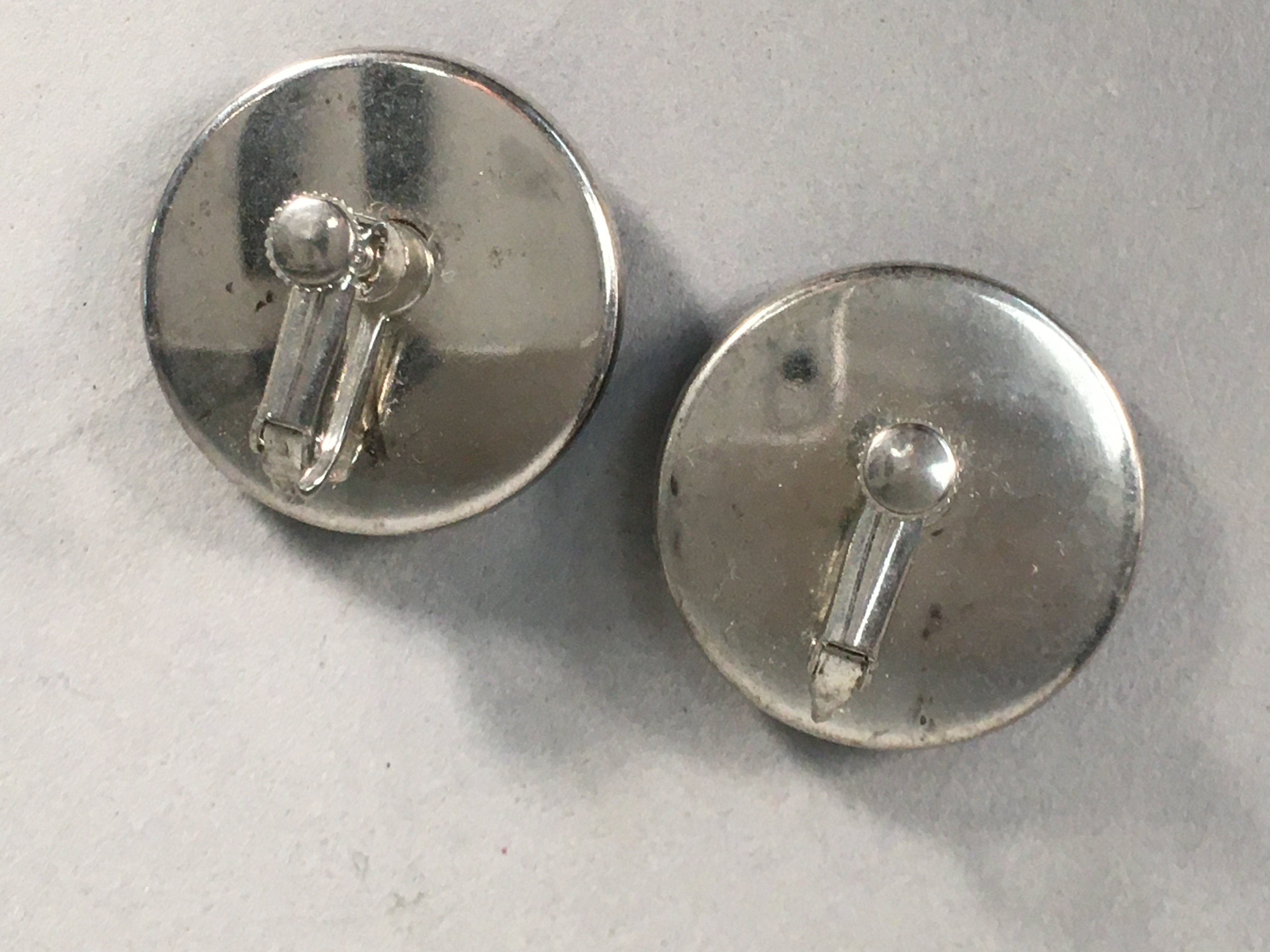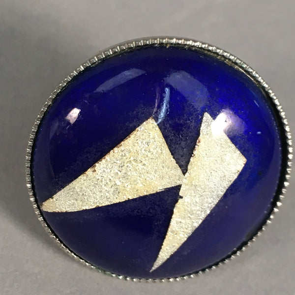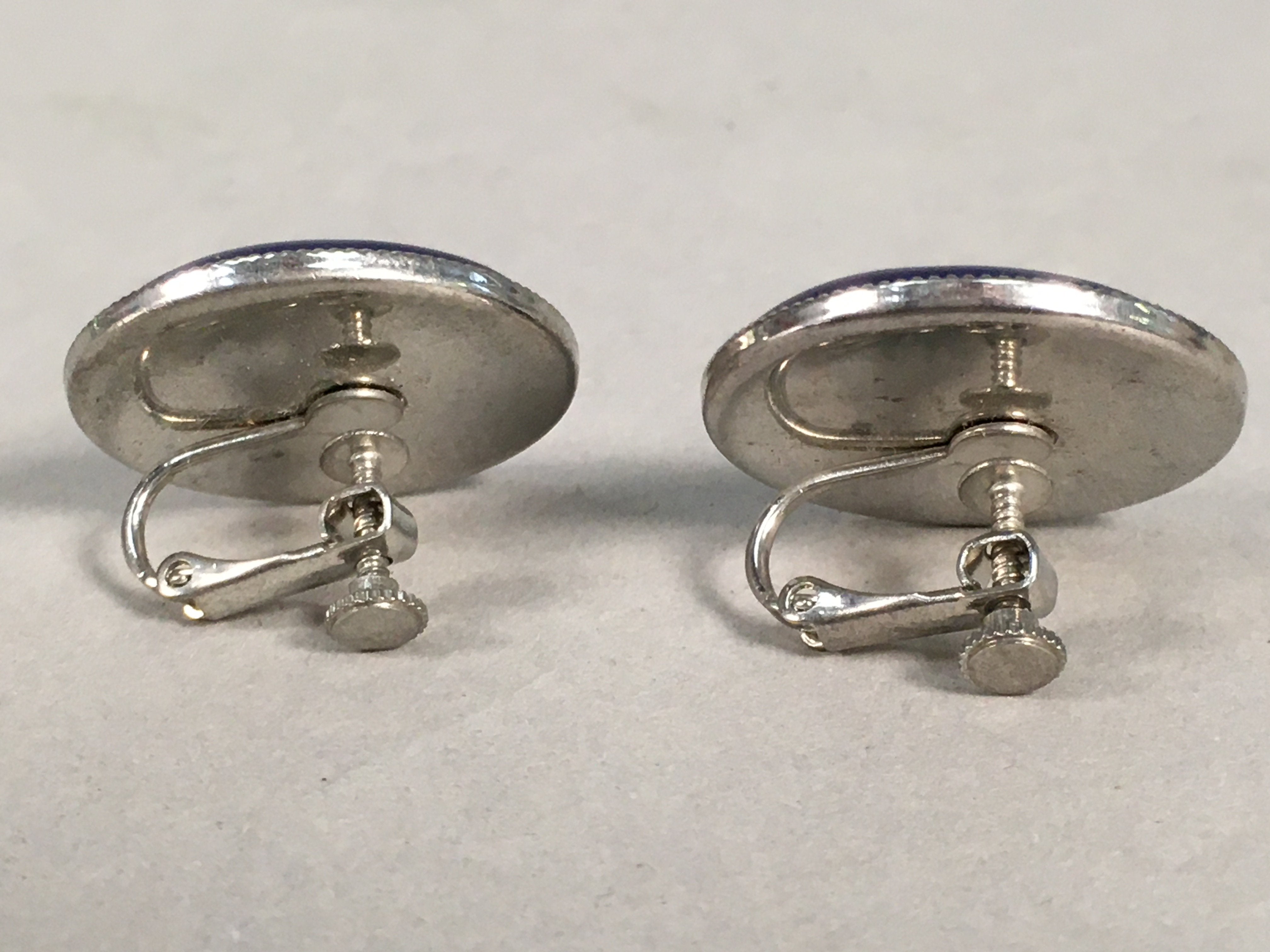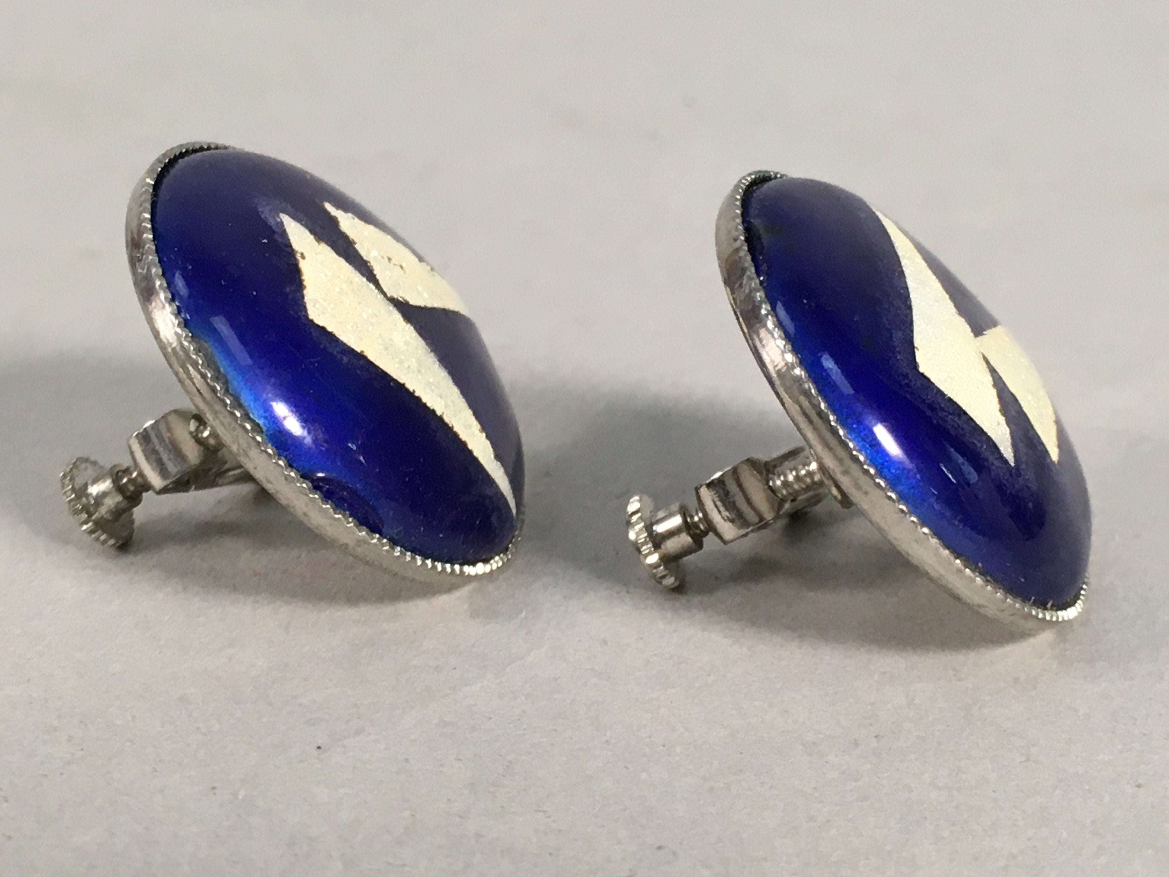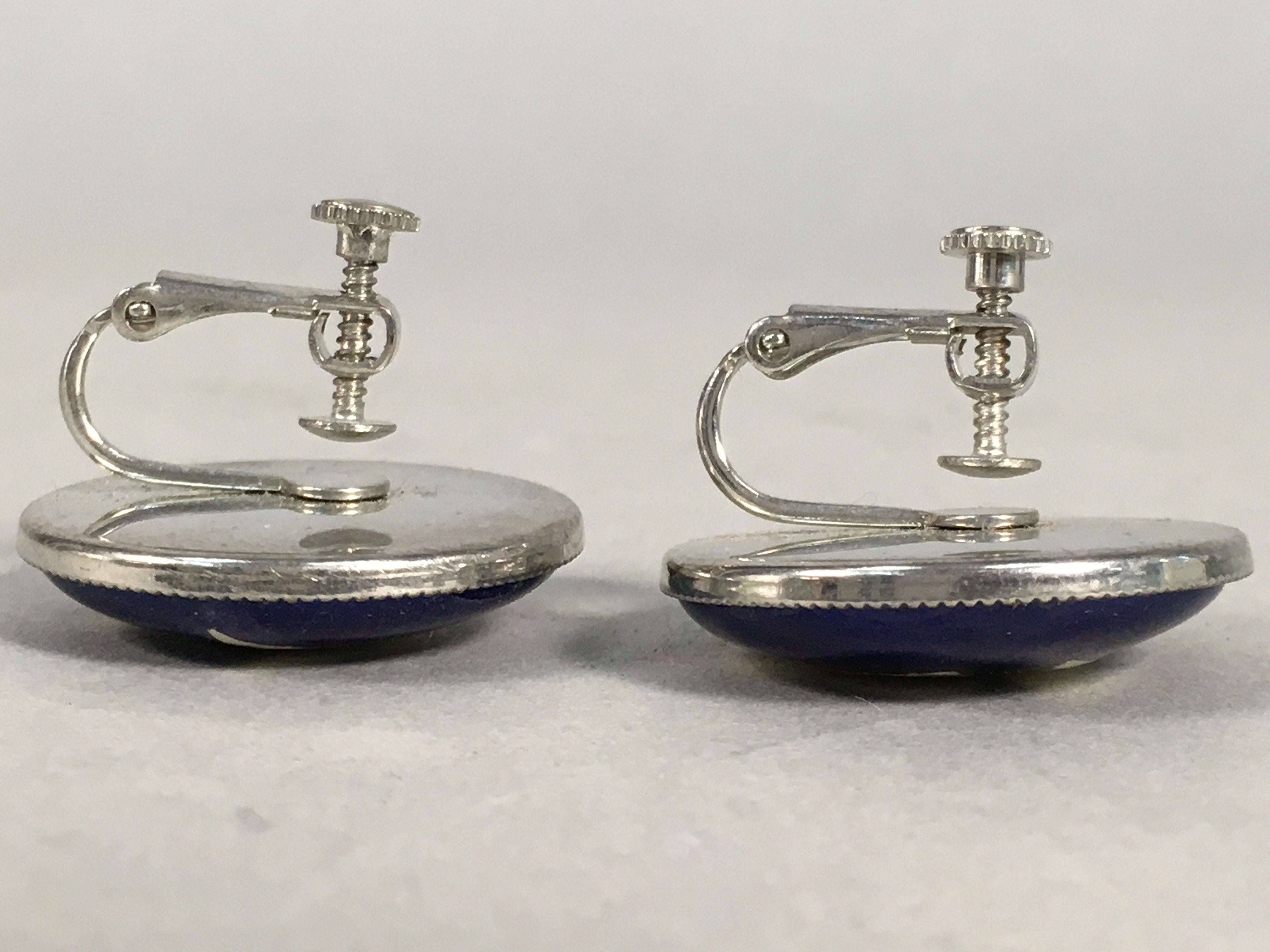 Japanese Cloisonne Earrings Vtg Metal Glass Shippo Round Gold Blue JK76