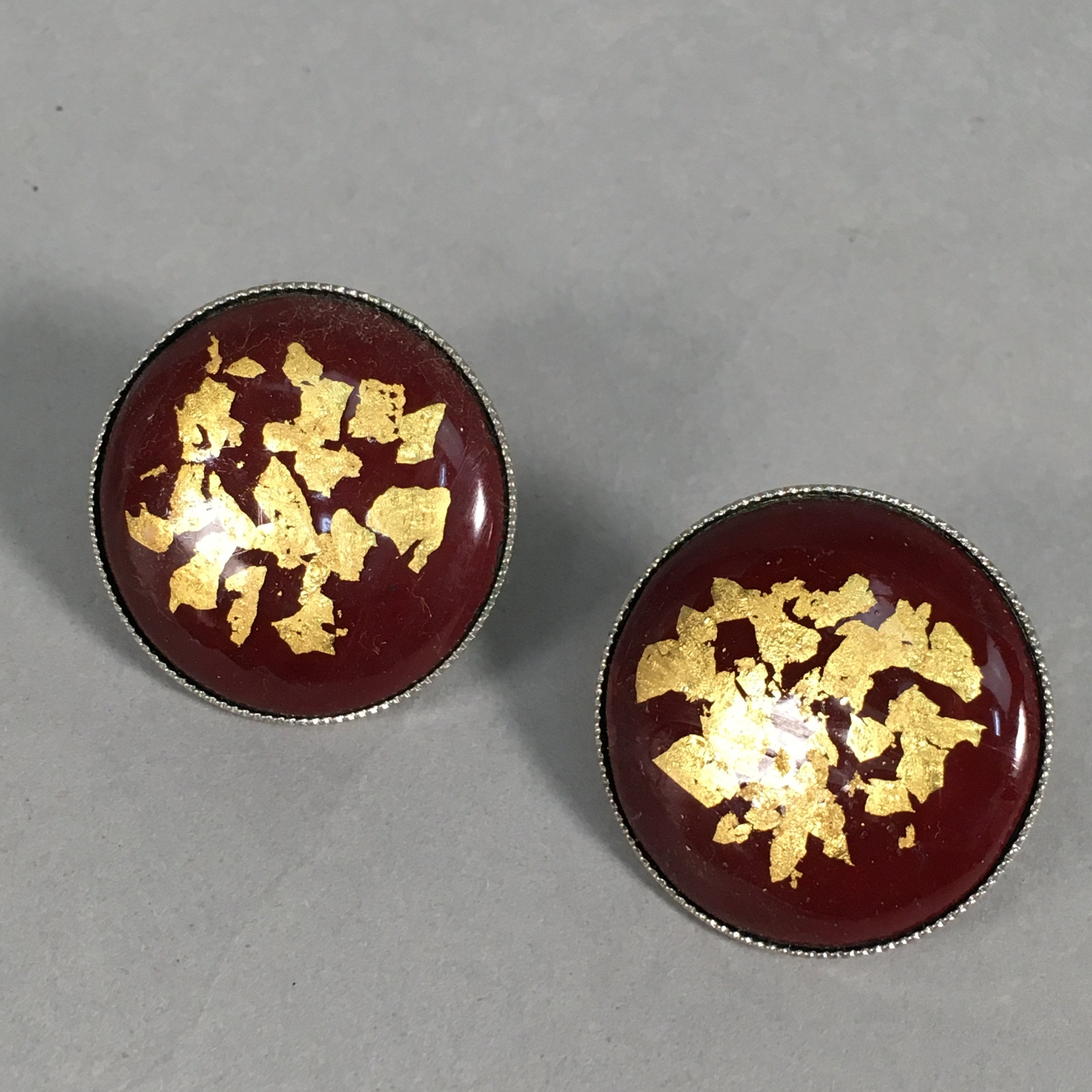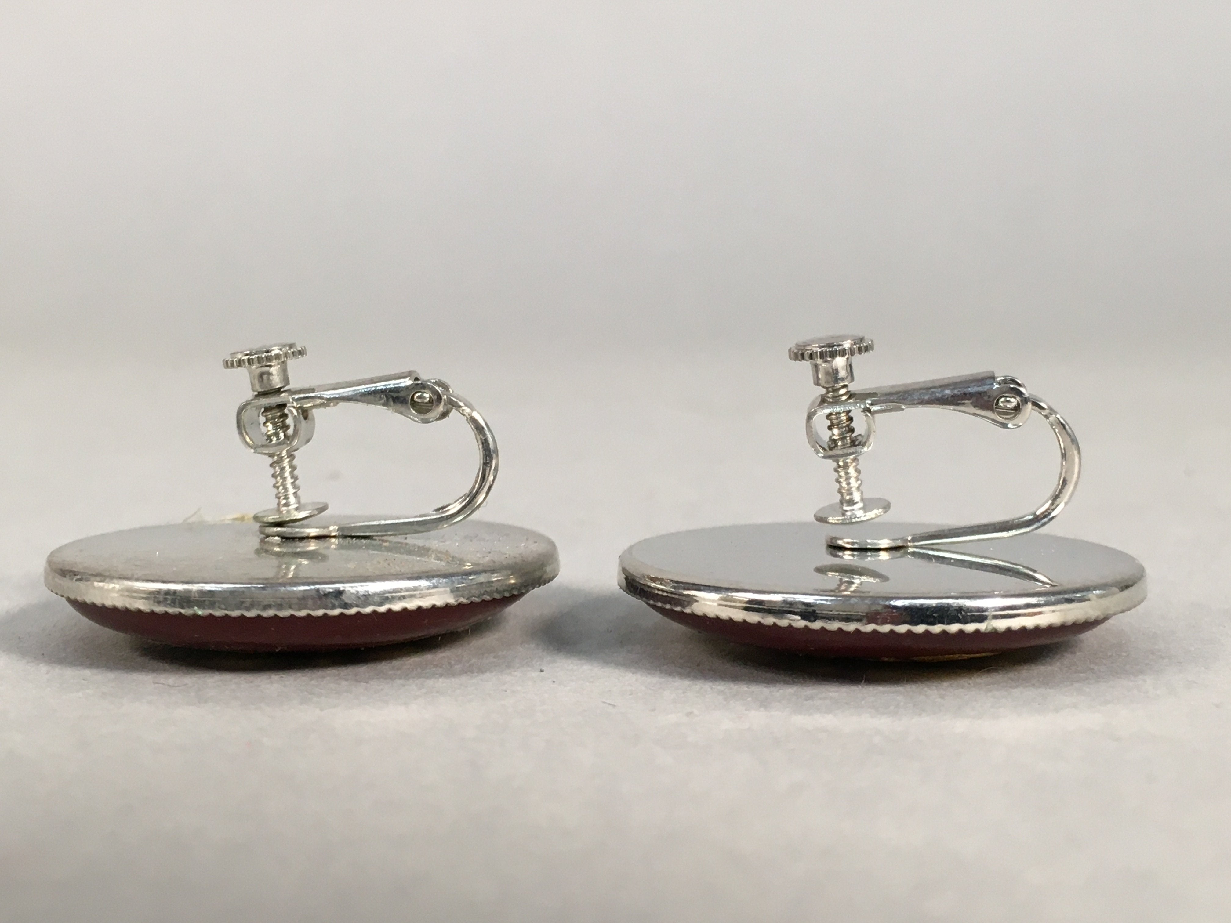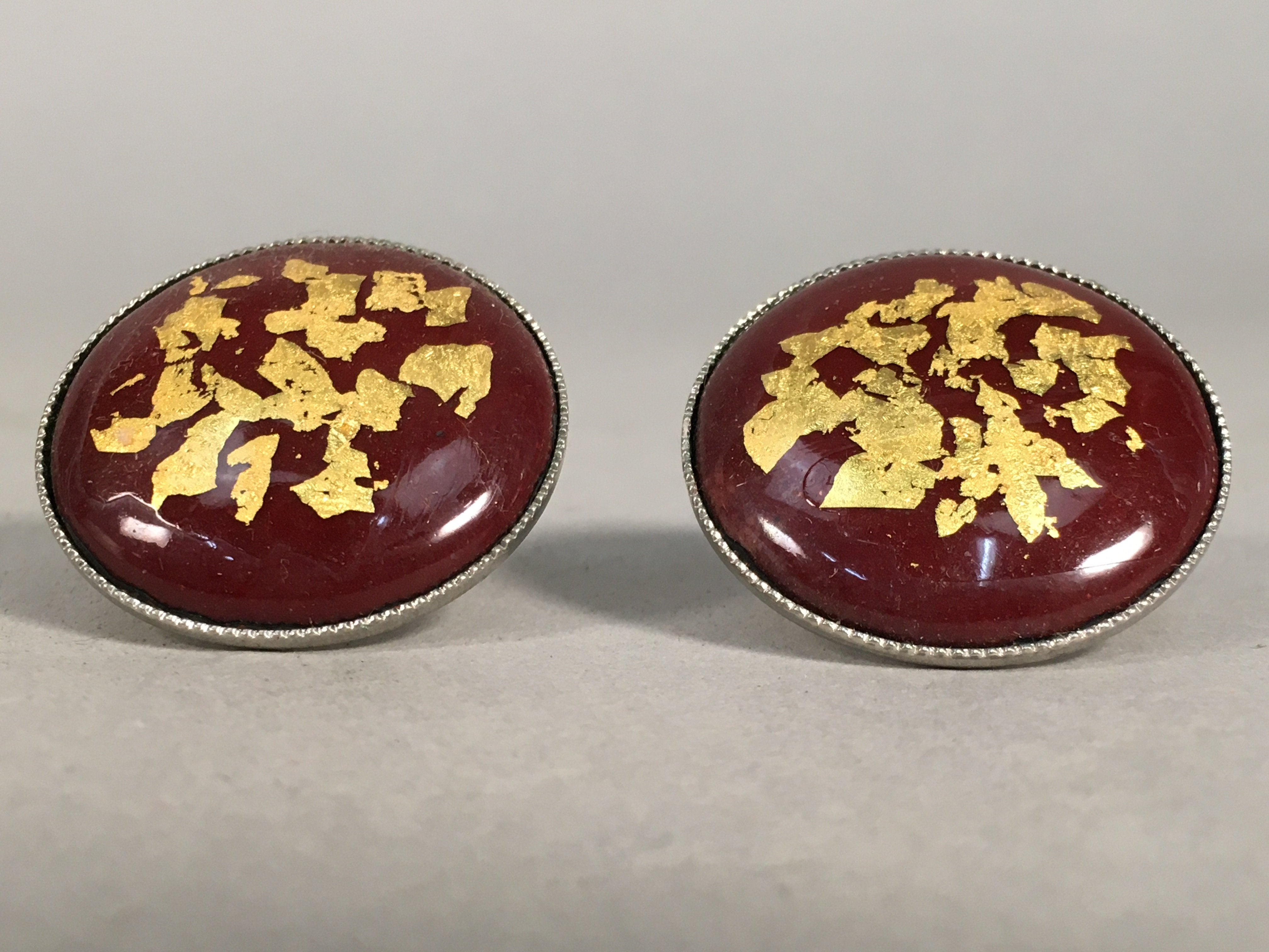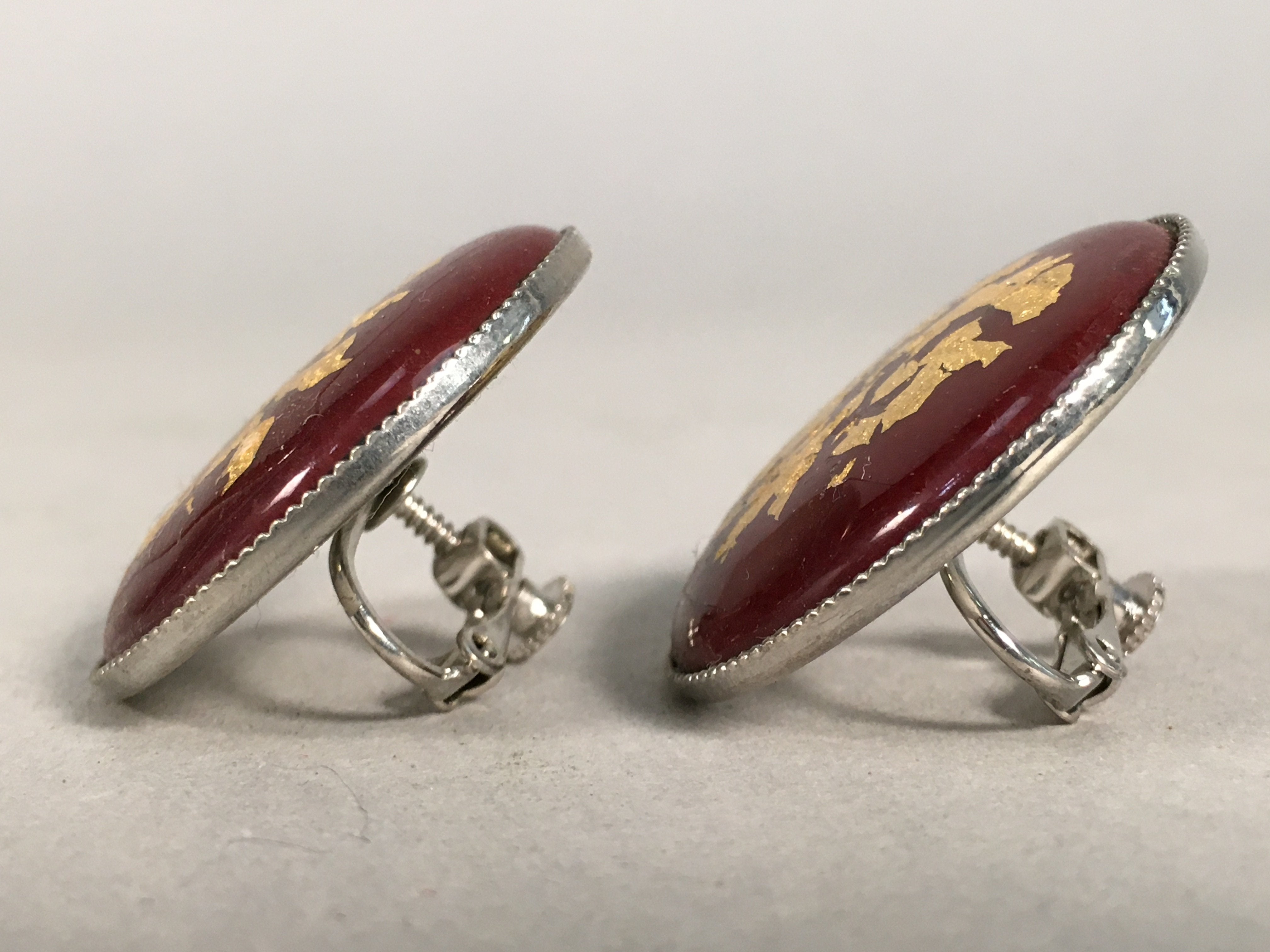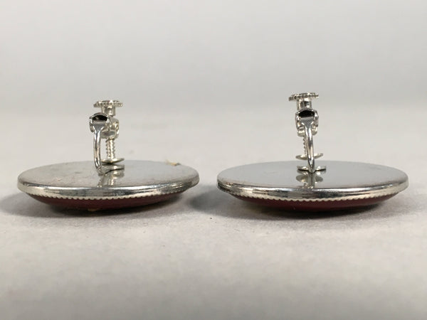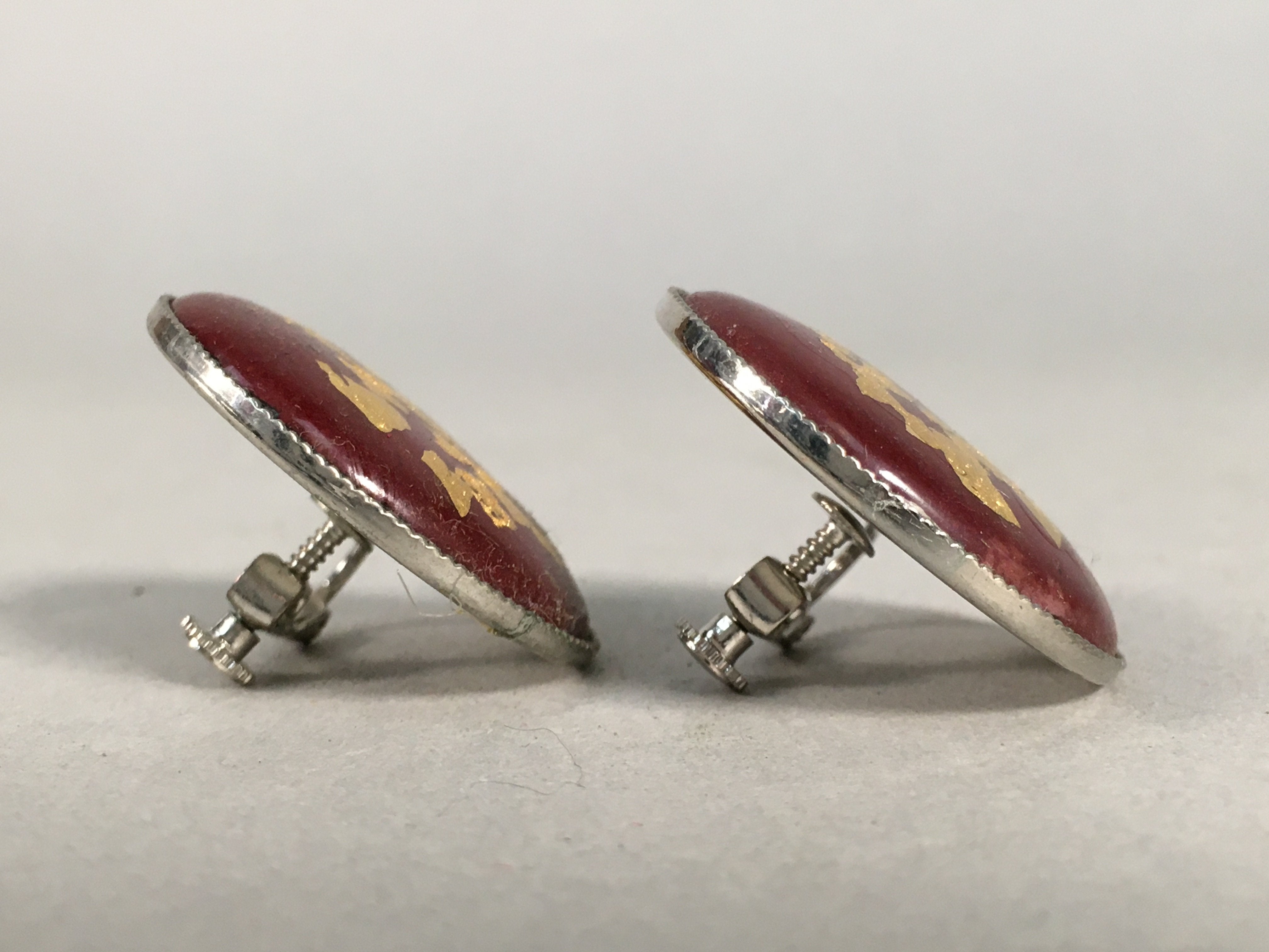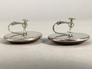 Japanese Cloisonne Earrings Vtg Metal Glass Shippo Round Gold Brown JK72