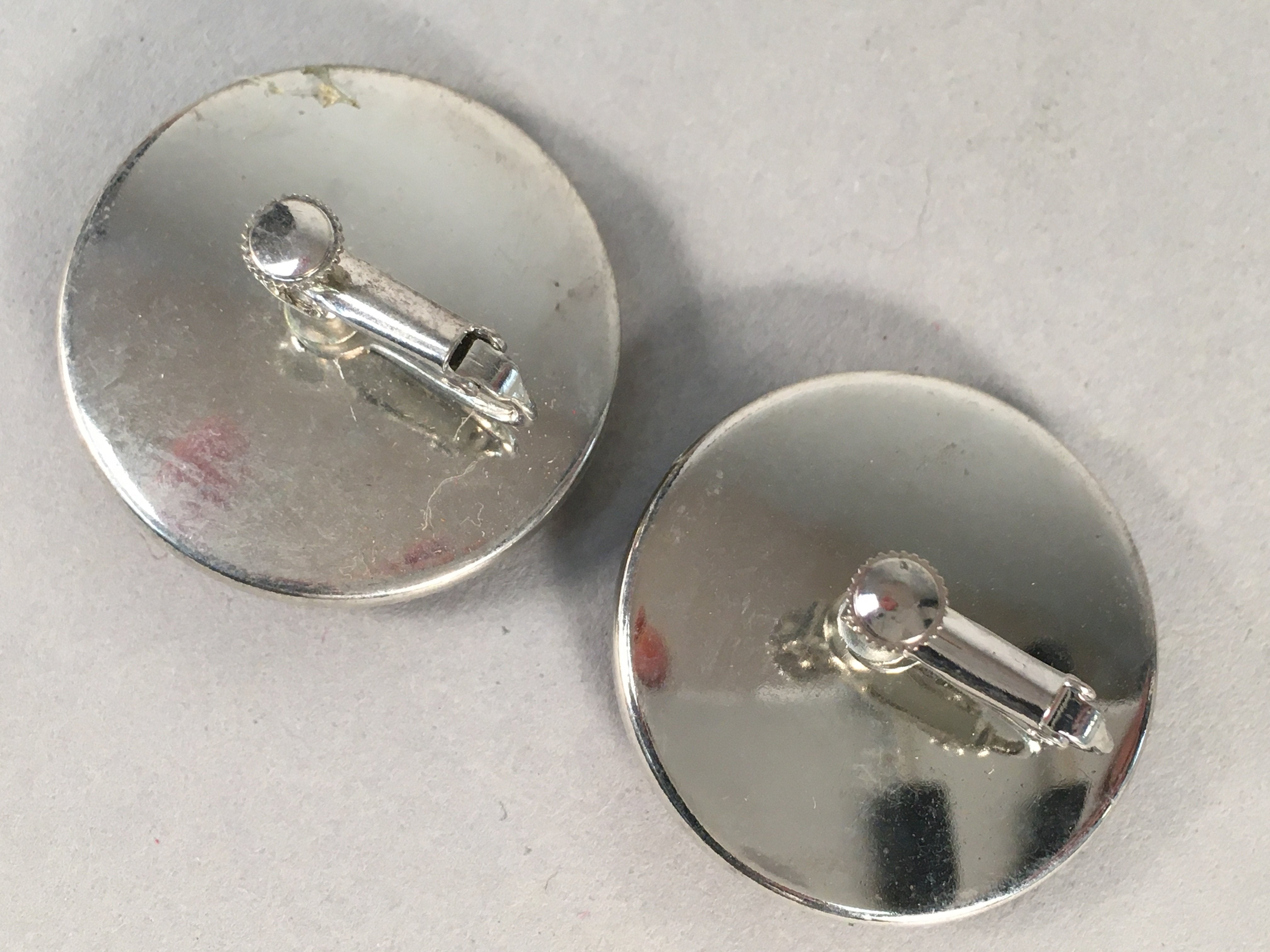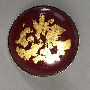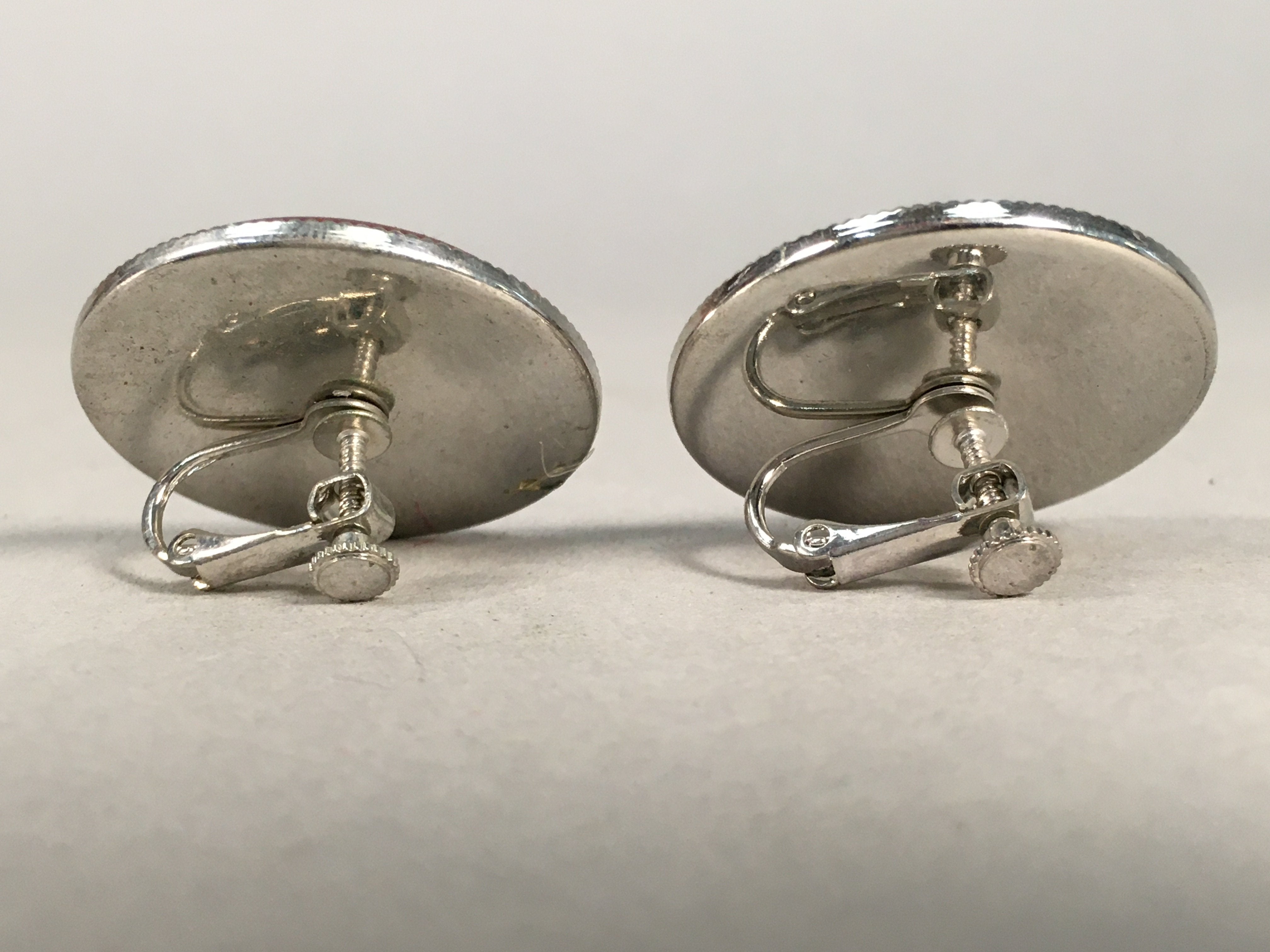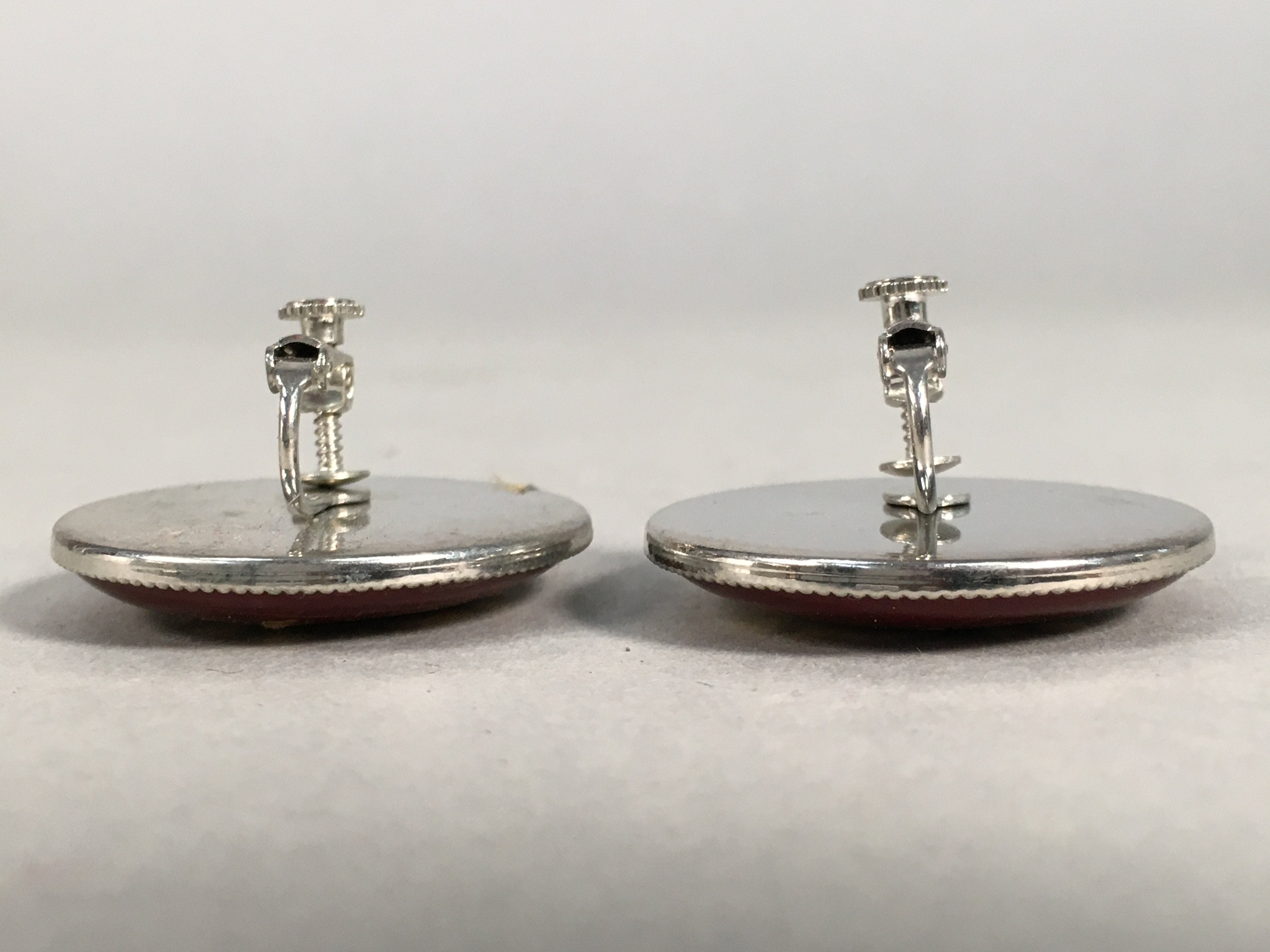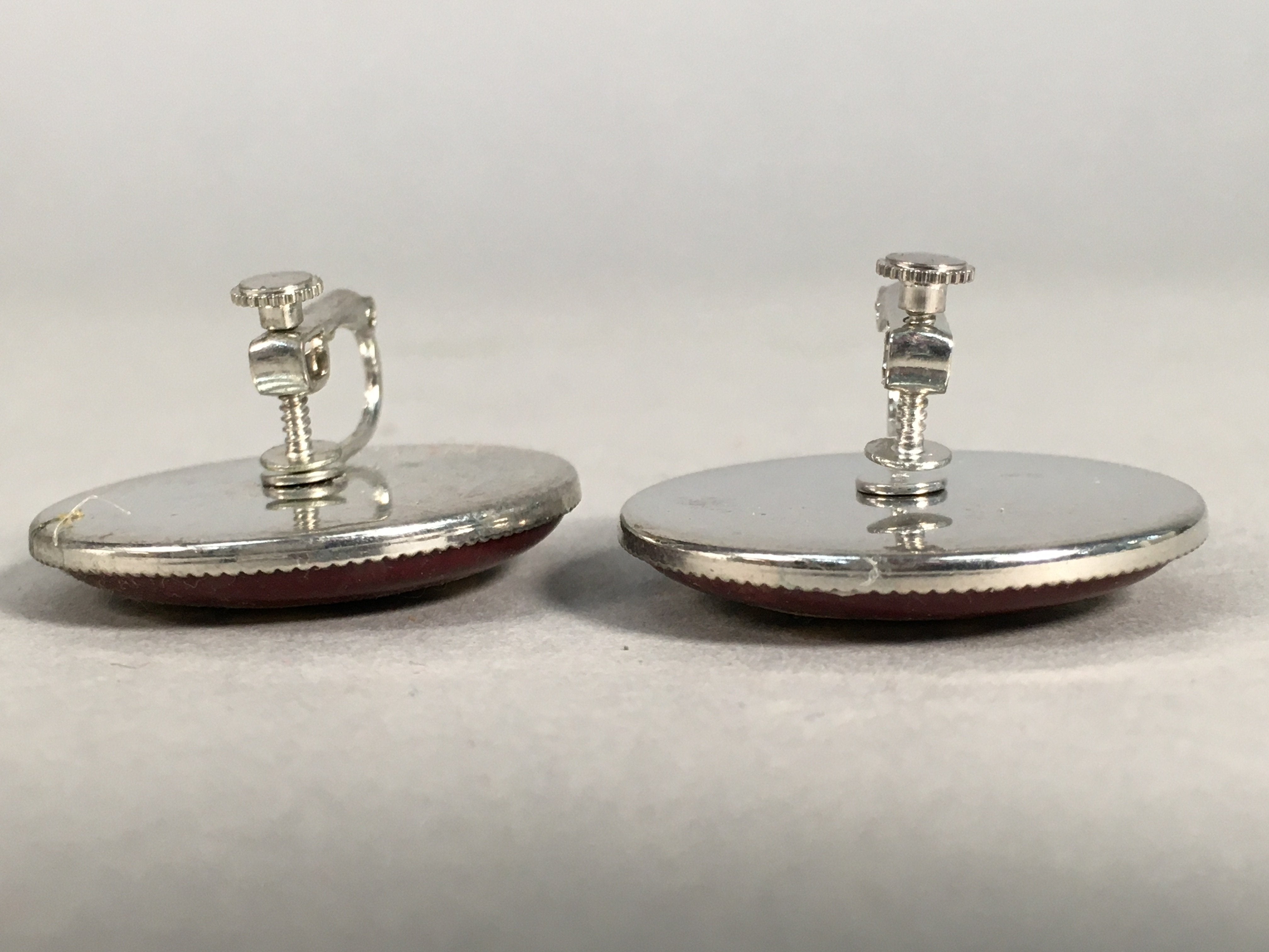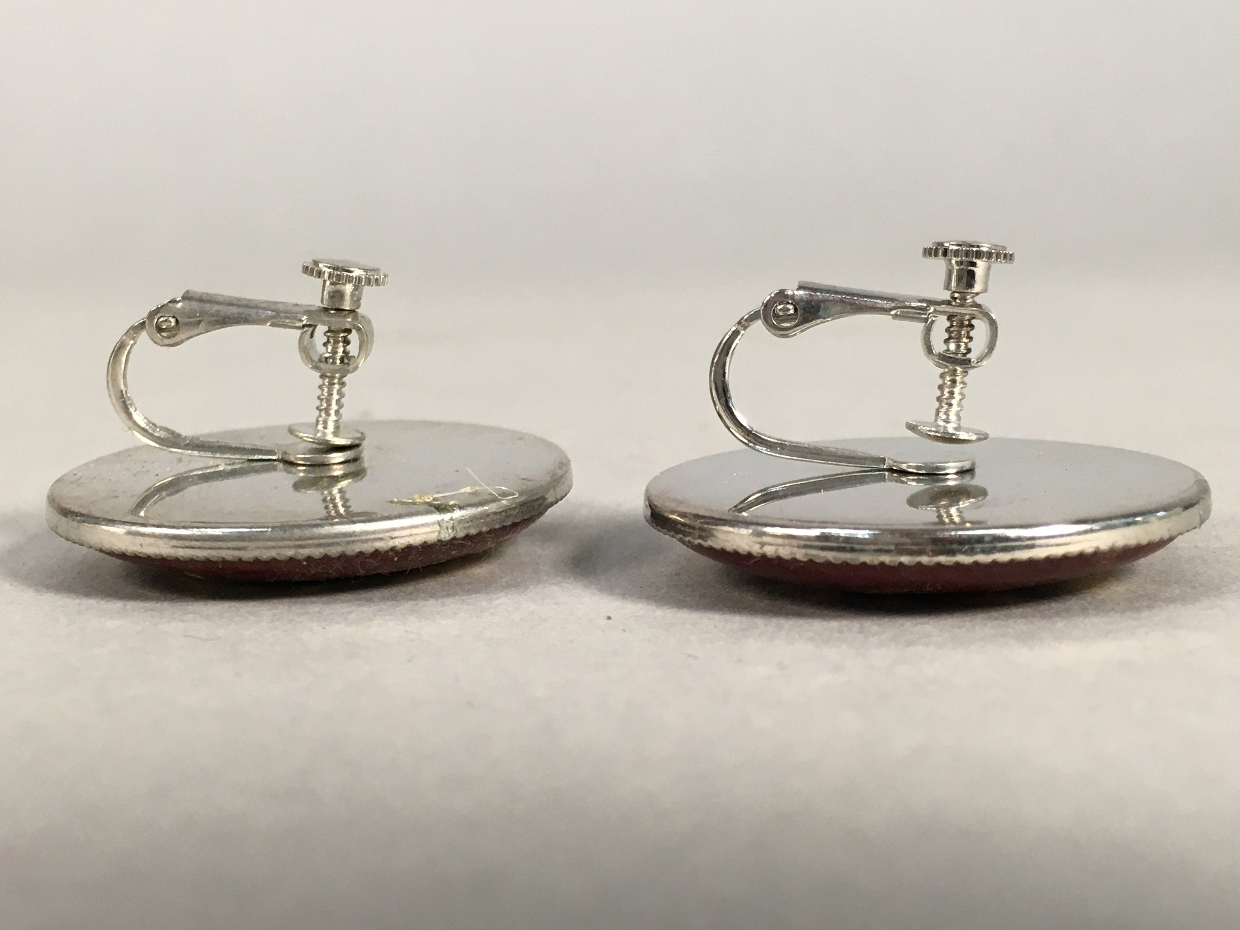 Japanese Cloisonne Earrings Vtg Metal Glass Shippo Round Gold Brown JK72