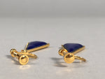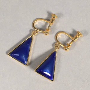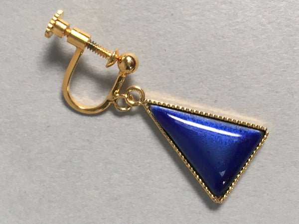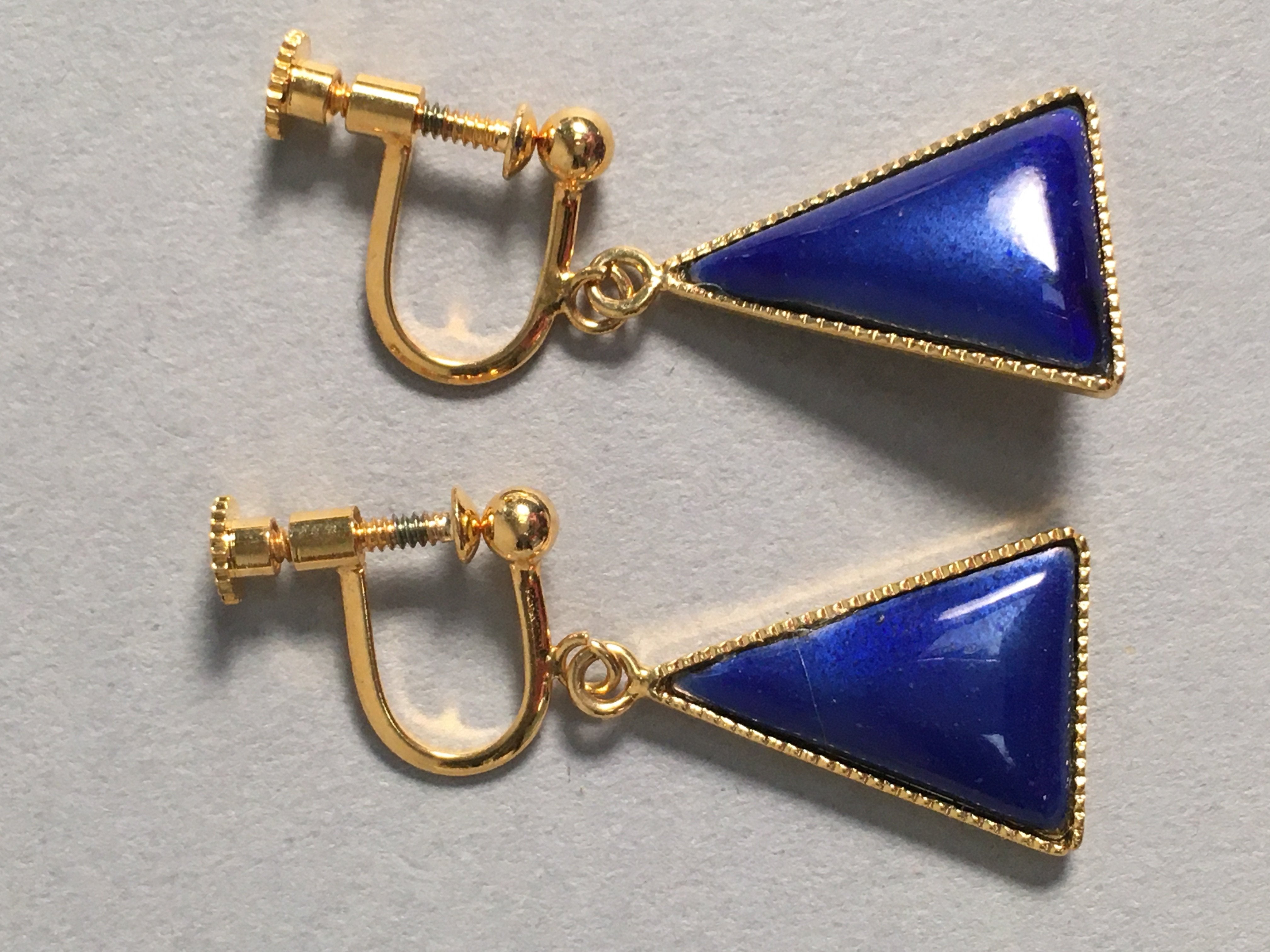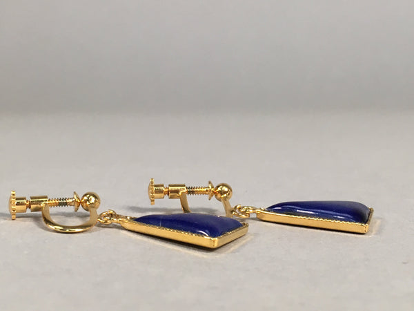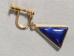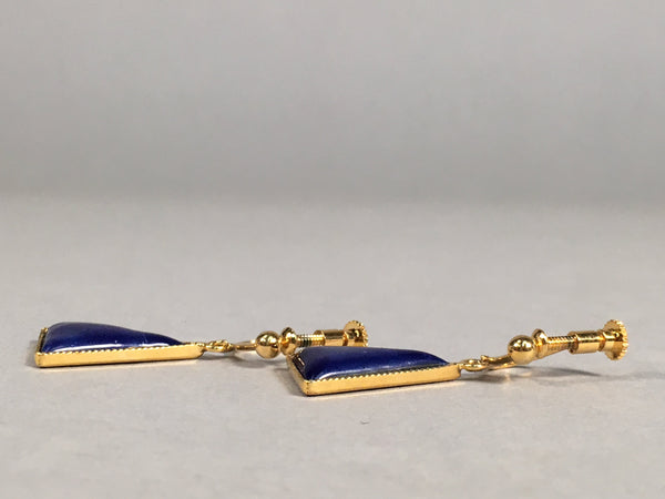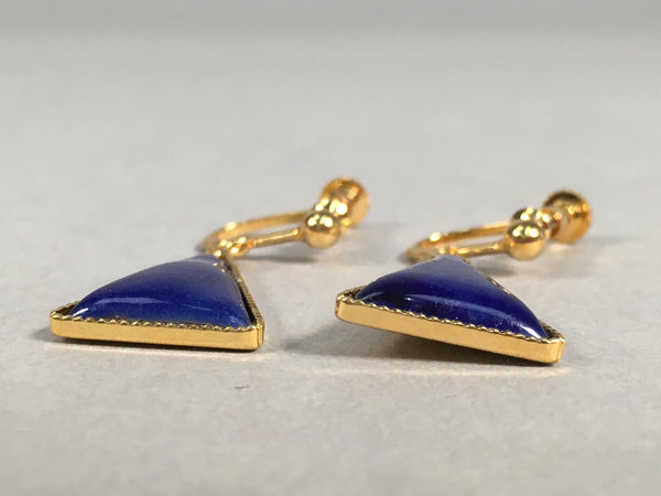 Japanese Cloisonné Earrings Vtg Metal Glass Shippo Triangle Blue JK105