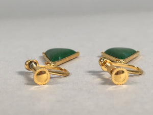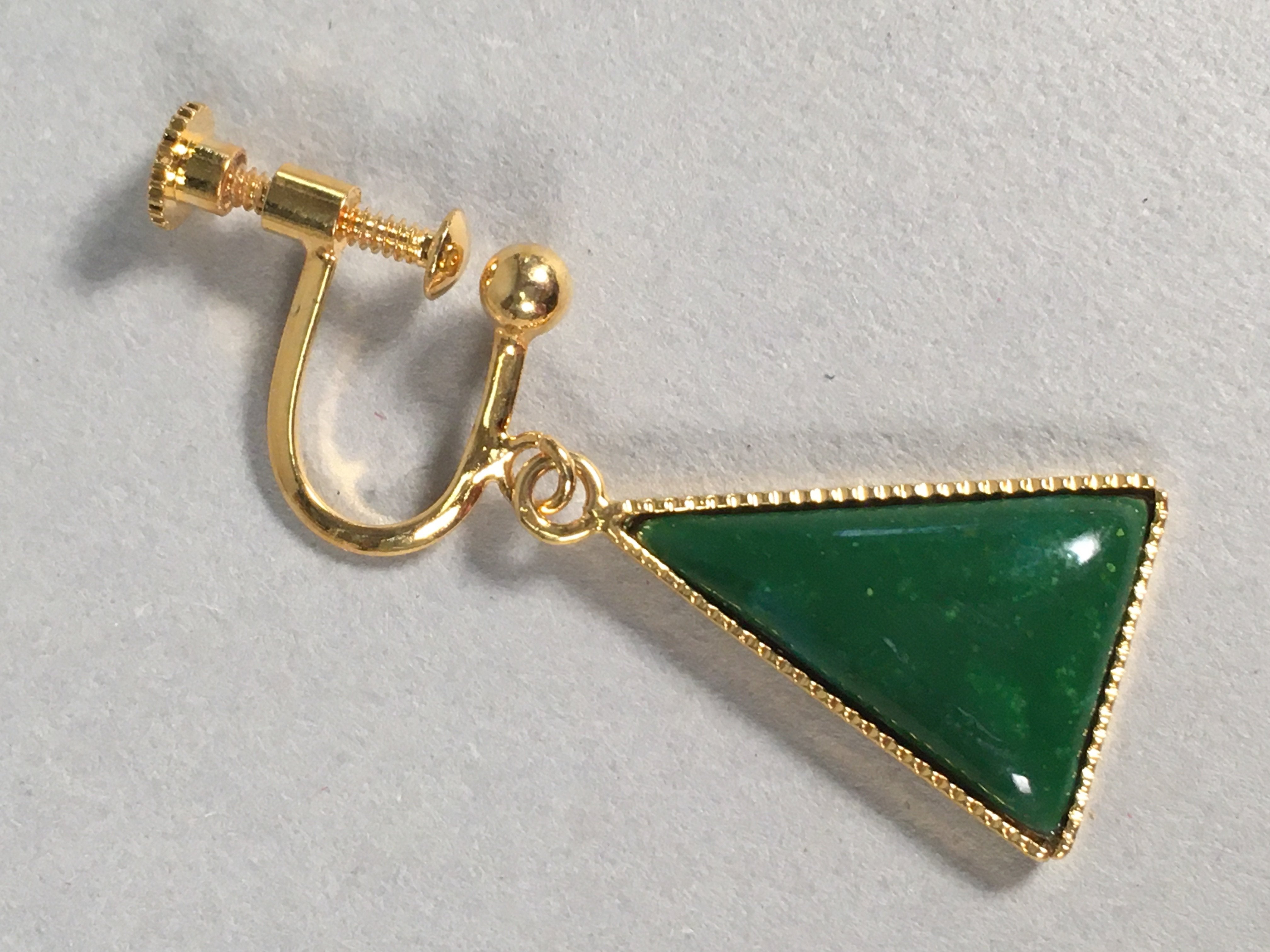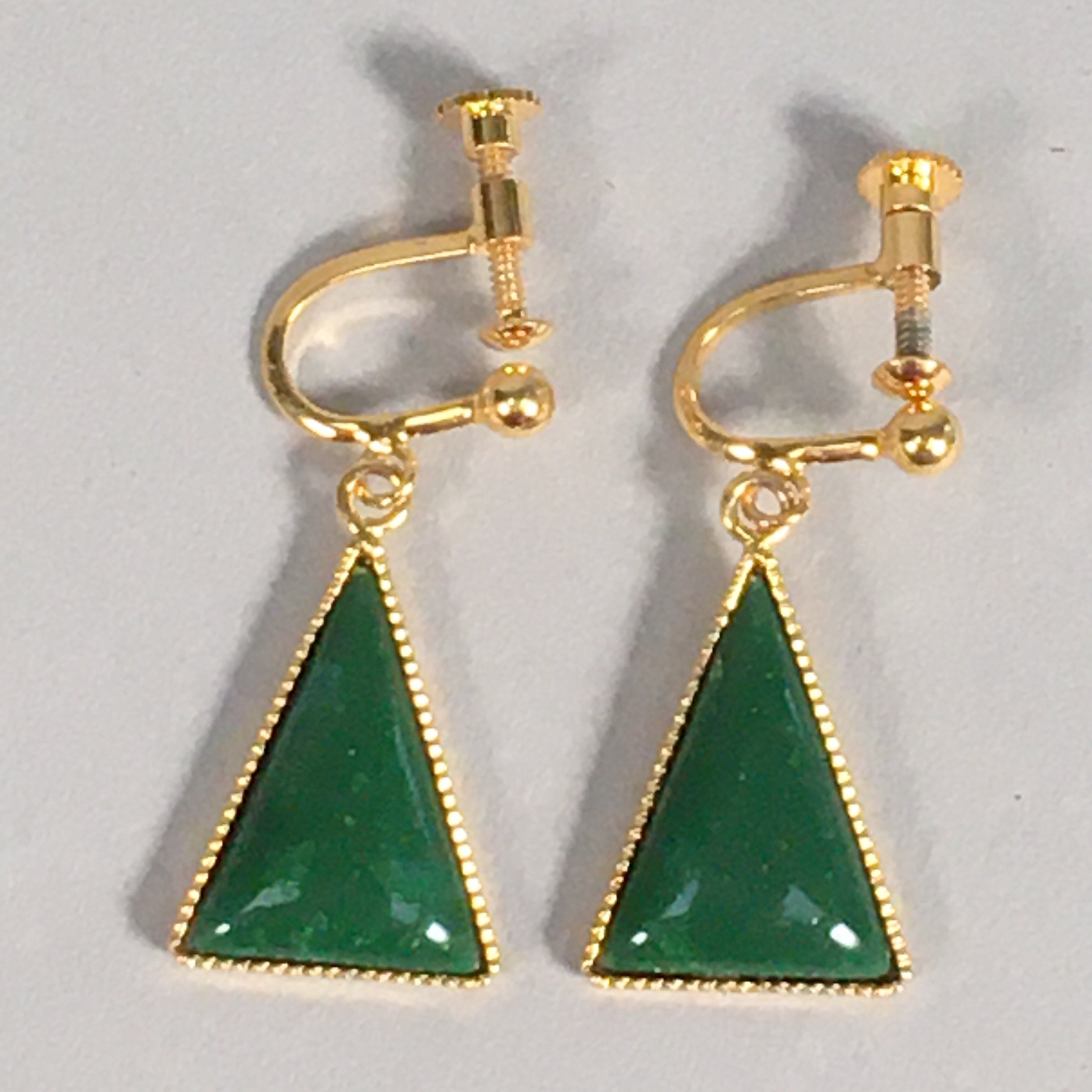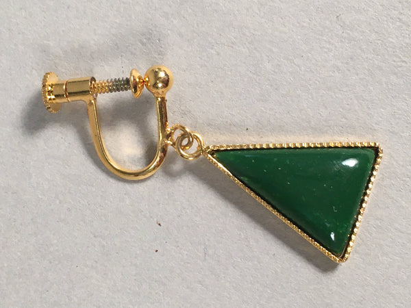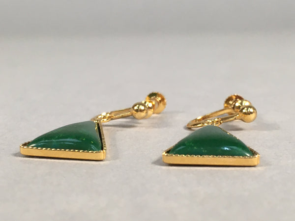 Japanese Cloisonne Earrings Vtg Metal Glass Shippo Triangle Green JK100