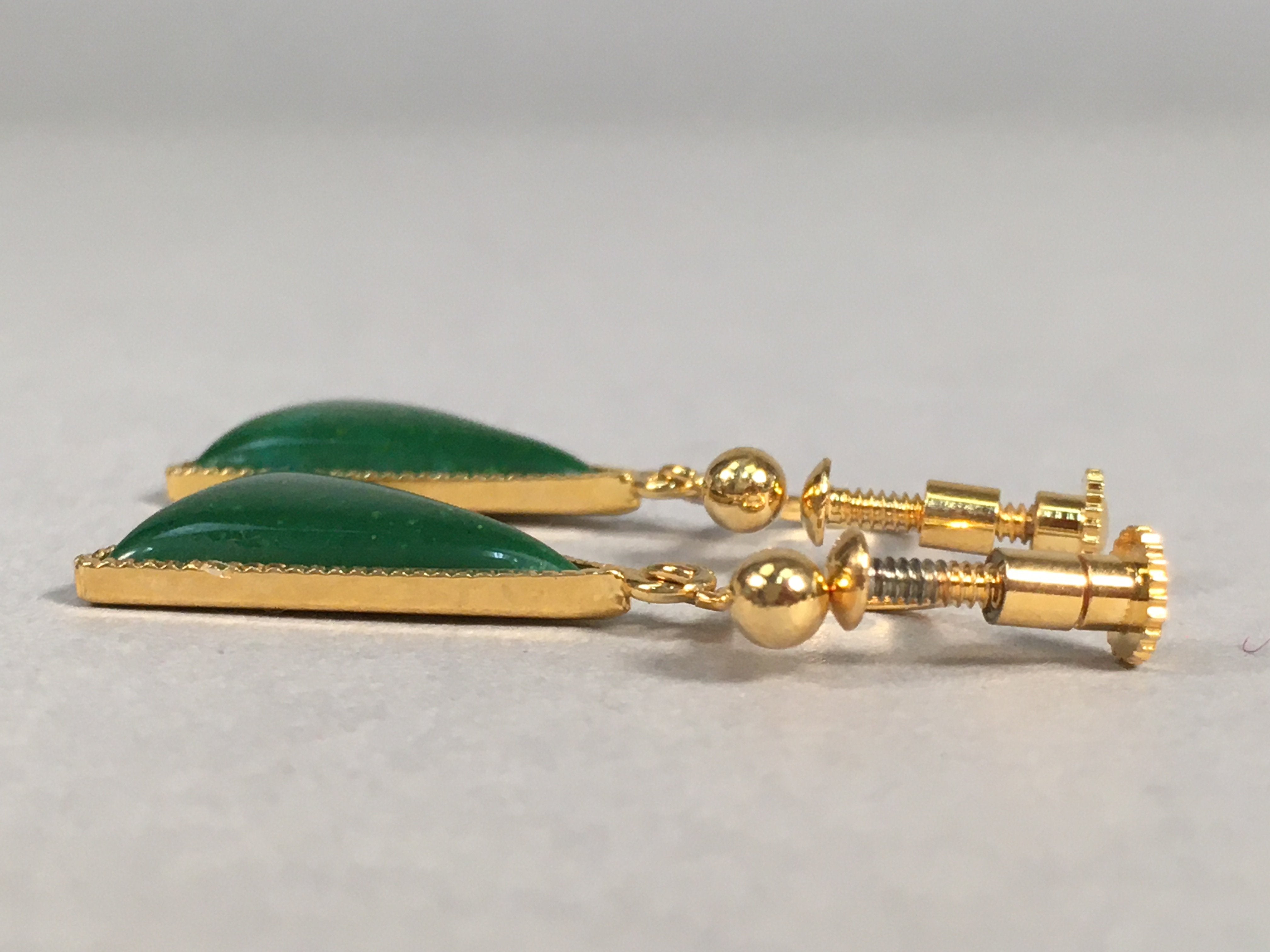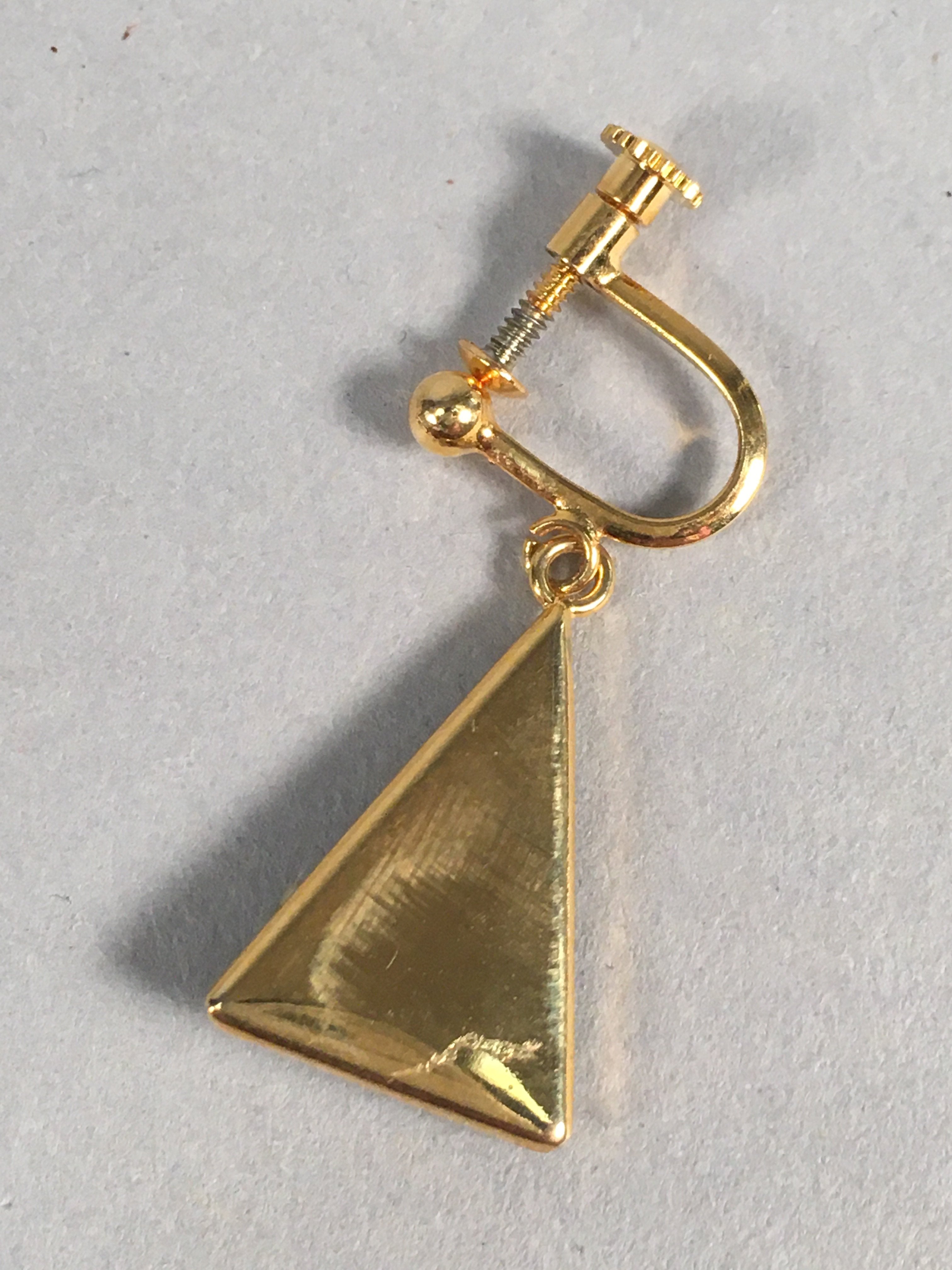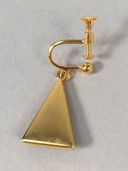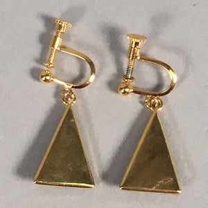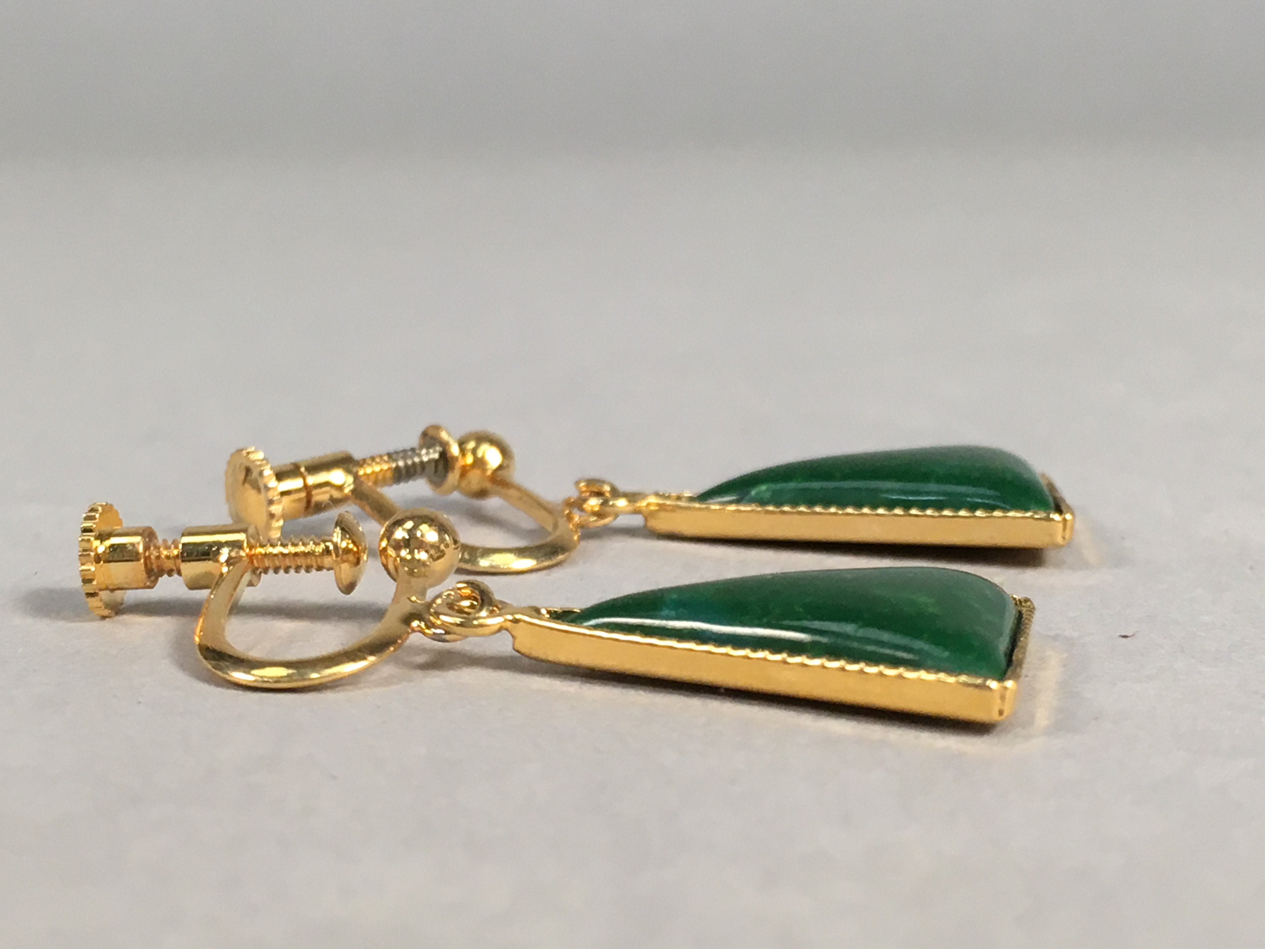 Japanese Cloisonne Earrings Vtg Metal Glass Shippo Triangle Green JK100