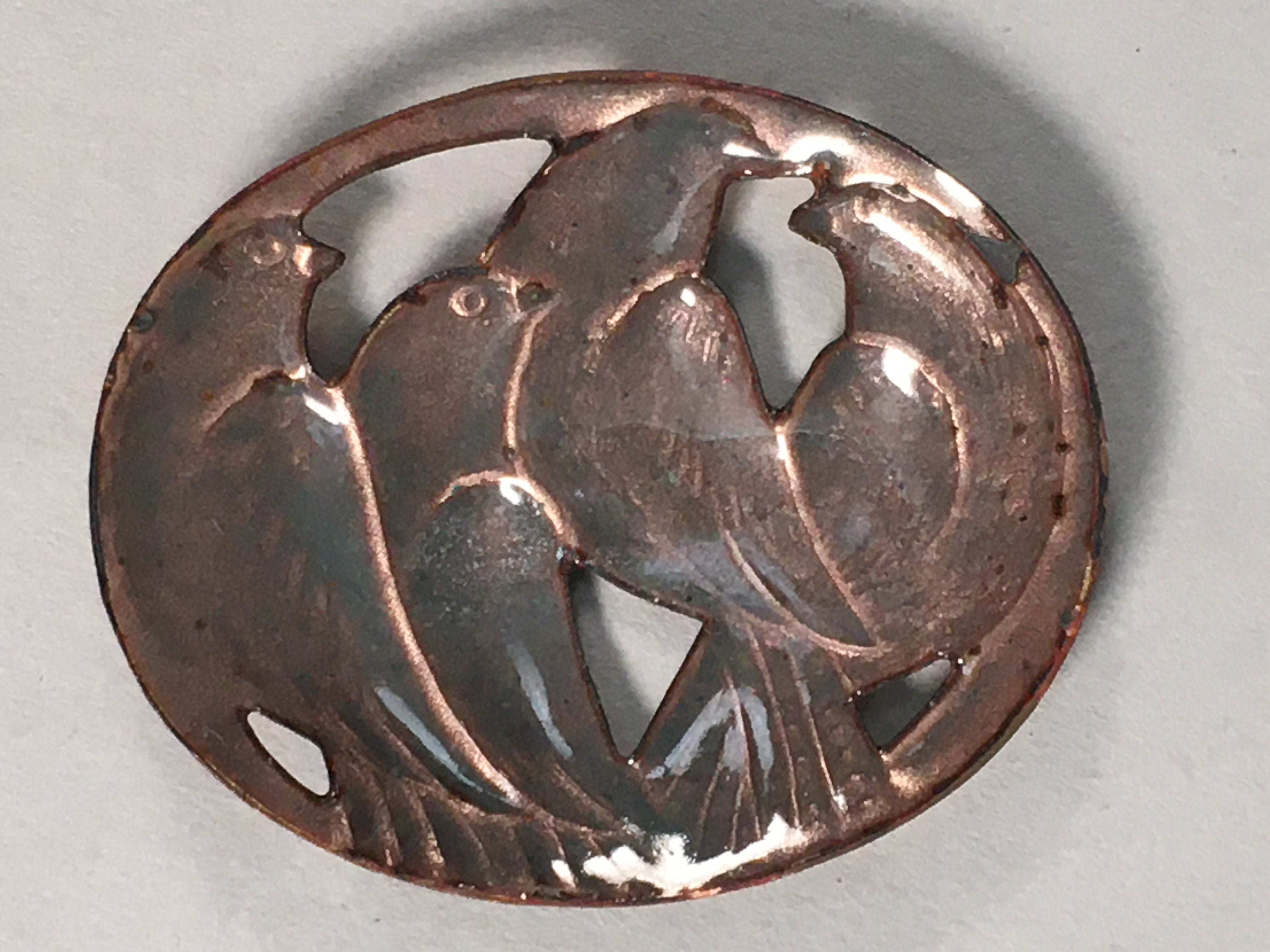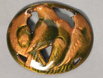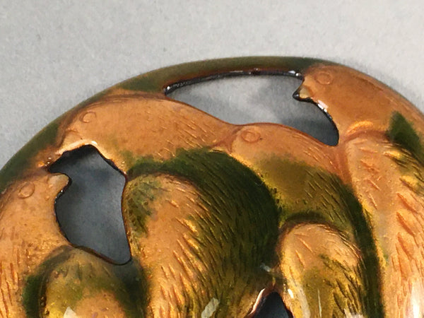 Japanese Cloisonne Ornament Display Vtg Shippo Bird Gold Green Oval JK70