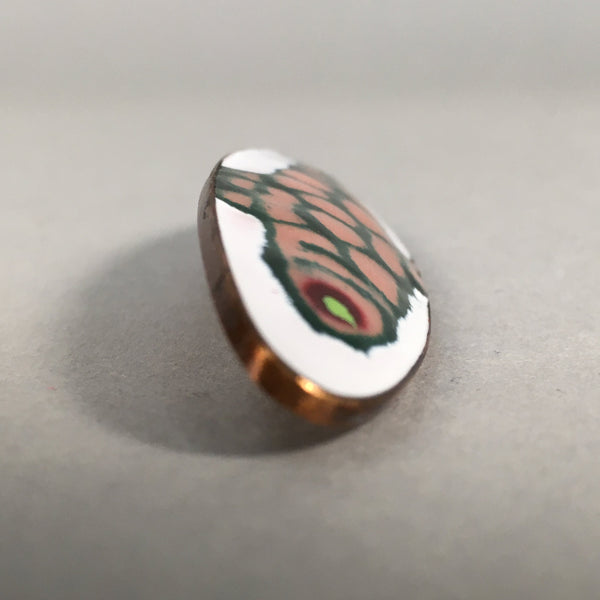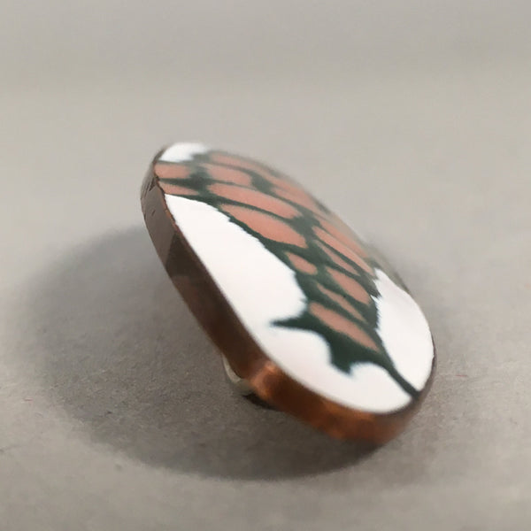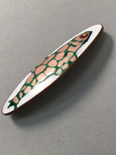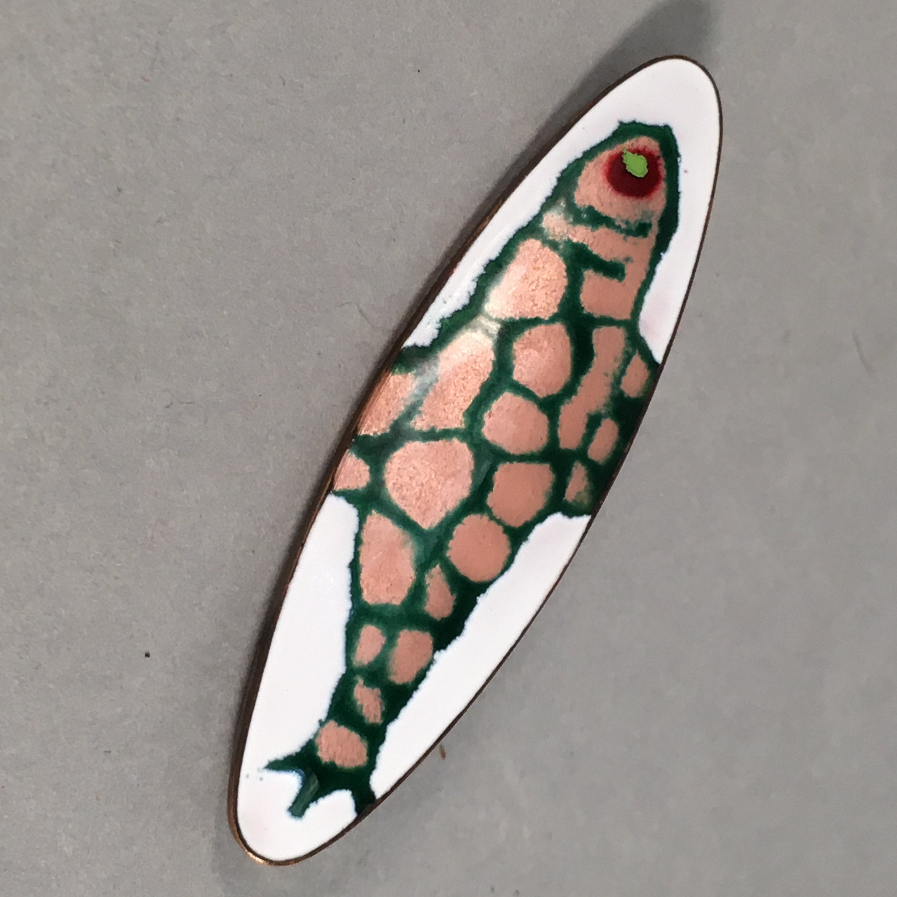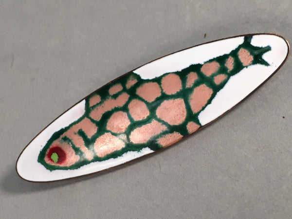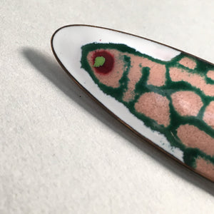 Japanese Cloisonne Oval Brooch Vtg Metal Glass Pin Fish White Pink Gold JK44