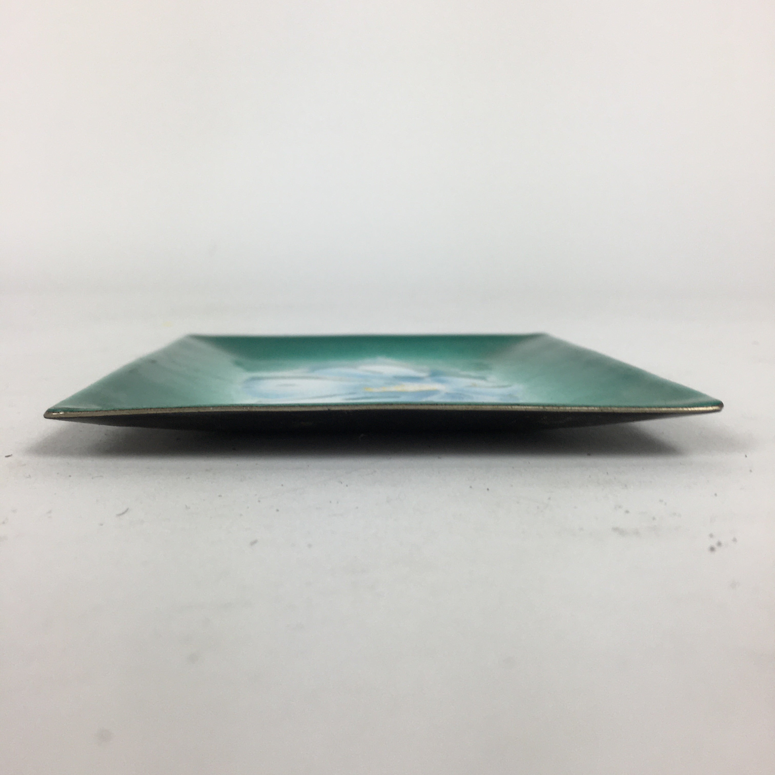 Japanese Cloisonné Ware Plate Vtg Kozara Ceramic Green Enamel Finish Metal T85