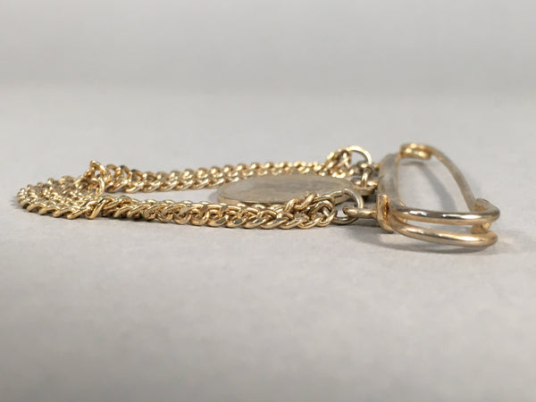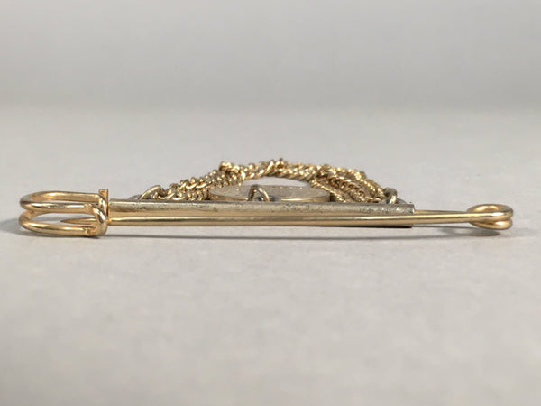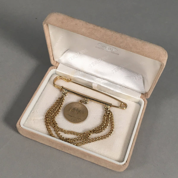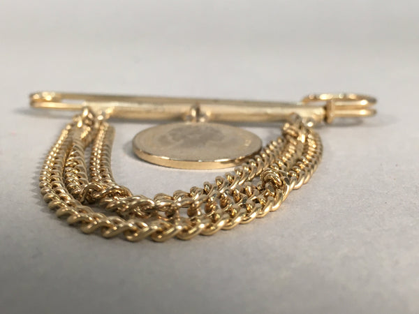 Japanese Coin Chain Brooch Gold Metal Vtg Pin Folkland Islands Elizabeth JK45