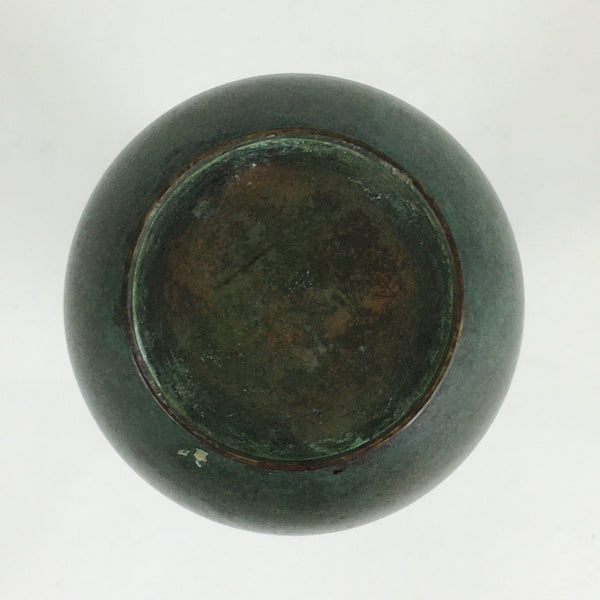 Japanese Copper Flower Vase Vtg Cast Metal Kabin Ikebana Green FV981