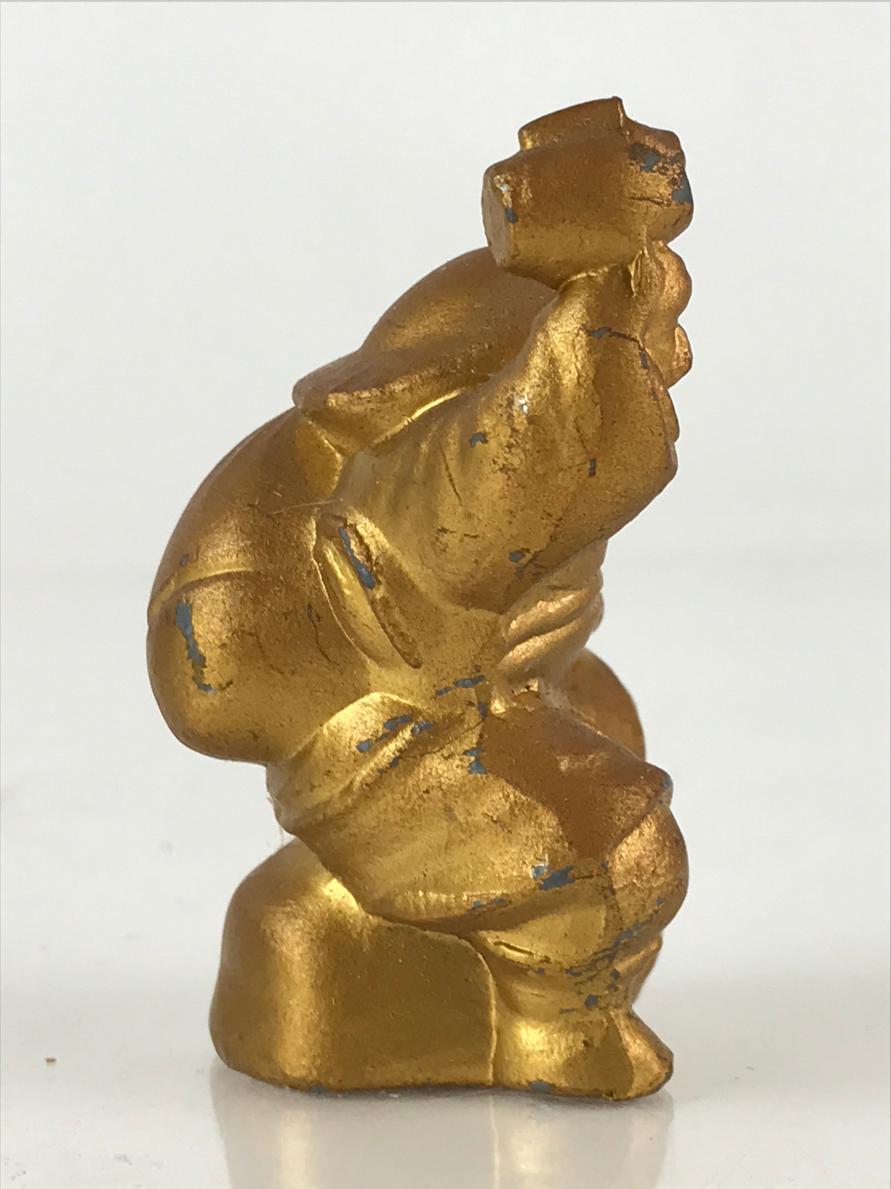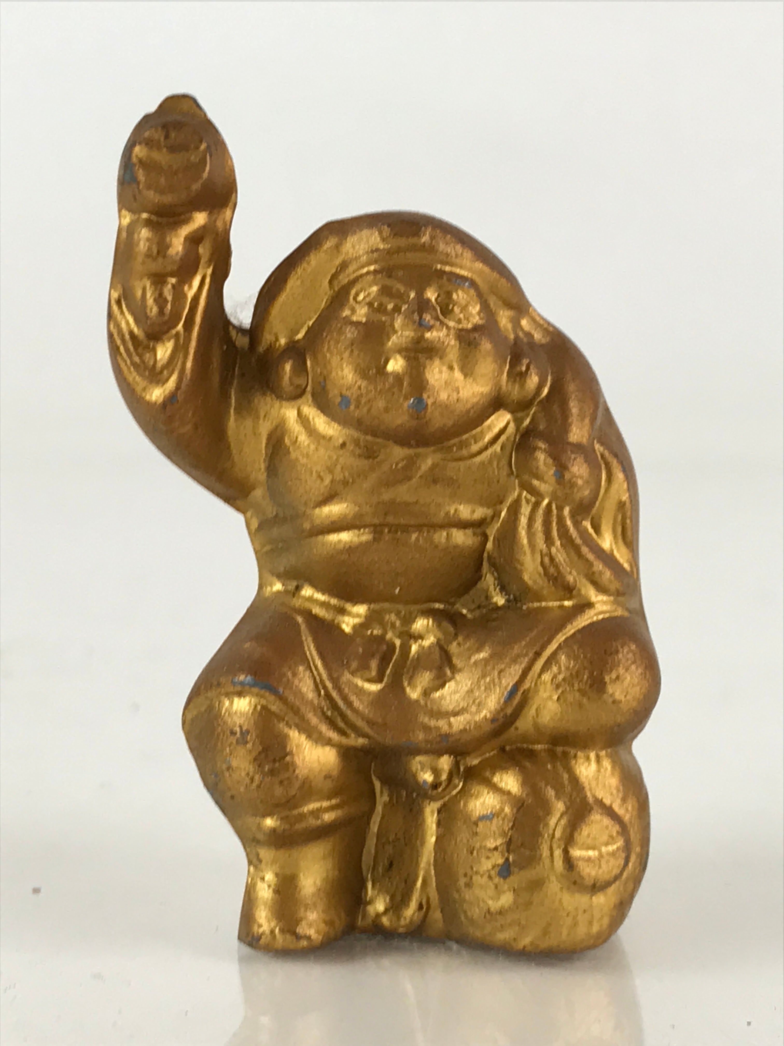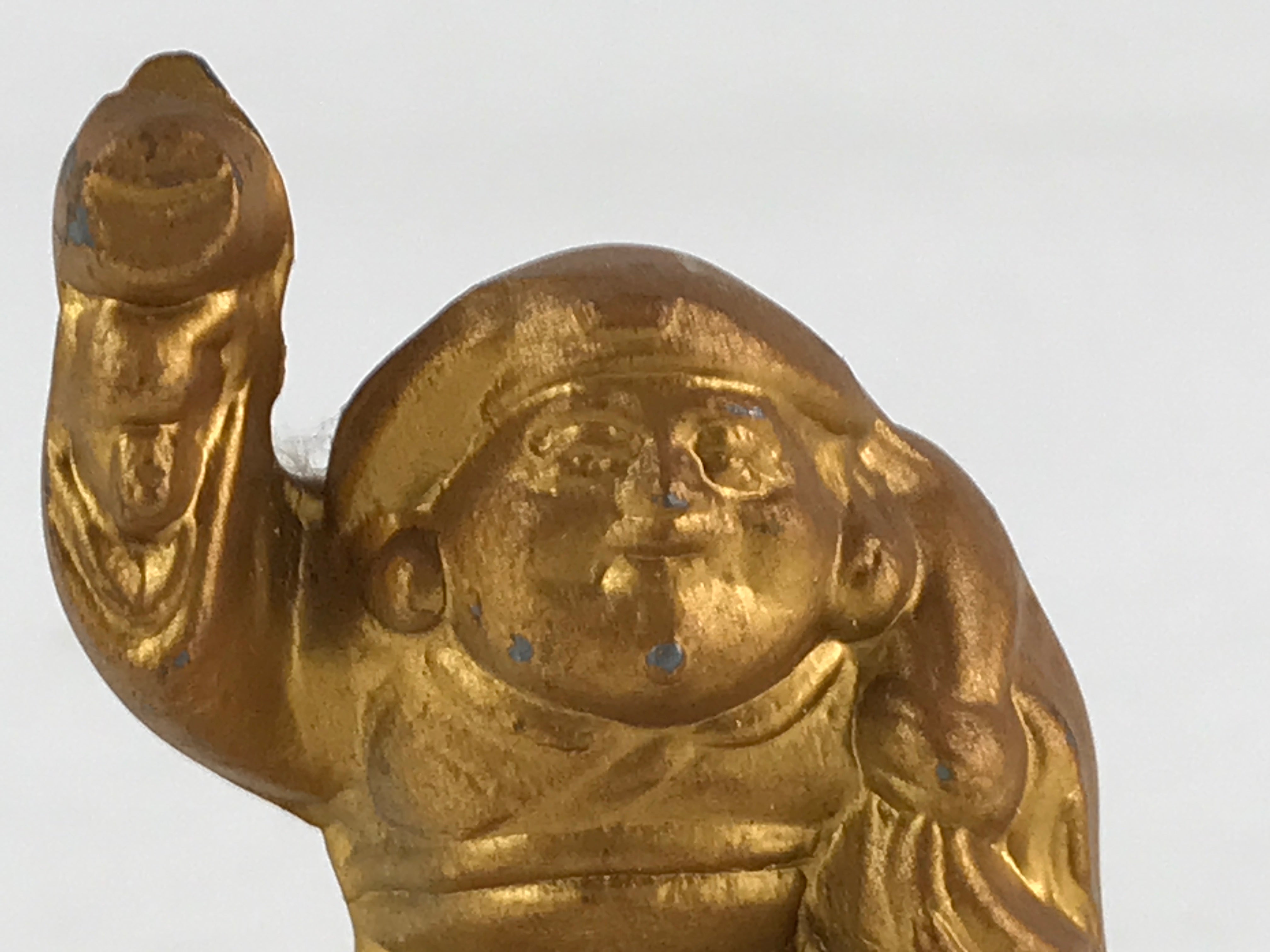 Japanese Daikokuten Figurine 7 Lucky Gods Wealth Vtg Gold Metal Statue JK424