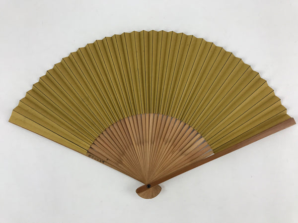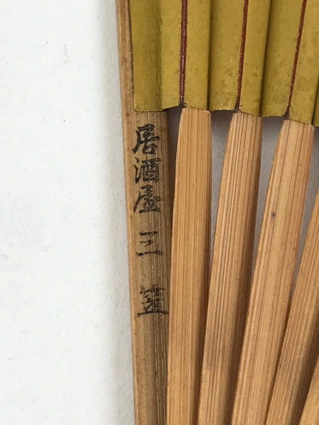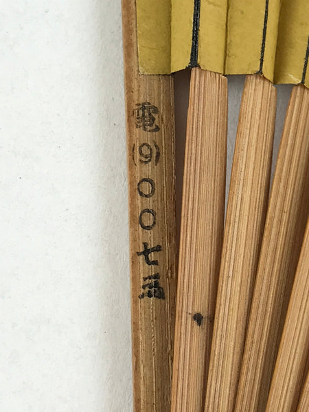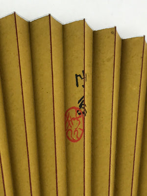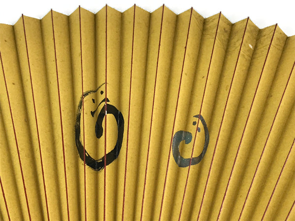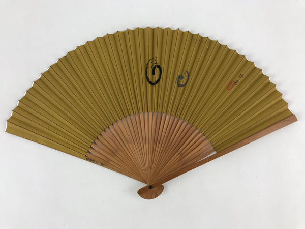 Japanese Folding Fan Sensu Vtg Bamboo Frame Swirls Light Brown Kanji Red Seal 4D