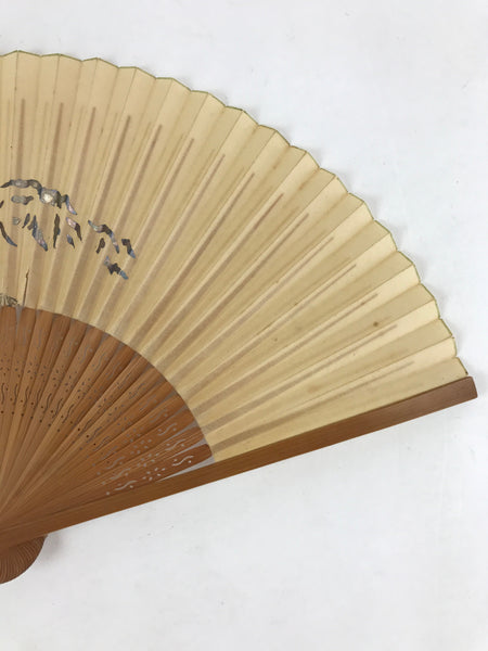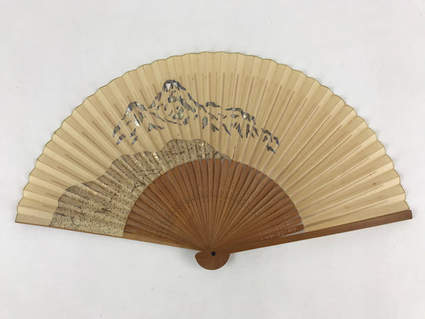 This is a traditional Japanese fan called Sensu. You can use this when it's hot or as decoration. It is sometimes used in traditional Japanese dance. It's decorated with mountains. The fan slightly sparkles.
