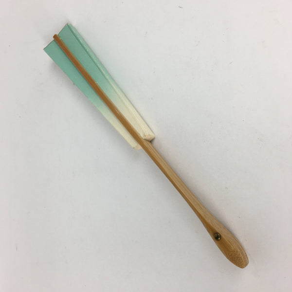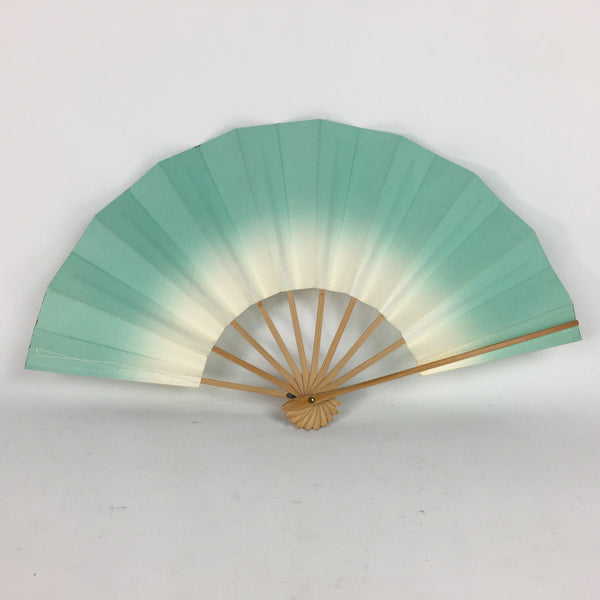 Japanese Folding Fan Vtg Sensu Paper Bamboo Frame Light Green Gradation 4D495