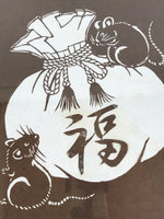 Vintage Japanese Katagami of Lucky Zodiac Rats w/ Plastic Frame