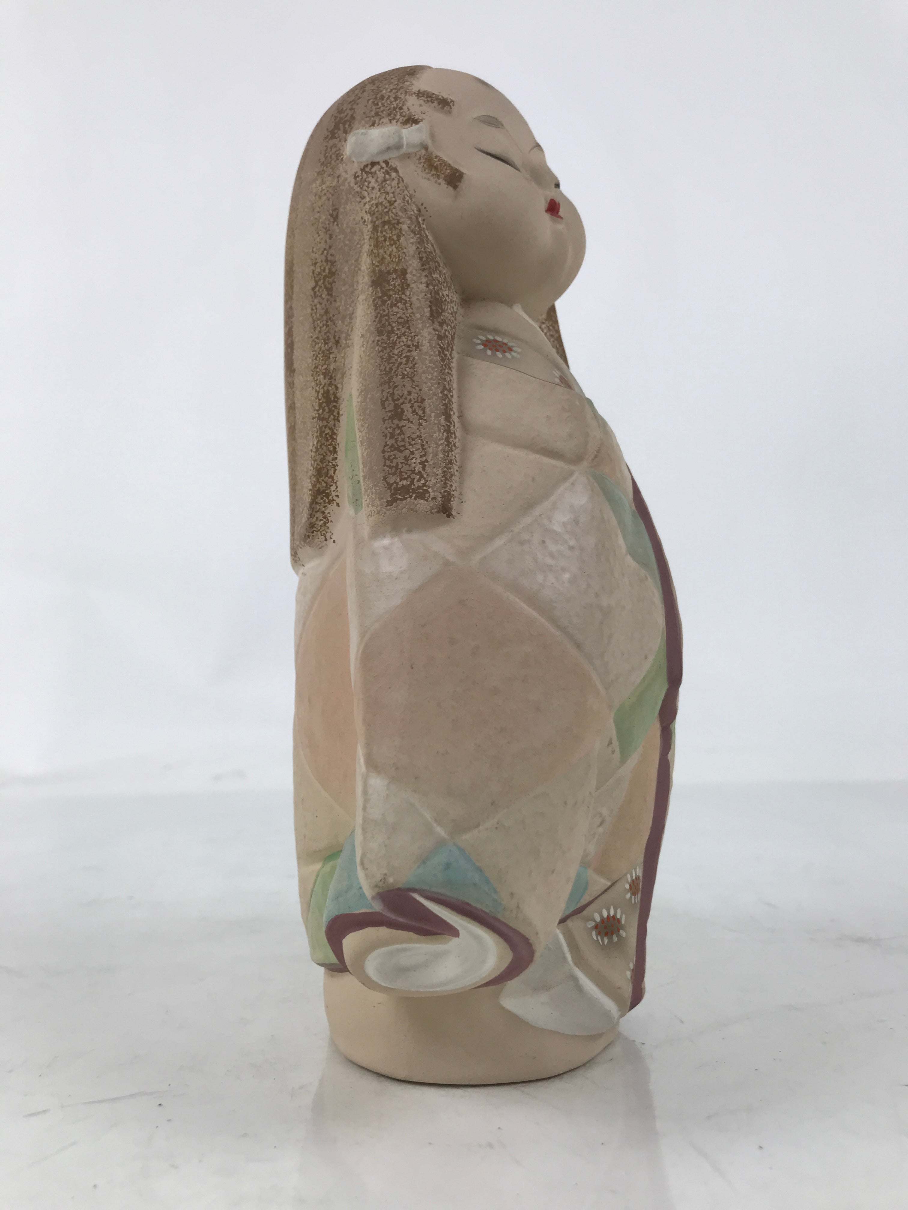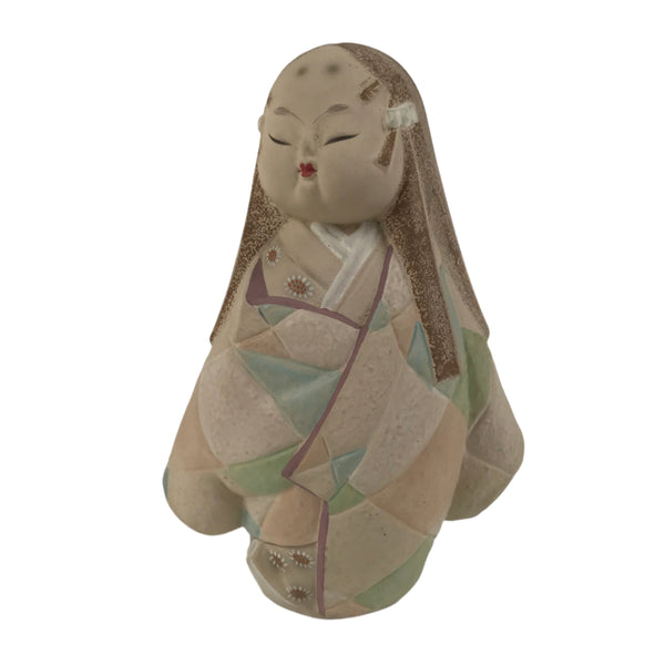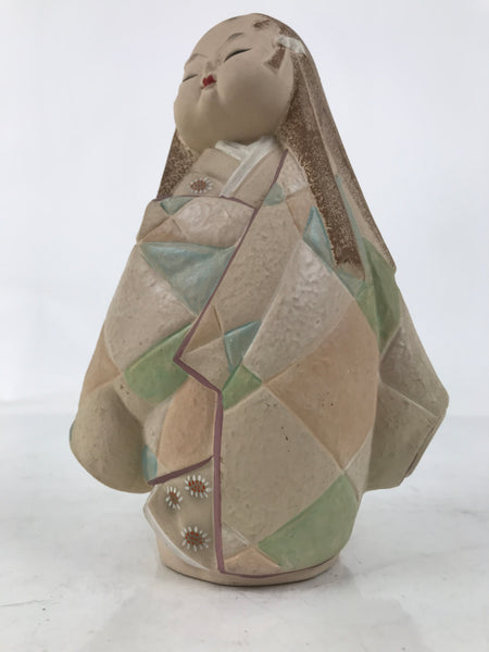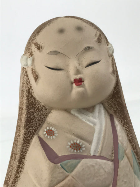 Japanese Kimono Girl Clay Doll Vtg Ningyo Figurine Long Hair Beige ST42