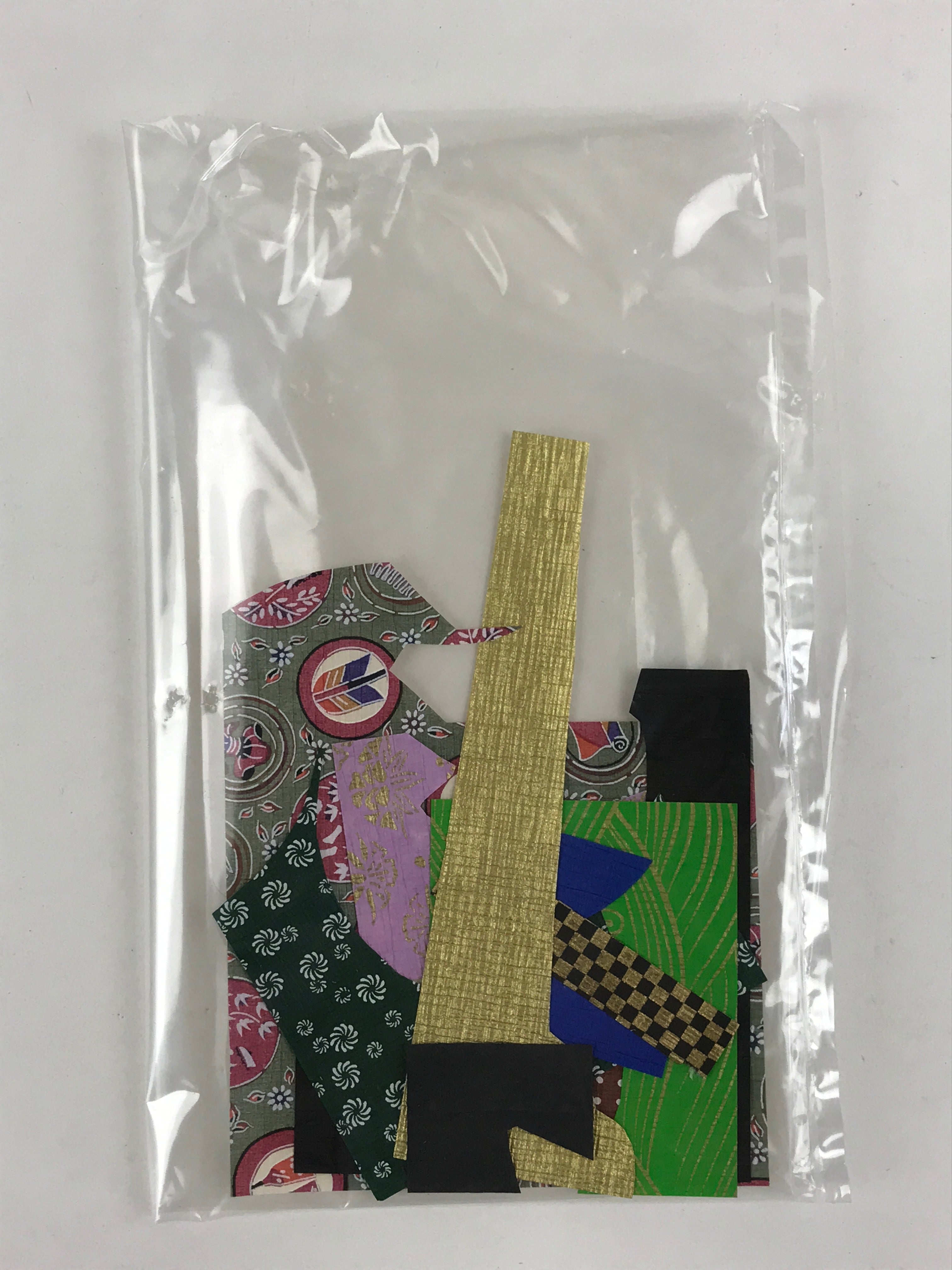 This art piece includes scrap materials used in the crafting of the hagoita itself and the original box.