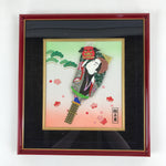 Vintage Japanese Shikishi Art of Hagoita w/ Lacquered Wooden Frame