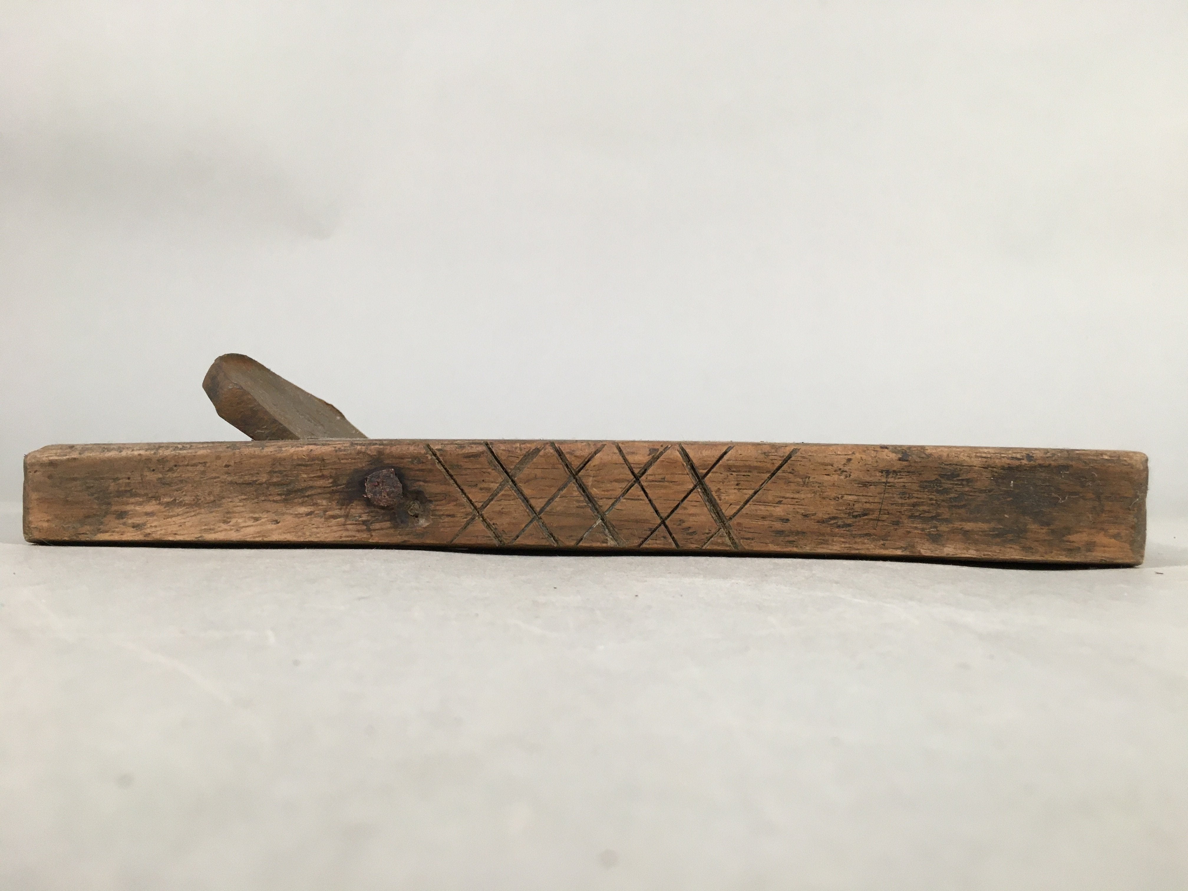 • Good condition considering its age. The blade is rusted. Crack on the wooden body. Wear and tear due to age. Please see the photos.