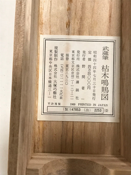 - Some characters on box/label: 宮本二天 Miyamoto Niten (Miyamoto Musashi), 枯木鳴鵙 A Shrike on a Barren Branch, 昭和四十四年七月三十日発行 published July 30th Showa 44 (1969)