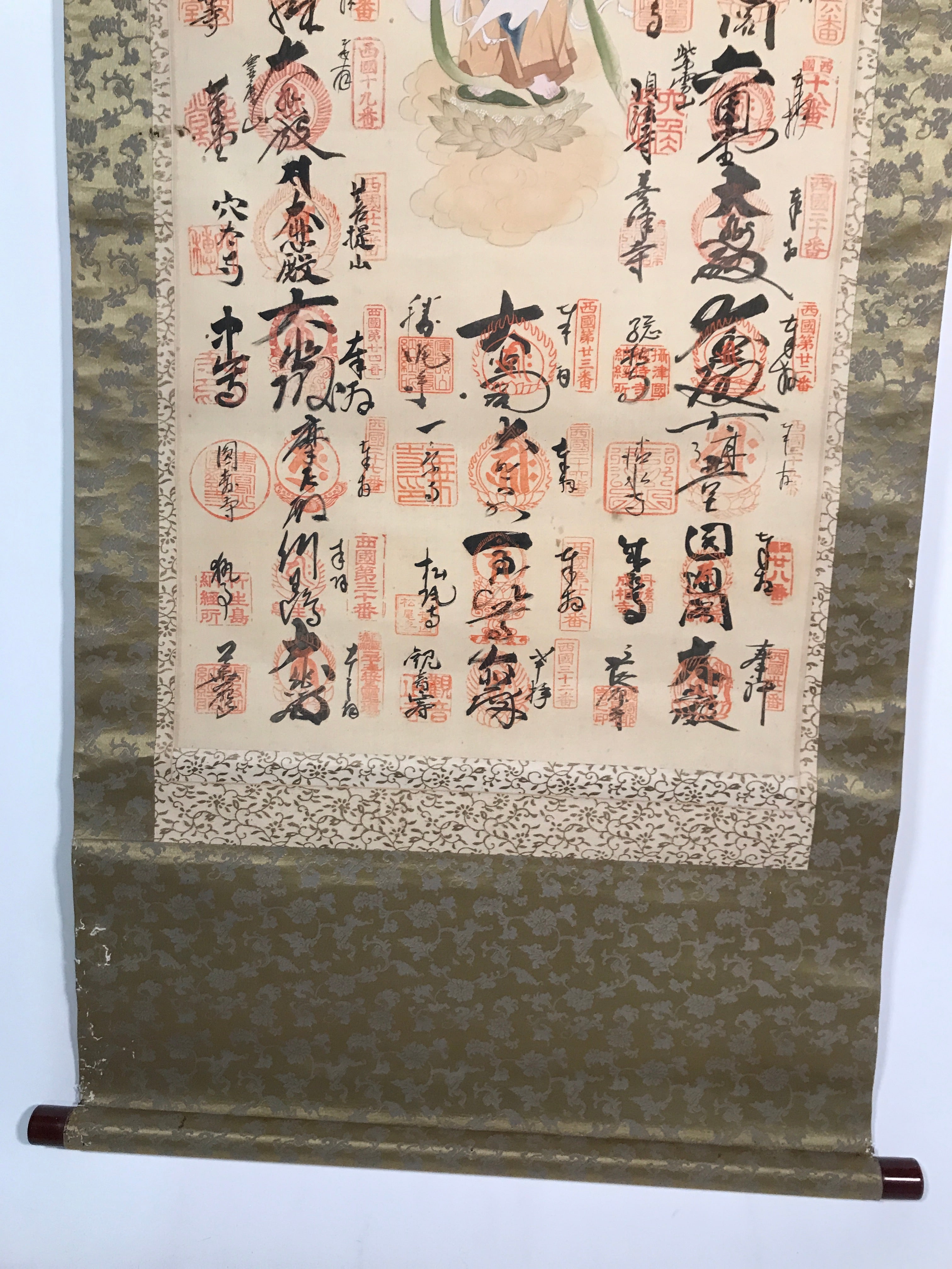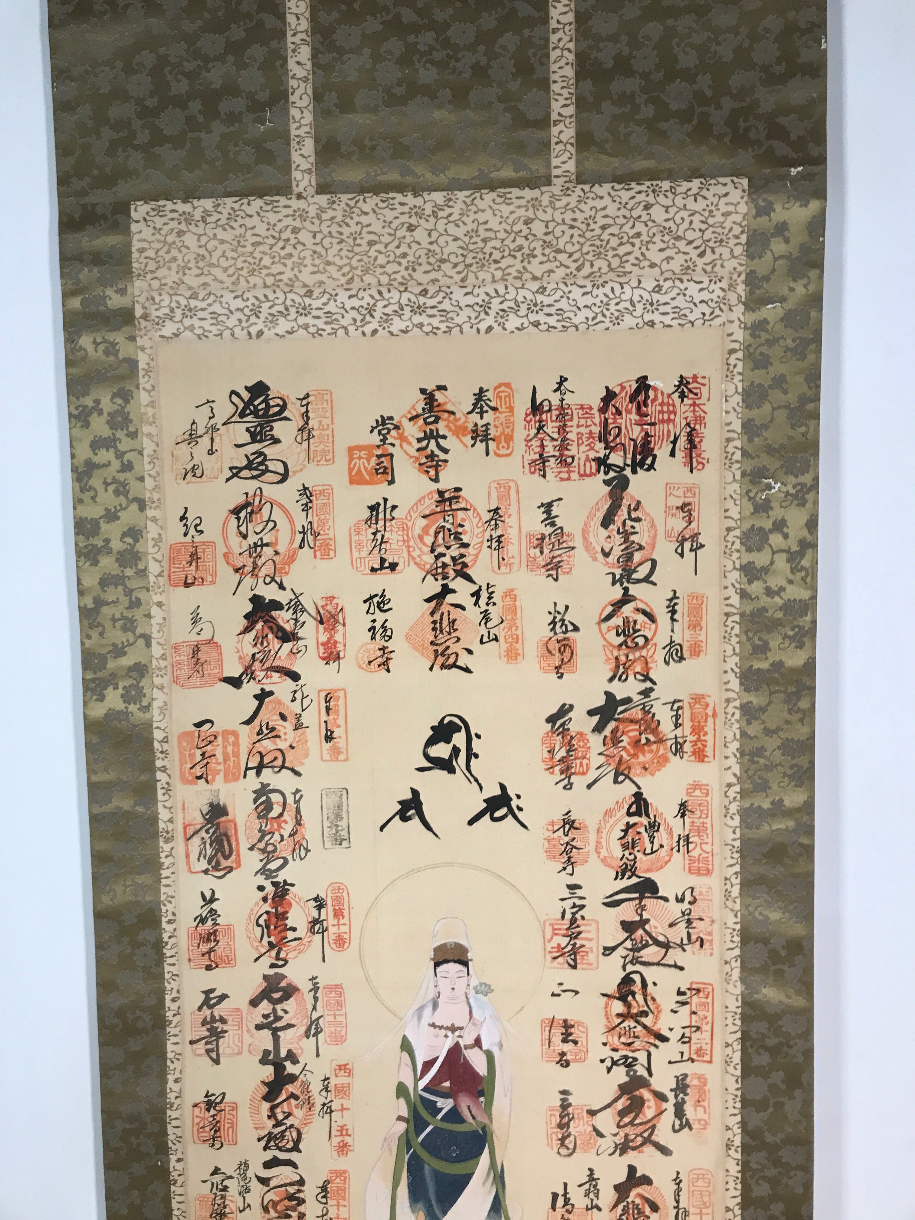 Japanese Hanging Scroll Kakejiku Saigoku 33 Sacred Places Goshuin Buddhist KJ56