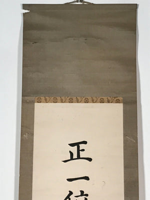 This vintage Japanese hanging scroll (kakejiku or makimono) features a vertical calligraphy: Shoichi (First Rank) Sanage Shrine. It is signed and has a red seal.