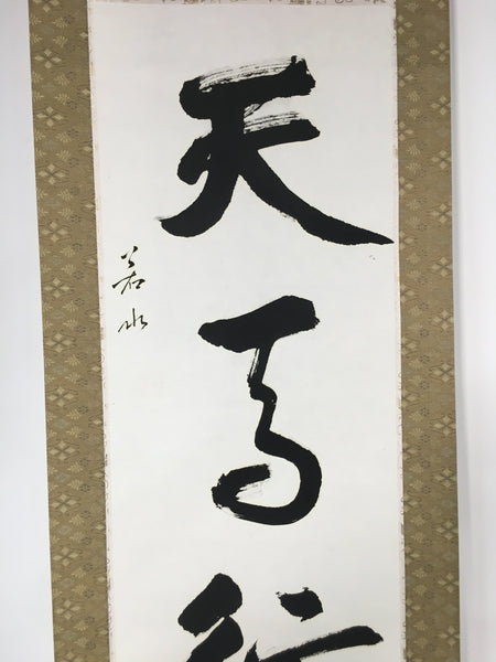 Japanese Hanging Scroll Vtg Kakejiku Kakemono Painting 4Kanji one-Line SC608