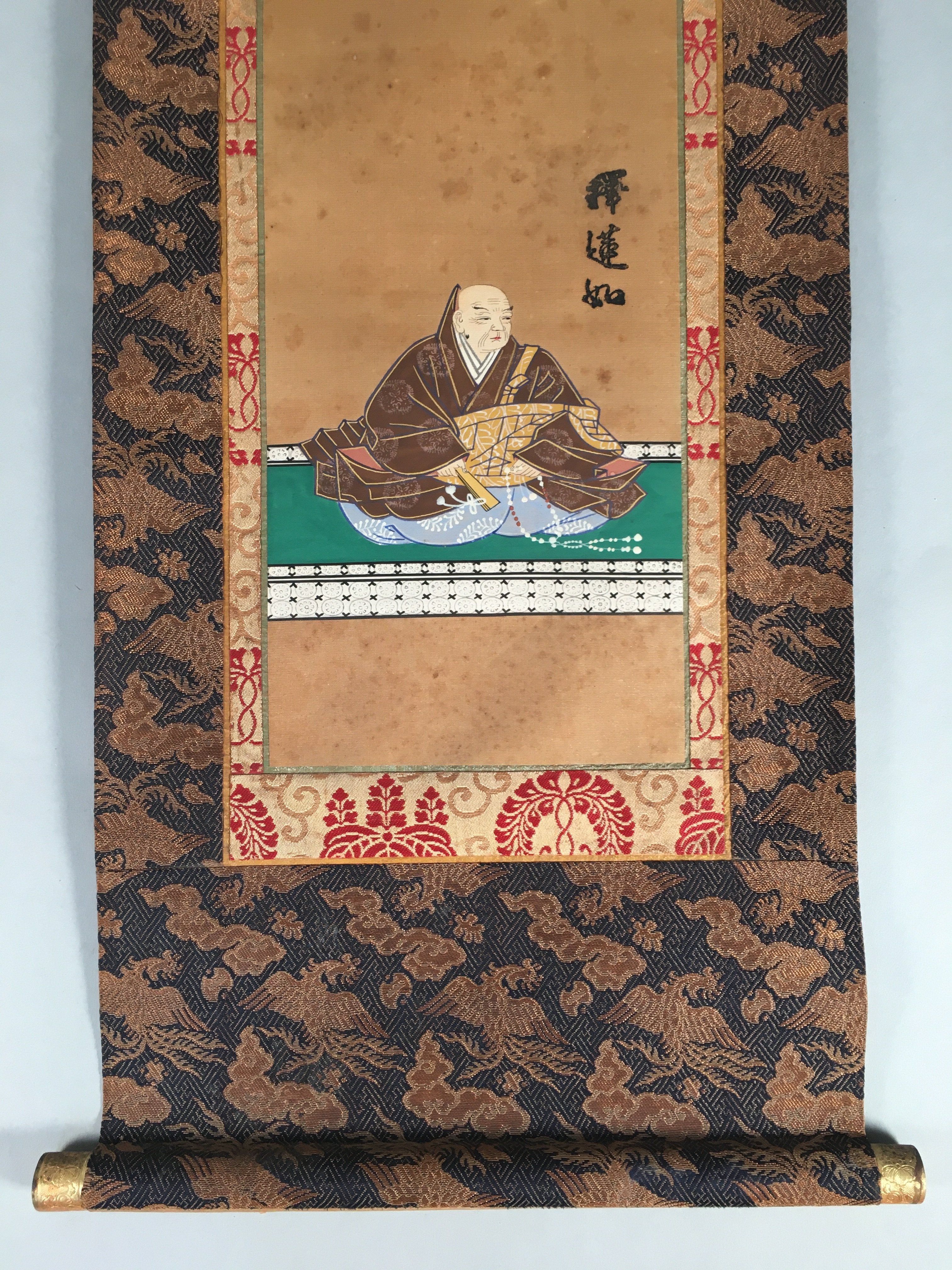 Japanese Hanging Scroll Vtg Kakejiku Kakemono Painting Buddhist Monk SC586
