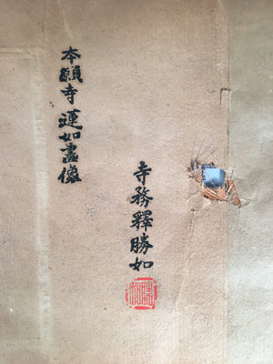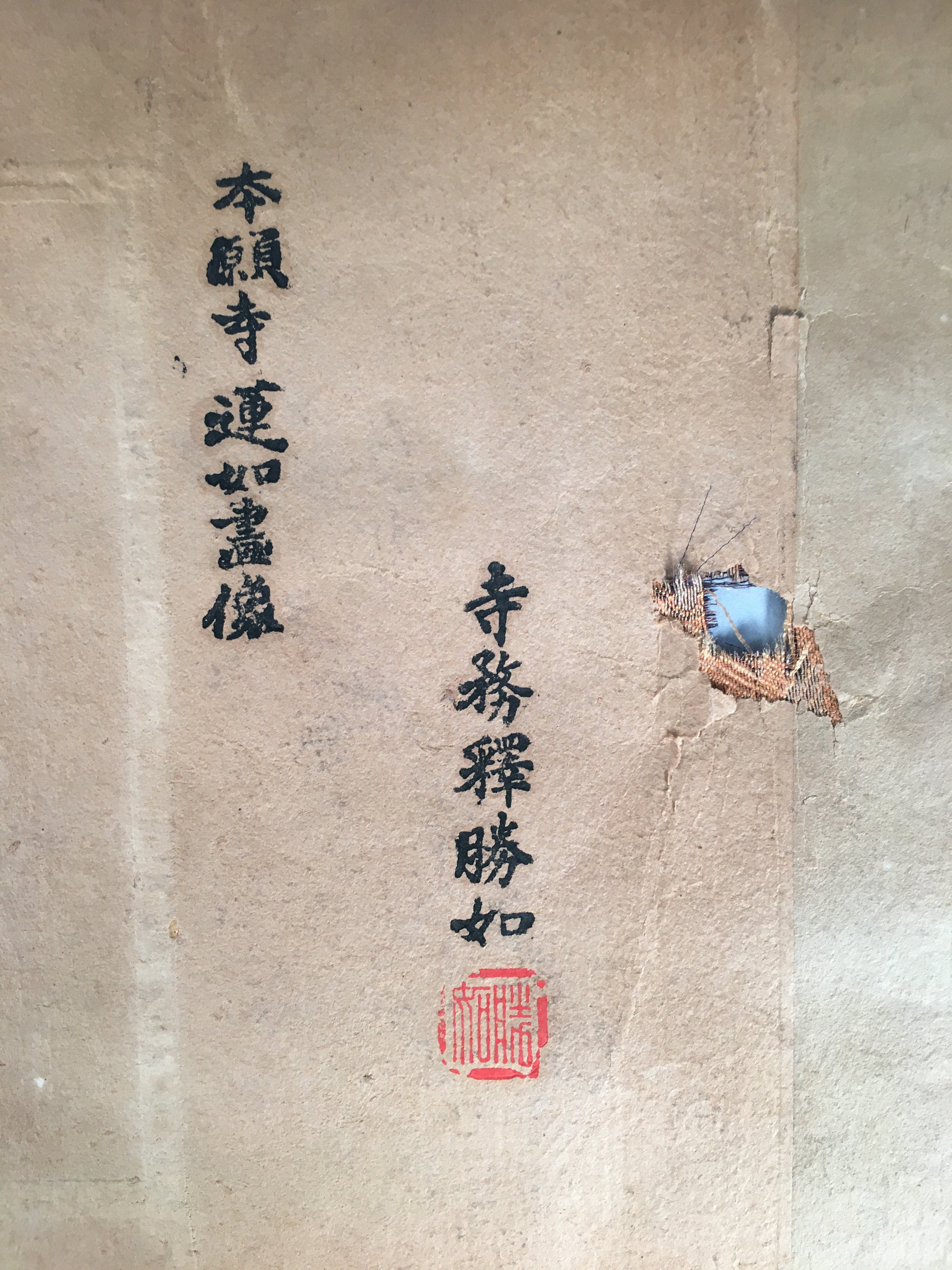 • Kanji on the backside: temple name, painting of Rennyo, official of the temple, monk name