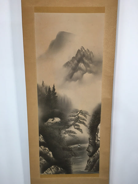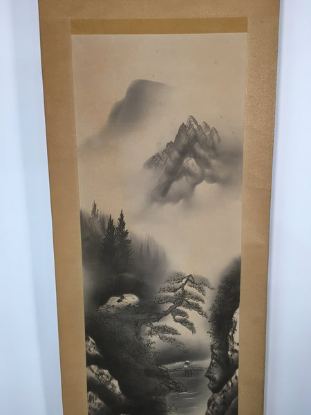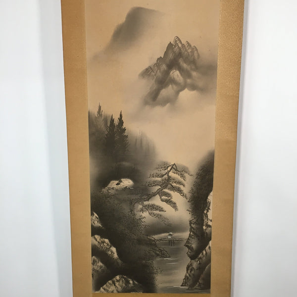 Japanese Hanging Scroll Vtg Kakejiku Kakemono Painting Mountains Scenery SC594