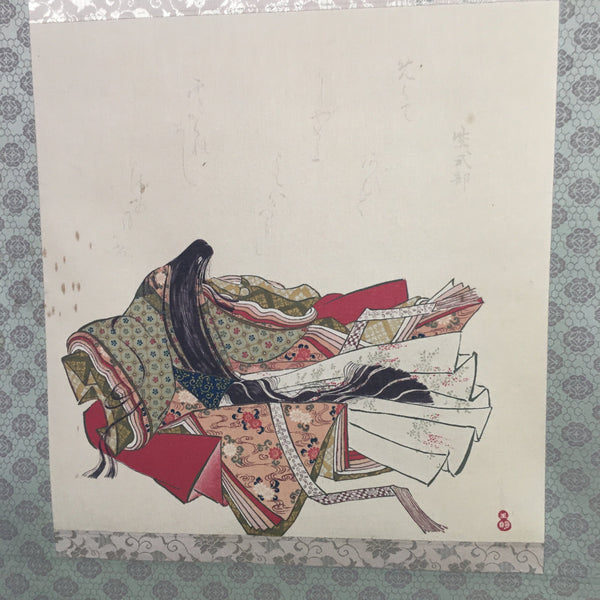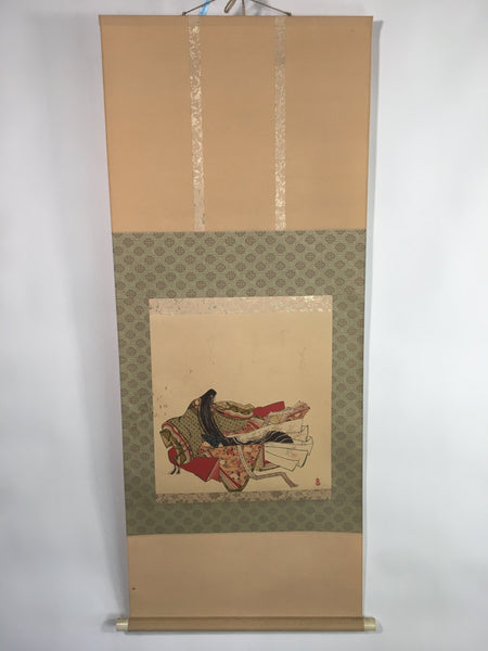 Japanese Hanging Scroll Vtg Kakejiku Kakemono Painting Murasaki Shikibu SC648