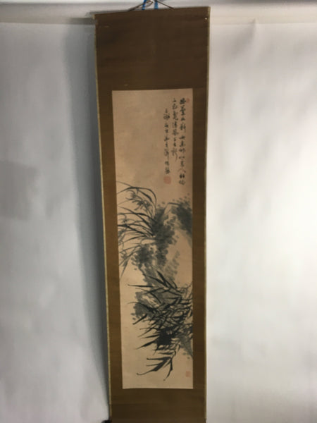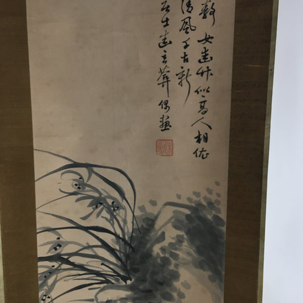 Japanese Hanging Scroll Vtg Kakejiku Kakemono Cluster Amaryllis Bamboo SC656