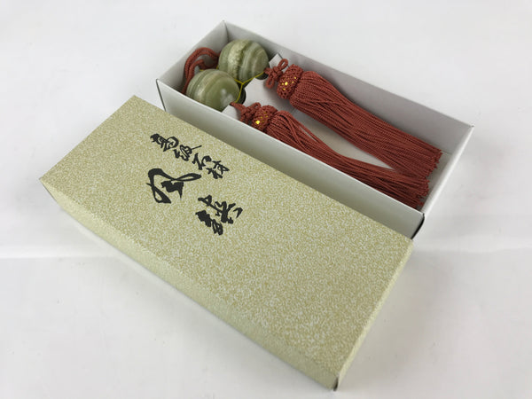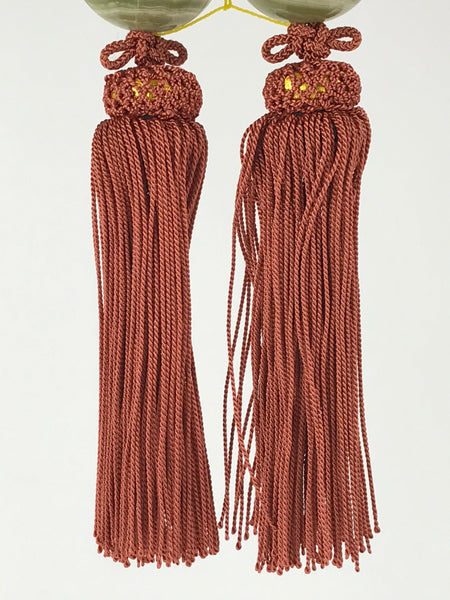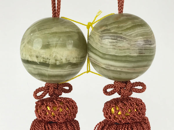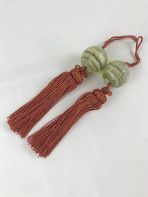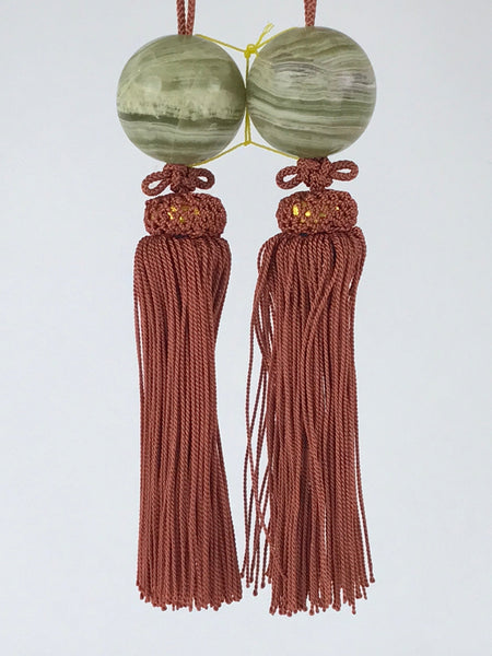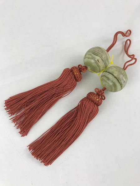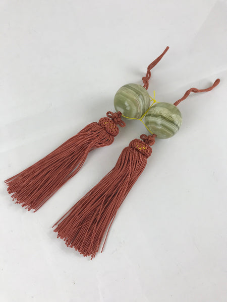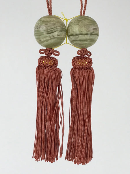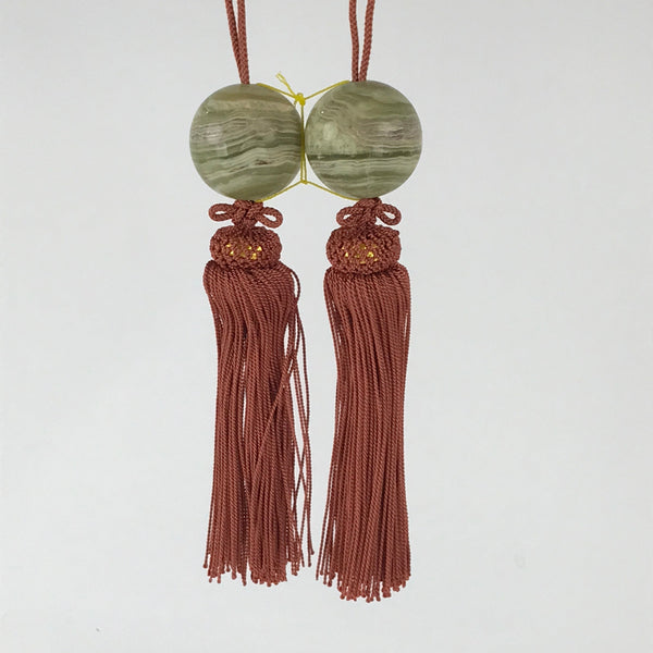Japanese Hanging Scroll Weights Vtg Fuchin Marble Stone Brown Tassel FC311
