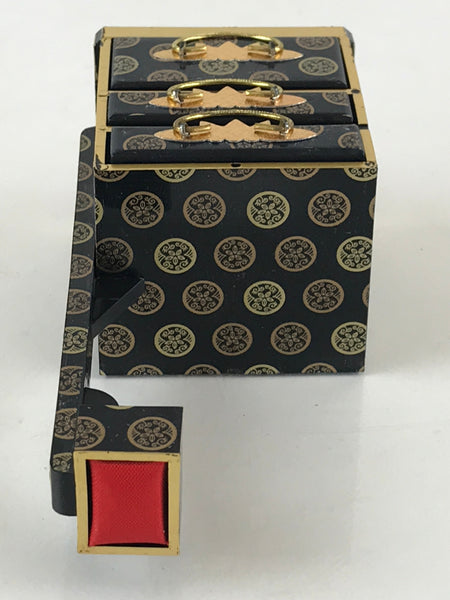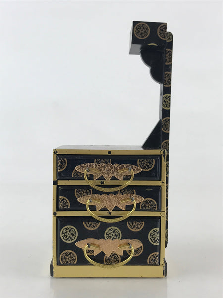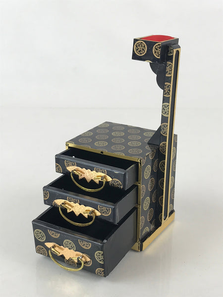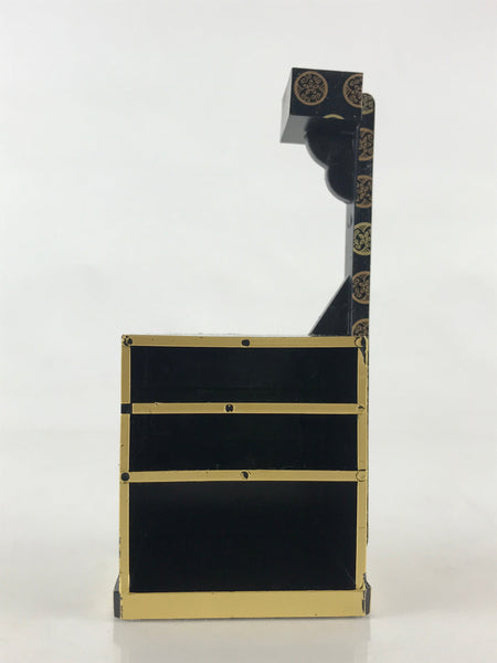 This is a vintage Japanese traditional festival Hinamatsuri's Hina doll decoration. It is a sewing box (Haribako). Hinamatsuri (Doll's or Girls' Day) is a religious (Shinto) holiday in Japan, celebrated on 3 March yearly. Platforms covered with a red carpet–the material is used to display a set of ornamental dolls (Hina-ningyō) representing the Emperor, Empress, attendants, and musicians in traditional court dress of the Heian period.