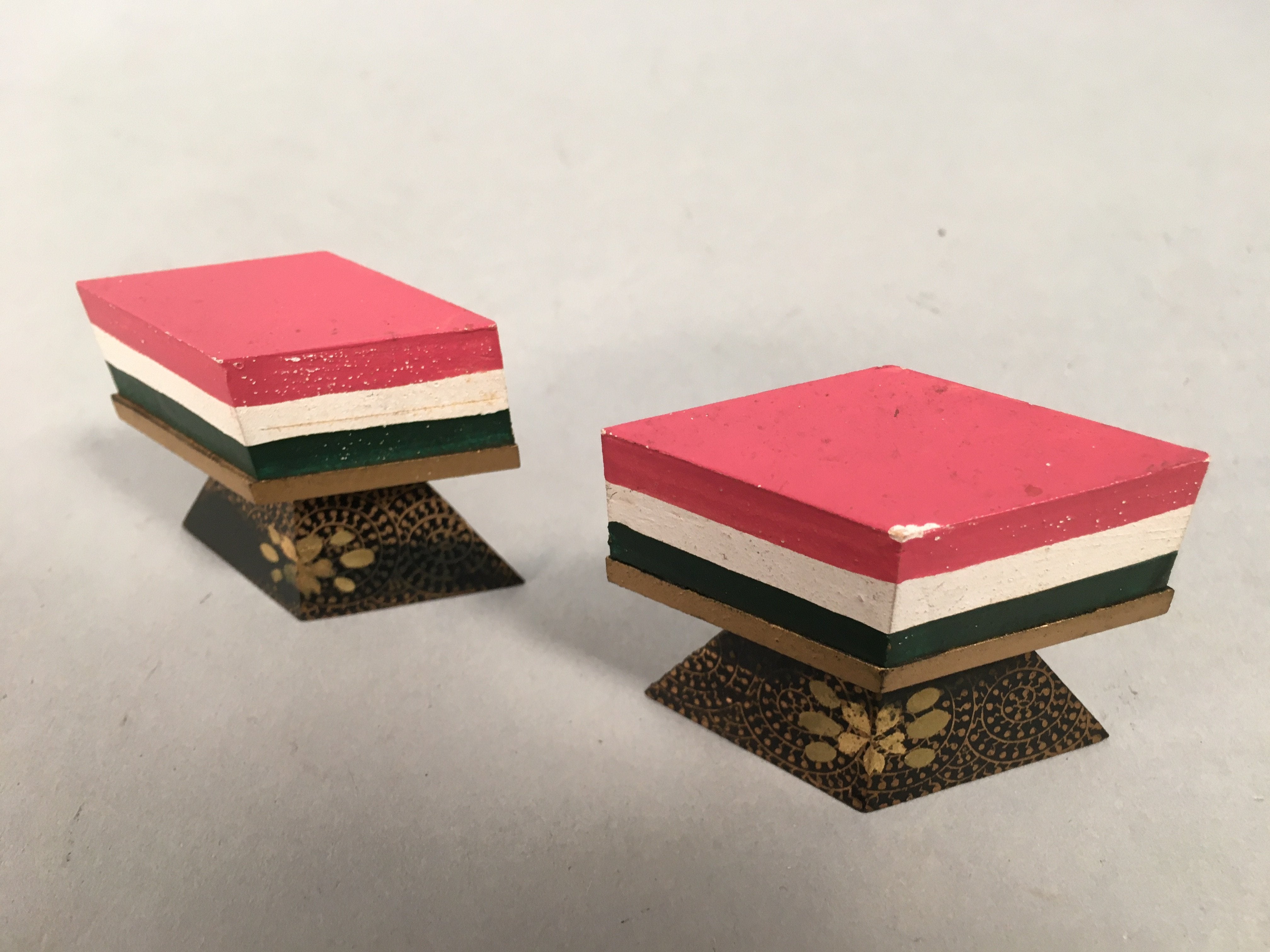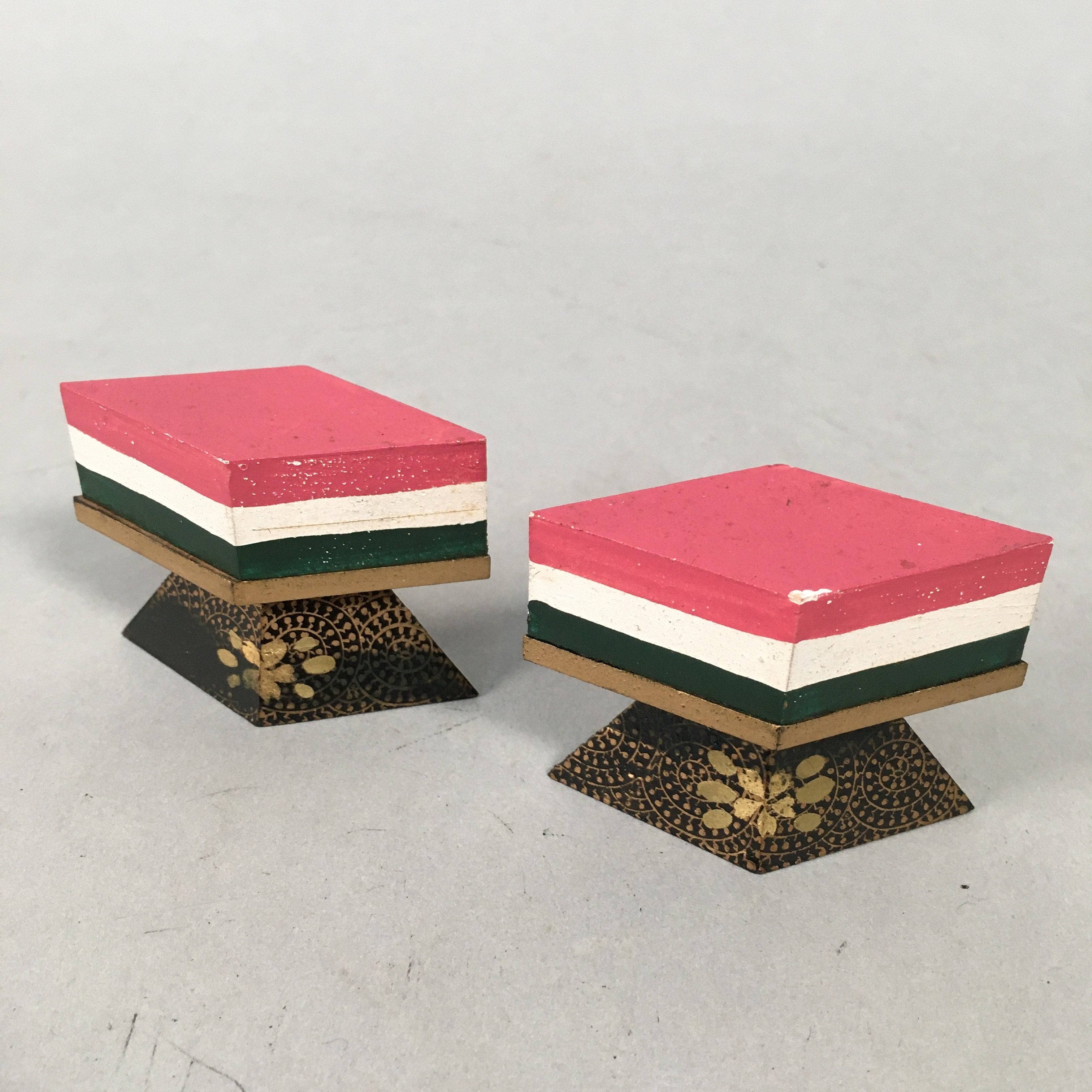 Japanese Hina Doll Rhombus Rice Cake Offering Stand Pair Vtg Furniture Wood ID34