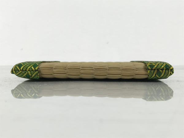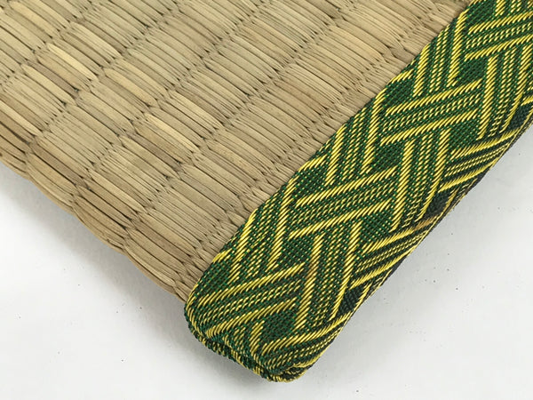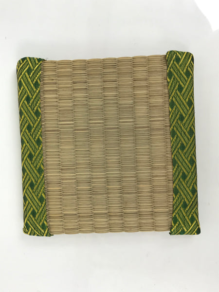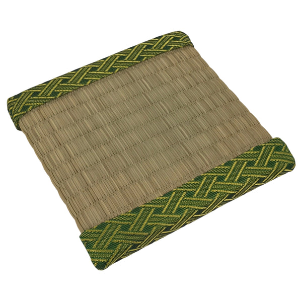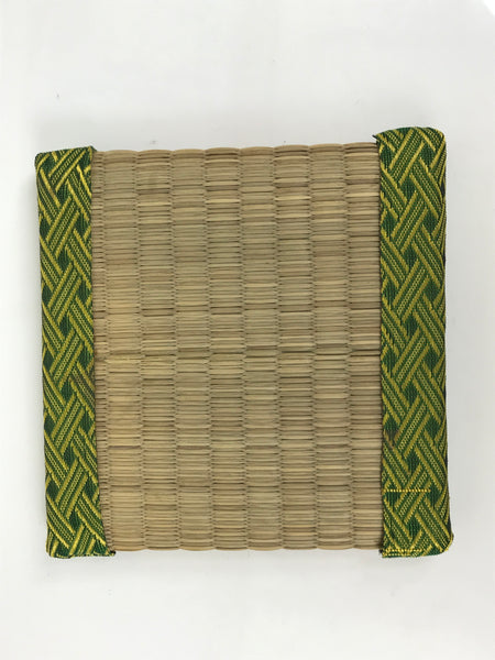 This Japanese vintage miniature tatami mat is a small display stand for Hina dolls and other similar-sized figurines. It is square, appearing the same on both sides. It features natural tatami color and silk fabric edge pieces to protect exposed sides and keep them from fraying or snagging. It is the perfect size for small Hina dolls, zodiac figurines, and even for vases.
